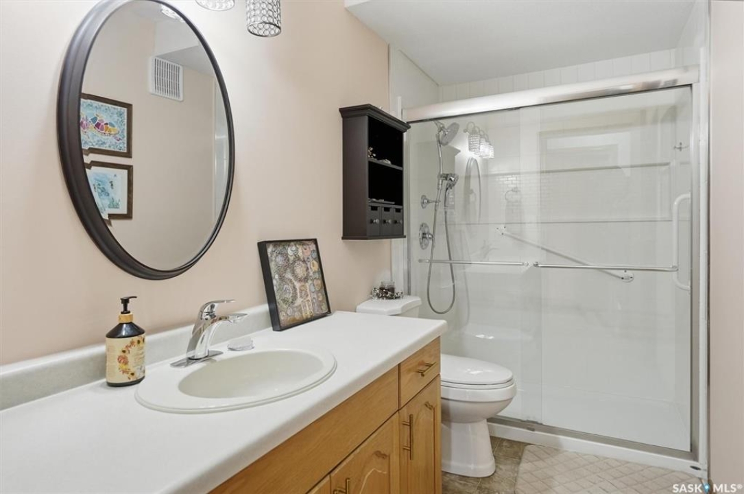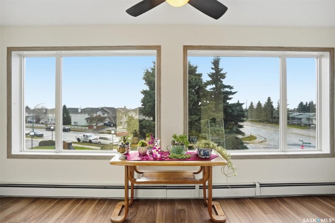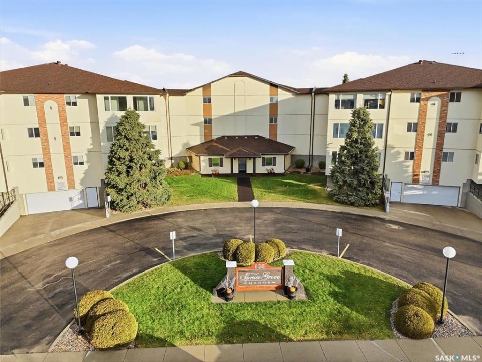 SOUTH-WEST CORNER, SECOND FLOOR, 2 bedroom Condo in great condition. You will appreciate the spacious dining and living rooms, the well appointed Kitchen with stainless steel fridge and range, the generous master bedroom with it's convenient 2 piece ensuite bath and the south facing sun room that adds so much natural light to the unit. The owner had Protint add 50% UVfilter film to the south facing window and 80% UVfilter film to the East and West side of the Sun room window to cut down on the summer heat. The condo comes with up-graded laminate flooring, neutral paint throughout while the second bedroom features a Murphy bed and built-in desk and storage. 4 quality appliances are included (the up-right freezer is not) and the laundry room comes with a wall-to-wall storage closet. The unit has an excellent parking spot with ample space to turn in and out as well as an additional storage space #201 located on the parking level across from the amenities room. Spruce Grove Manor features a large amenities room with kitchen plus a workshop for the hobbiest. Many of the large ticket maintenance items have been completed, including replacing the elevator so the reserve fund is in the process of being restored. Contact your favourite real estate professional for a private tour.