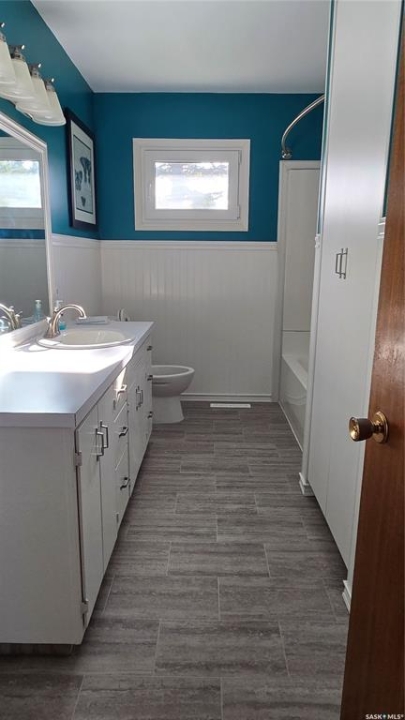 Location! Location! Location! Take a drive by this property to see the large yard that opens up to a field and is close to all the recreational activities. This mature oversized lot is walking distance from the rink, swimming pool, parks, and the k-12 school. This 1664 square foot home features three large bedrooms on the main floor and another bedroom that is presently being used for a laundry room but could be easily converted back into a bedroom. Some great updates include the main floor windows 2018 which are all the European tilt/turn windows. 2018 carpet in the living room and hallways. The living room features a large picture window for lots of natural lighting and a 2018 front door. The kitchen and dining room flow beautifully with the open concept that extends out the patio door to the side deck for even more entertaining. The kitchen features stainless steel appliances that include a built in double oven. The basement has three more bedrooms walled in and a family room. One bedroom has walls for a walk-in closet and is plumbed for a large ensuite. The main bathroom in the basement has been finished and highlights in floor heating. The family room in the basement could be converted into a large fourth bedroom. Basement needs some work but the basics are all there. Call for your private viewing.