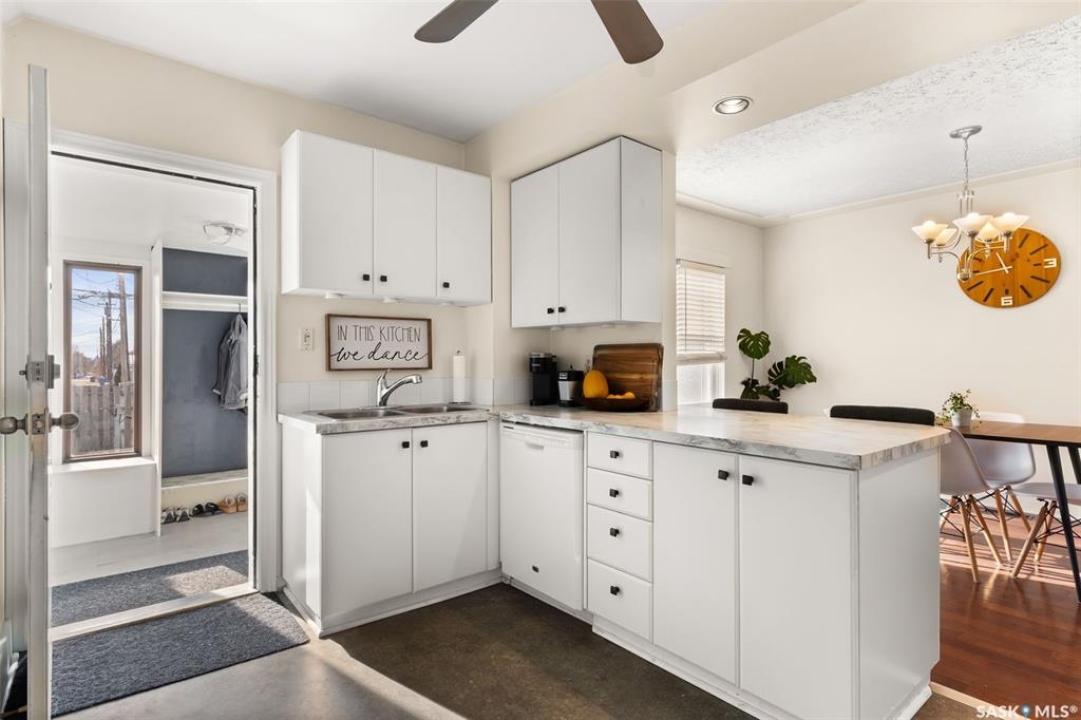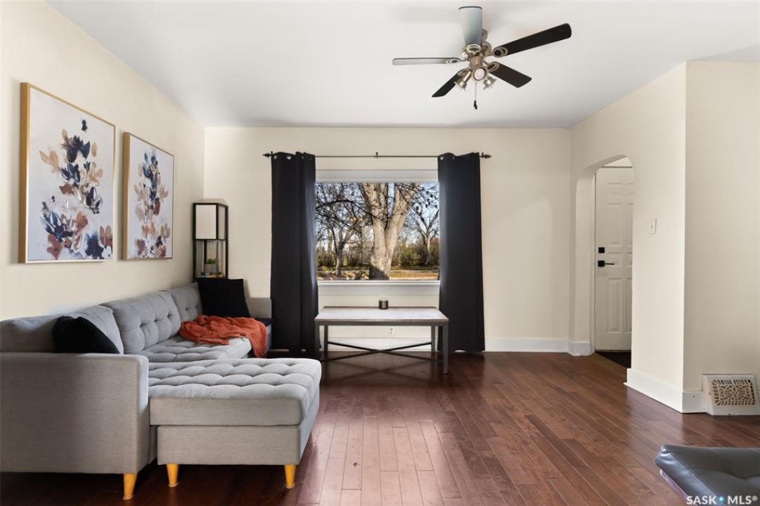 Located on a beautiful tree-lined street in the heart of Cathedral, this charming and well-maintained home is ideally located just steps from 13th Avenue's vibrant shops, cafés, and amenities — plus an easy walk to Mosaic Stadium, the Brandt Centre, and the Field House. Step inside to a warm and inviting living room featuring a cozy gas fireplace, perfect for chilly winter evenings. The dining room offers plenty of space for entertaining and opens seamlessly to the kitchen. The practical addition of a mudroom at the back provides extra storage and everyday convenience. Upstairs, you'll find two spacious bedrooms and a bright & sunny updated 4-piece bath with a tiled tub surround. The developed basement adds extra living space with a comfortable family room and ample storage in the laundry/mechanical area. Outside, the fully fenced, south-facing backyard is perfect for enjoying sunny days on the deck. There's parking for up to three vehicles with space to add a future garage if desired. This Cathedral gem blends character, comfort, and modern updates — all in one of Regina's most beloved neighbourhoods. Contact your sales agent to schedule your viewing!