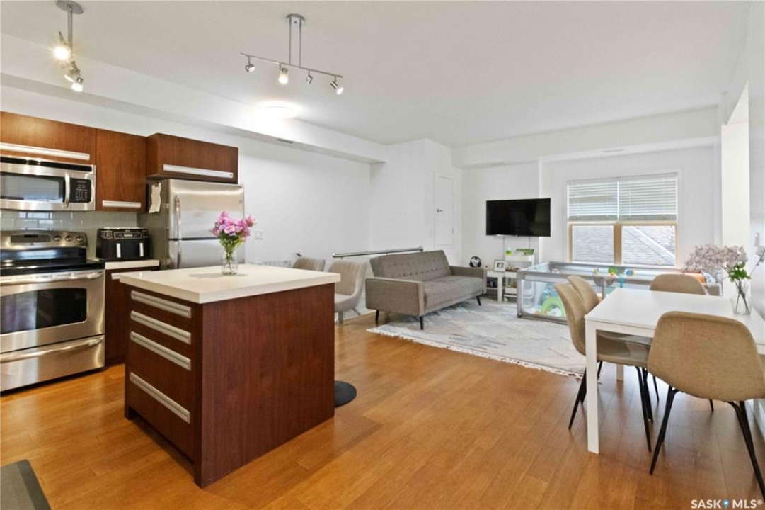 Welcome to 202-1015 Patrick Cres. This top floor condo in the popular Ginger Lofts complex has one of the best locations - right next to the clubhouse with a sunny, West facing view. The 954 sq ft, 2 bed, 1 bath condo was recently painted and is in great condition. The open floor plan features a large living room with door to your West facing balcony, a functional kitchen with island and lots of cabinet space, 2 bedrooms and a 4 piece bath with soaker tub and storage in the mechanical room. The clubhouse is one of the best in town - with an indoor pool, hot tub, amenities room and gym worth cancelling your membership for, this place has it all. 2 electrified parking stalls are included with visitor parking close by. Don't miss your chance to own a condo in this popular Willowgrove complex.