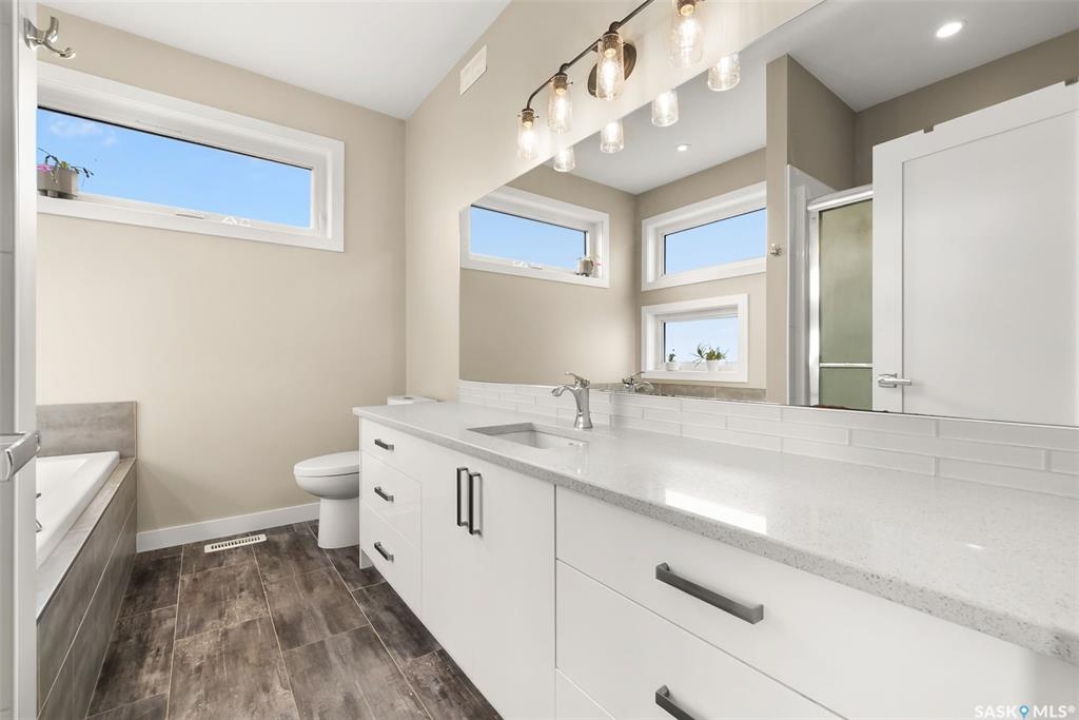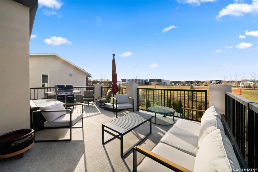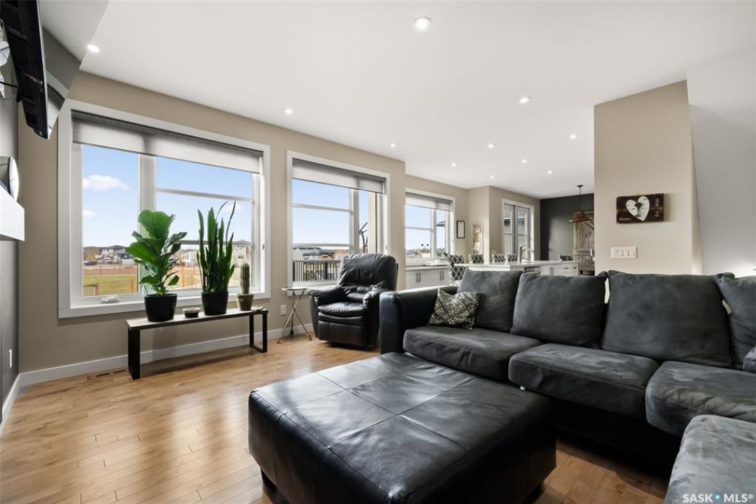 Welcome to 18 Princeton Drive, a stunning 1,840 sq. ft. Ironstone Homes built two storey walkout, proudly owned by the original owners. Ideally located in a prime area of White City, this home sits on an impressive 9,000+ sq. ft. lot backing green space and the desirable Emerald Ridge Elementary School. The southwest facing yard offers beautiful views and all day sunshine, with an upper deck and lower covered patio perfect for year round enjoyment. The main floor features 9 ft. ceilings, a bright open concept layout with a spacious living room, stylish kitchen with oversized island and pantry, and a dining area showcasing large windows overlooking the backyard. A versatile bedroom (or office), 2 pc bath, and mudroom with direct access to the 24x26 steel-beam double attached garage complete this level. Upstairs you'll find a luxurious primary suite with a walk in closet and 4 pc ensuite, two additional good sized bedrooms, a main 4 pc bath, and a convenient upper level laundry room. The walkout lower level is fully developed with a large family room featuring incredible views of the yard and green space, an additional bedroom, bathroom, and ample storage. The professionally landscaped backyard is a true retreat with trees, shrubs, and three separate patio areas for relaxing, entertaining, or stargazing around a fire. With quality finishes, modern design, and a sought after location, this beautiful family home truly has it all.