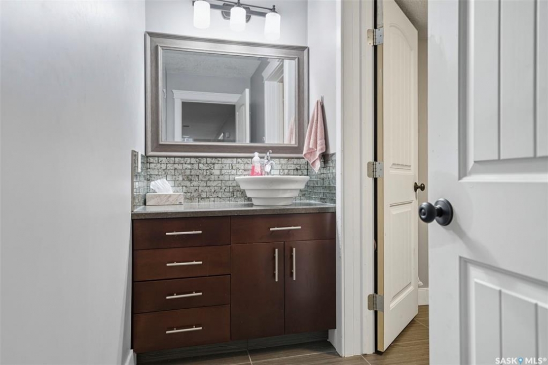 Prepare to be impressed by this stunning modified bilevel in the busy town of Watrous! Step into the roomy entrance with porcelain tile floors and a huge closet. Main level has an inviting open concept living room, dining area and kitchen - perfect for family living and entertaining! The huge kitchen is a chef's dream, offering an incredible amount of maple cabinetry with ample counter space, corner pantry and updated stainless appliances. Beautiful hardwood floors extend throught the main living areas ind into the bedrooms, enhancing the warm and welcoming atmosphere. The deck overlooking the backyard is easily accessed from the kitchen, offering ideal space for outdoor enjoyment. The spacious primary suite is a true retreat, complete with double sinks and a separate tub and shower in the ensuite. A huge walk in closet completes the suite. A full bath with custom tile work, and laundry with storage and folding counter are easily accessed from the main living area or the 3 bedrooms on the 2nd level. Custom blinds throughout provide privacy and light control. Downstairs, you''ll find a sprawling family room, a den and bonus room (currently set up as home gym), 2 more bedrooms, a 3 pc bath with tiled shower and the utility room. Foyer also accesses the double attached heated garage. Concrete driveway and stamped concrete sidewalks are the icing on the cake. Back yard is mostly fenced and xeriscaped - easily customizable for your best use. There is an alarm system hardwired but not currently active.Located just off Main Street behind the cenotaph park, this home is footsteps to the elementary school and all the amenities of down town. Watrous is a thriving community within 30 minutes of 3 mines and 45 minutes from BHP Jansen. Saskatoon is just over an hour away, and Regina is under 2 hours. Resort Village of Manitou Beach is 5 minutes away. Call today for your viewing appointment!