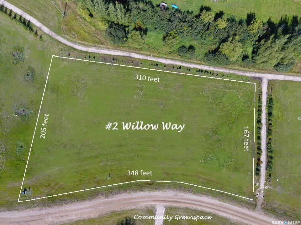 Buy Now, Pay Later! Get ready to build your dream home at Prairie View Properties! Lot 2 Willow Way at Prairie View Properties is an extra wide lot that is well suited to a home with a sprawling footprint and side entry garage. This lot overlooks the community greenspace. 1.25 acres with a South facing view. Colorado Spruce line the back yard perimeter on the North side of the lot, just beside the community trail. A flowering hedge to the East frames the sunrise and the front curved boundary is a landscapers dream. Located in the RM of Humboldt #370, just 2 KM North East of the City of Humboldt & approx. 40 min from BHP Jansen Mine. Relax and enjoy the natural beauty of this acreage development enhanced by greenspaces, walking trails and a pond. Lots are serviced to the Property line with Power, Phone, Natural Gas and SHL Rural Pipeline Water. Sewer Service to be selected by Buyer. Approved for Type 2 Mound or Septic Holding Tank. Purchase Price is Plus GST. Buyer to pay non-refundable down payment to hold the lot with the obligations to pay the balance upon occupancy or two years. Call today for more information or to view!