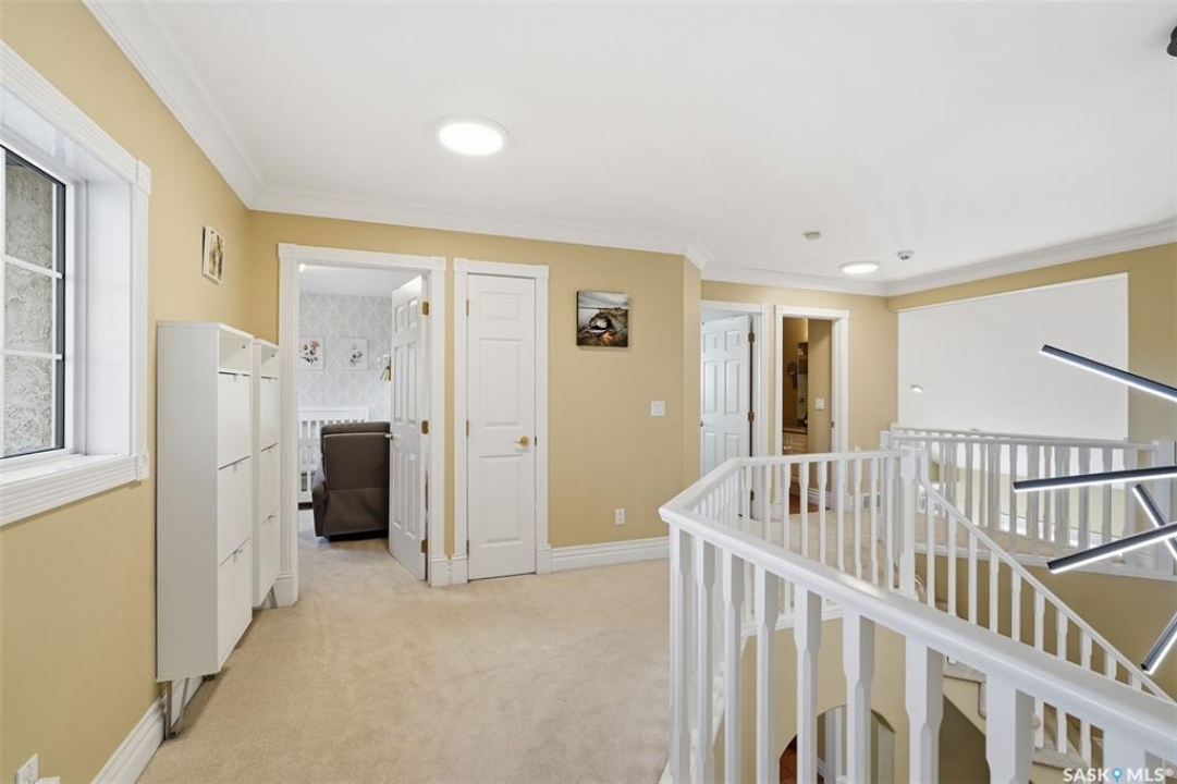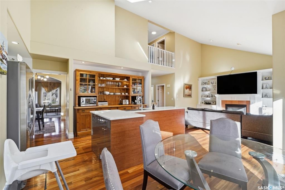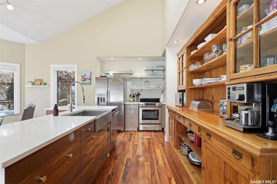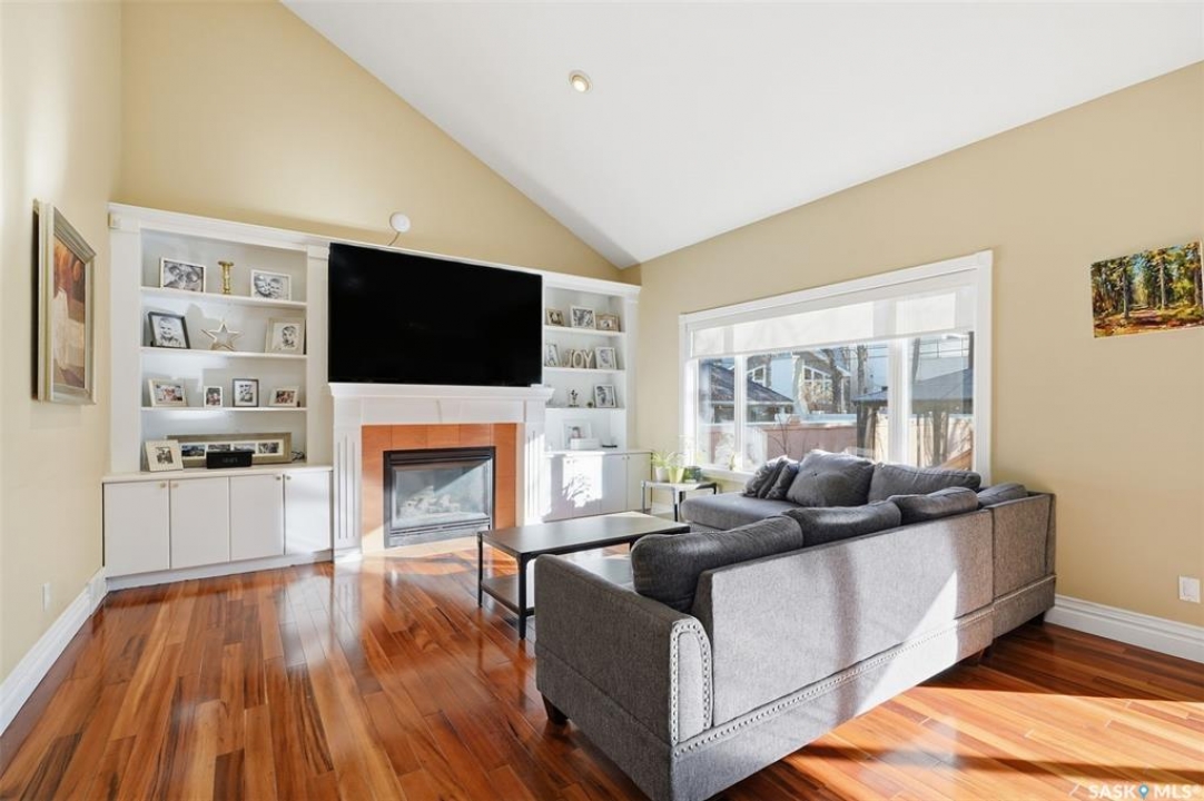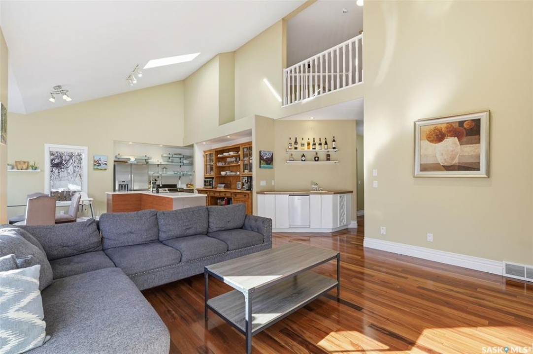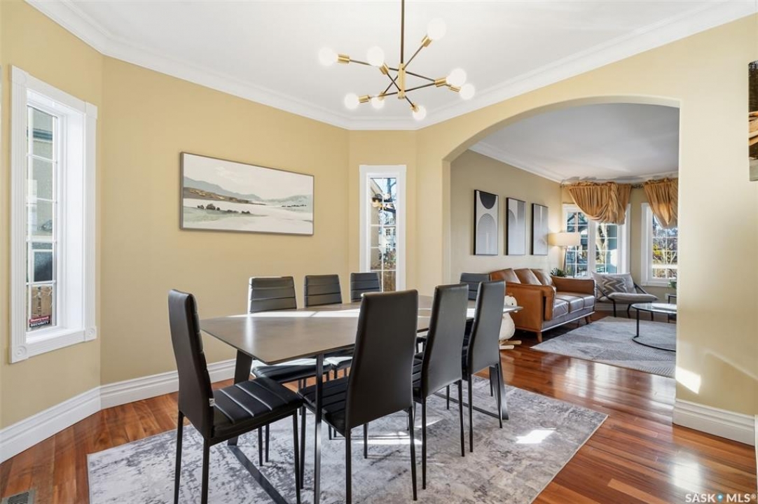 Quiet elegance is what you will feel in this stunning 2 storey located on a historic street close to the river with loads of curb appeal. The entrance leads you into a grand open concept living space with loads of natural light and vaulted ceilings that seem to go on forever. A bright skylight, stainless steel appliances, adjoining living room with fireplace and engineered hardwood flooring make this living space a place to gather with family and friends. What would make this gathering place even better? Main floor wet bar of course. This home has everything! There is main floor laundry, direct entry to garage as well as direct access to the backyard and 2 tiered deck with hot tub right off the dining room and kitchen. The primary suite boasts a stunning 5 piece ensuite with his and hers sinks, soaker tub and separate shower. There are 2 other good sized bedrooms and 4 pc bathroom. The finished basement is perfect for a family – loads of space for teens to occupy or for a young family to have a play area for small children. The backyard is an oasis with a hot tub, 2 tiered deck leading to lush grass and assorted foliage. The home is located steps away from the South Saskatchewan River and all the wonderful walking paths. Enjoy sunrises and sunsets on the front porch or back deck, either way, it is luxury at its finest! Call now to book your private showing.