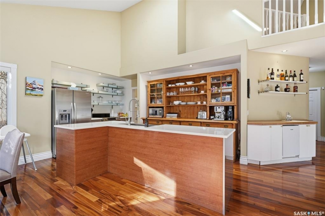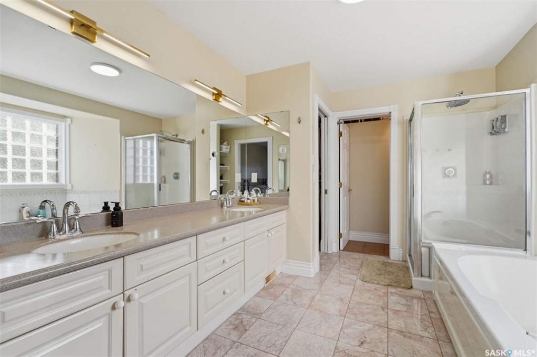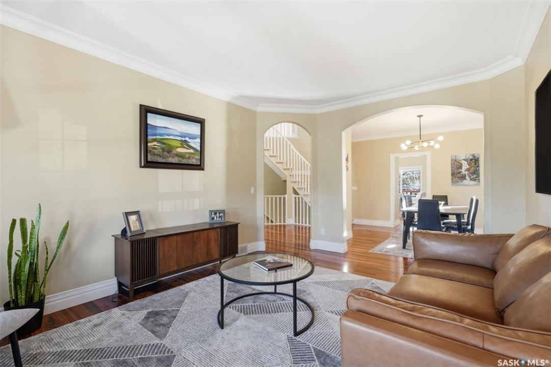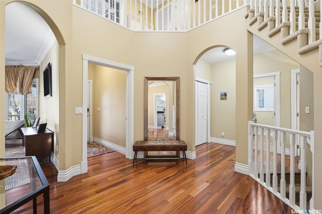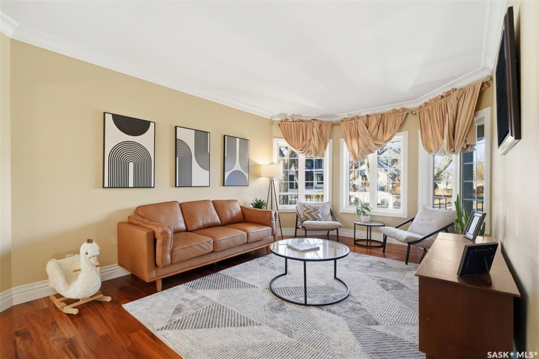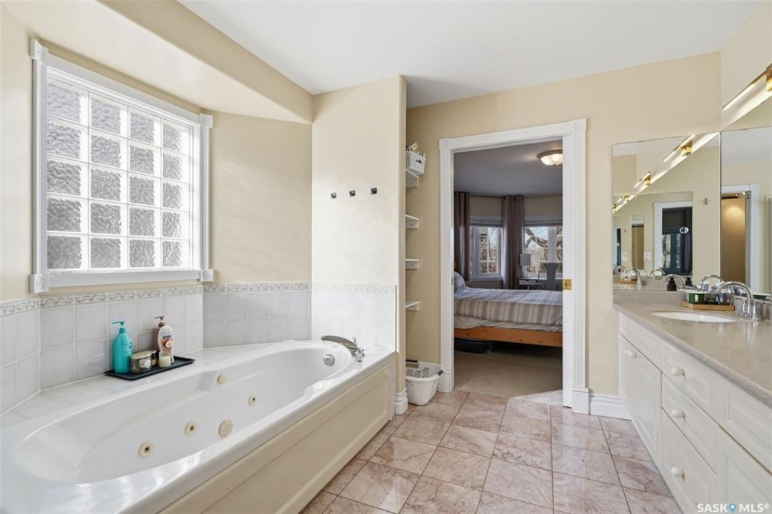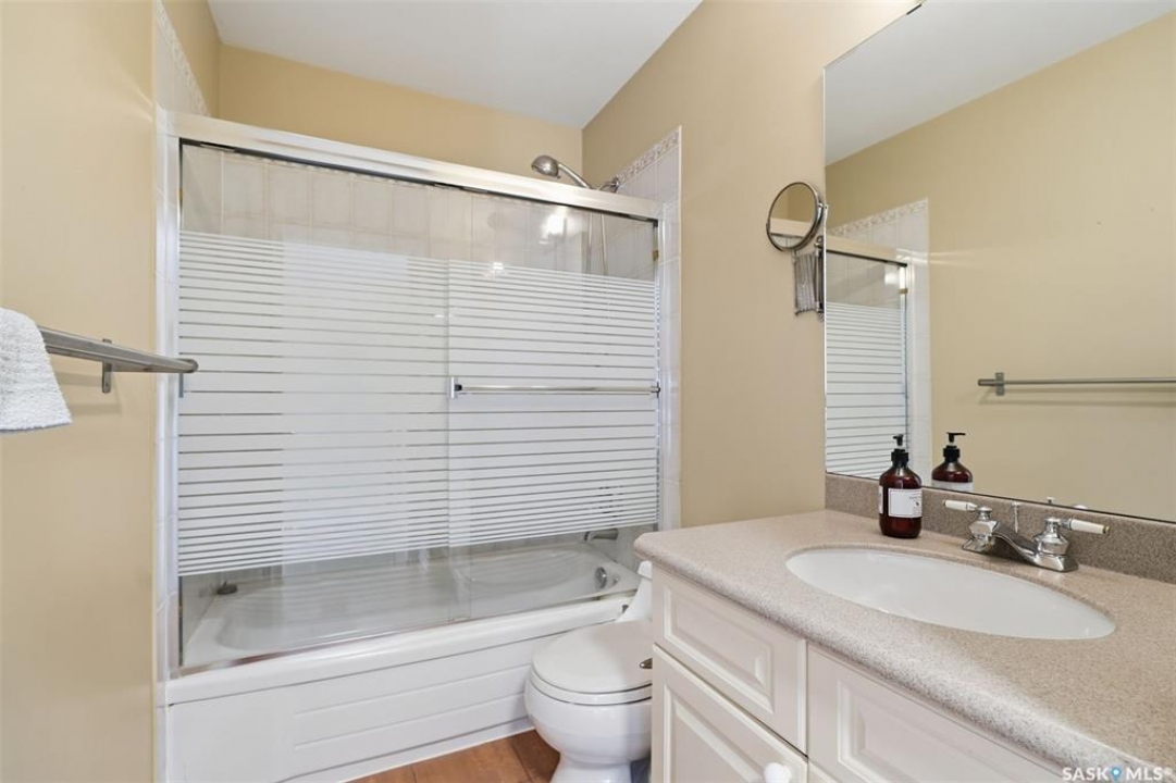 Quiet elegance is what you will feel in this stunning 2 storey located on a historic street close to the river with loads of curb appeal. The entrance leads you into a grand open concept living space with loads of natural light and vaulted ceilings that seem to go on forever. A bright skylight, stainless steel appliances, adjoining living room with fireplace and engineered hardwood flooring make this living space a place to gather with family and friends. What would make this gathering place even better? Main floor wet bar of course. This home has everything! There is main floor laundry, direct entry to garage as well as direct access to the backyard and 2 tiered deck with hot tub right off the dining room and kitchen. The primary suite boasts a stunning 5 piece ensuite with his and hers sinks, soaker tub and separate shower. There are 2 other good sized bedrooms and 4 pc bathroom. The finished basement is perfect for a family – loads of space for teens to occupy or for a young family to have a play area for small children. The backyard is an oasis with a hot tub, 2 tiered deck leading to lush grass and assorted foliage. The home is located steps away from the South Saskatchewan River and all the wonderful walking paths. Enjoy sunrises and sunsets on the front porch or back deck, either way, it is luxury at its finest! Call now to book your private showing.