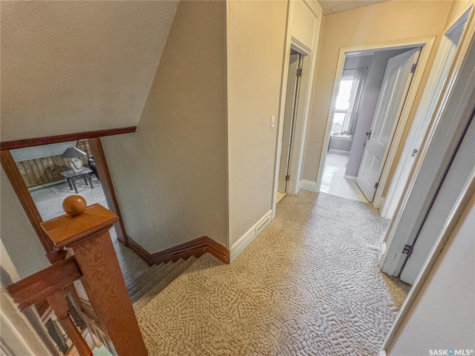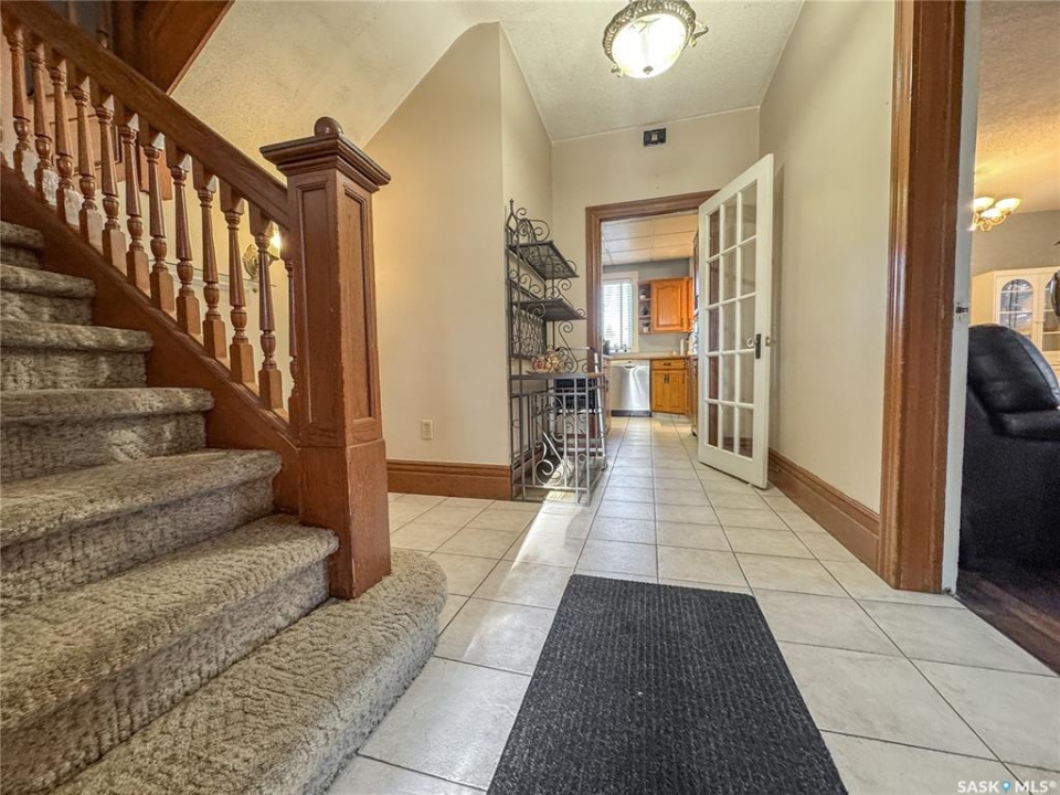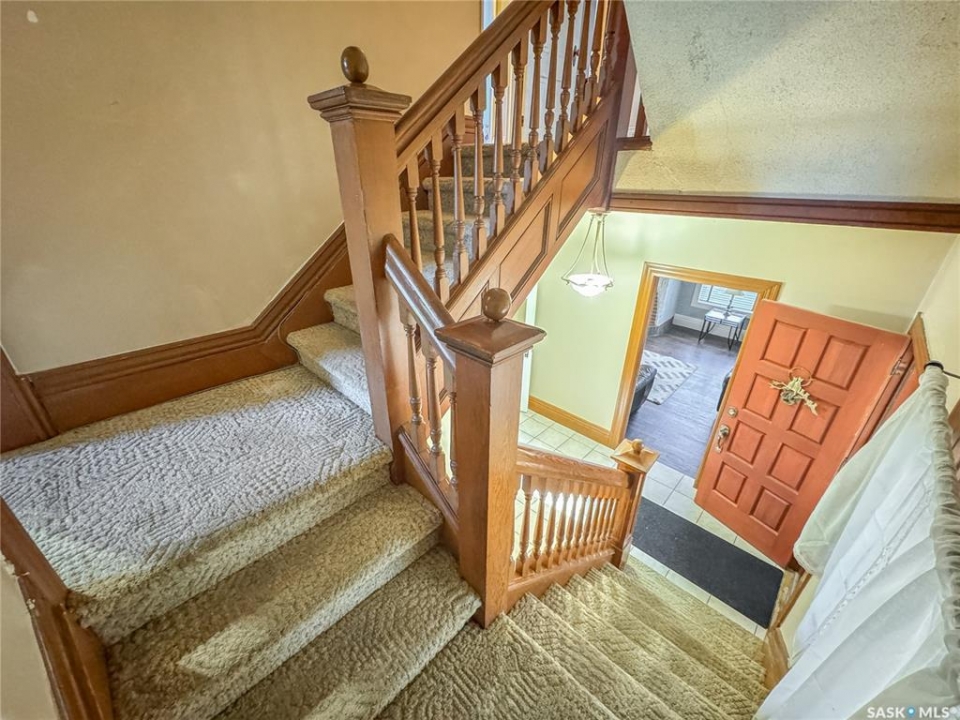 This stunning solid brick character home sits on a massive 125' x 126' corner lot in the charming Town of Indian Head, just a 35-minute commute east of Regina along the Trans Canada Highway. The main floor features a bright and open layout with a wood-burning fireplace in the living room, a spacious foyer, a half bath, and a beautiful open banister staircase. On the second level, you'll find a generous family room above the garage addition, perfect for relaxing or entertaining. The third level offers three bedrooms (two of which are adjoining), a full bathroom with a jetted tub, a laundry room with a shower, and access to a balcony above the front porch. The fourth level boasts a finished attic space that can be transformed into a primary bedroom, studio, playroom, or whatever suits your lifestyle. Outside, enjoy a large patio with a natural gas BBQ hookup and a fenced yard ideal for children and pets. The attached garage is wired for 220V and includes an overhead opener, with plenty of room for additional outbuildings and parking for recreational vehicles. This home combines character, space, and versatility—truly a rare find in a welcoming community. Call your Hometown Real Estate Professional today to explore the possibilities!