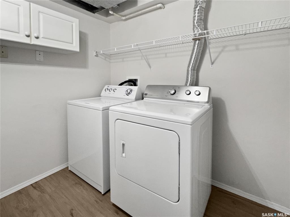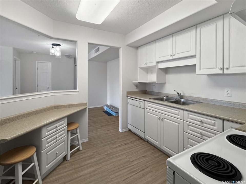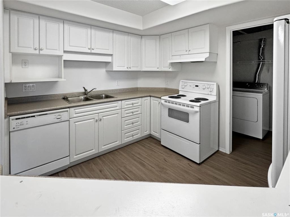 Step inside and be impressed by how efficiently this condo is designed. A large entry closet offers plenty of storage as you come in, complemented by two additional linen or pantry spaces for extra organization. The layout flows seamlessly from a dedicated dining area into a bright and open living room, creating the perfect setting for relaxing or entertaining guests. The kitchen has lots of cupboard and counter space and just off the kitchen, you'll find an in-suite laundry and storage room—with plenty of space to add a freezer or extra shelving. This home features two generous bedrooms and two full bathrooms. The primary suite includes dual closets and a private 3-piece ensuite, offering both comfort and functionality. The second bedroom is conveniently located near the main bathroom, which features a tub/shower combination—ideal for guests or family. You'll also appreciate the secure main-level heated parkade, complete with your own parking stall and a handy storage room. This condo combines thoughtful design, great amenities, and a central location—don't miss your chance to make it yours! Schedule your private showing today.