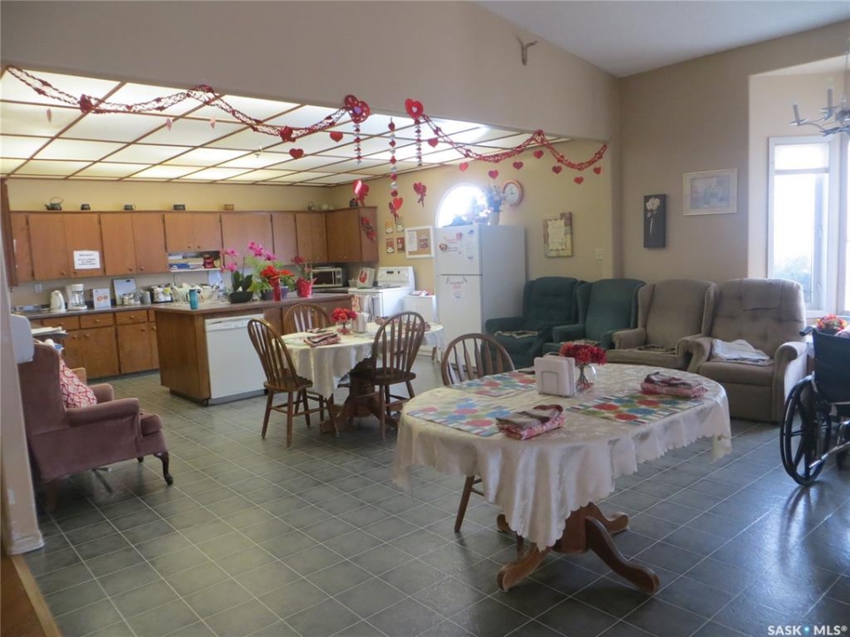 This well cared for, very established care home is over 4,100 sqft on 1 level & is fully licensed for 10 beds. It is located on two lots in a quiet residential area of the thriving town of Pilot Butte, only 10 minutes on paved roads outside of Regina. Off the front entry is the large great room, dining room, kitchen & office space all with lovely cathedral ceilings. All 10 bedrooms are spacious with high ceilings. There are 3 baths (one with lift). Part of the home uses forced air heat and the rest has in-floor hot water heat to make it cozy & warm. There are 3 sets of garden doors leading to the beautiful large yard. The home has central air conditioning & has plenty of visitor parking spaces. This home operates with consistently low vacancy and is well-known and recommended to prospective residents by former client families, personal care home operators and health care workers. Some furniture belongs to residents but all the rest is included along with the equipment & supplies. Call for more information and to book a viewing.