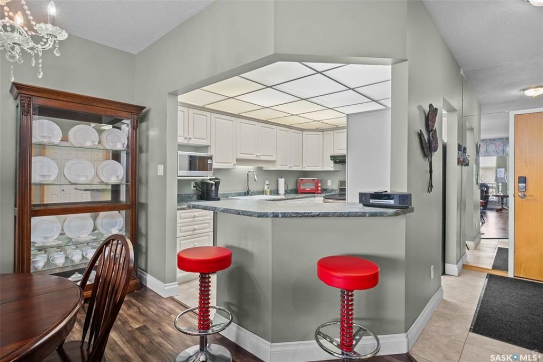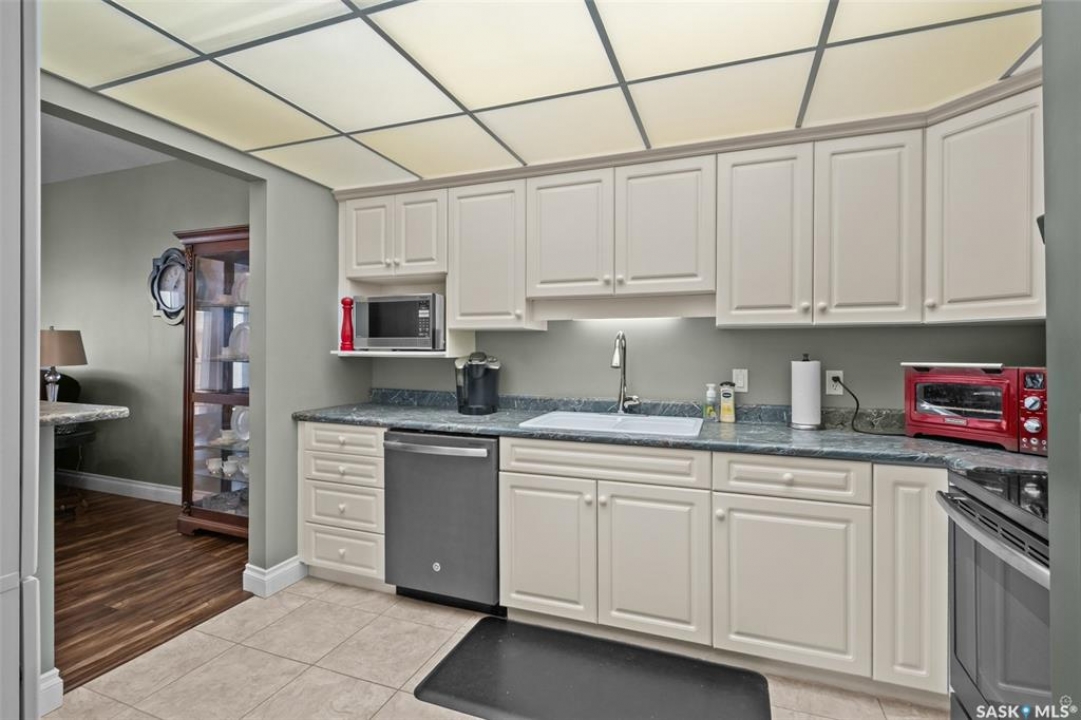 Beautifully updated main floor corner unit in the desirable Waterford Condominiums! This 1,152 sq ft 2 bedroom, 2 bathroom home offers a bright open concept layout with 9 ft ceilings and plenty of natural light. The modern kitchen features updated countertops and appliances, and flows seamlessly into the spacious dining and living areas. Off the living room is a lovely den with a large window that is perfect for a home office or hobby space. This unit includes a primary bedroom with walk-in closet and 3 piece ensuite, a second bedroom and a 4 piece bathroom. Updates include engineered hardwood and ceramic tile flooring as well as refreshed trim and fresh paint throughout. Enjoy the East facing, private covered patio complete with a convenient storage area, perfect for morning coffee or relaxing outdoors. Additional features include central air conditioning for year round comfort and a single detached garage for secure parking. Ideally located in a great West Hill location within walking distance to many amenities, this move in ready condo offers easy living in a quiet well maintained complex. Call today to book your private showing!