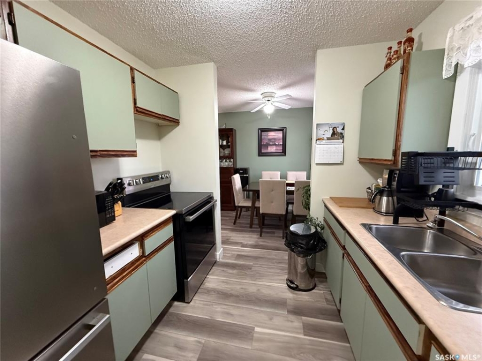 912 Larson Crescent, Eston, SK. Updated, refreshed, and move-in ready! This 960 square foot bungalow, built in 1981, is situated on a 6,000 square foot lot in a nice family neighborhood. The cozy home features a living room with a large window, providing plenty of natural light. The dining room and kitchen offer a nice view of the backyard. The main level includes three bedrooms and a 4-piece bathroom, along with ample closet space. The concrete basement is open for development. Recent features and updates to the home include new vinyl plank flooring throughout the main level, an updated main bathroom, fresh white paint and trim, a newly added pantry in the kitchen, and all-new appliances. The kitchen has also received a facelift with refreshed cupboards. Additionally, a new fence with a double gate has been installed. Call today for more information and to schedule your viewing!