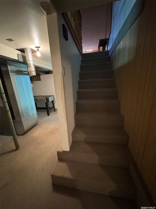 This property is two lots backing a park in Wadena, SK. The home is a 3 bedroom bungalow with a nice eat in kitchen, and large living room overlooking the park. The bedrooms are good size and main floor is rounded out by a porch and laundry/4-piece bathroom. The yard has a deck 1-car garage with a covered patio area, and a large back yard overlooking the park. The basement is partially finished with a den, the former laundry area, 2-piece bath, utility area, and two large rooms ready to make what you want.