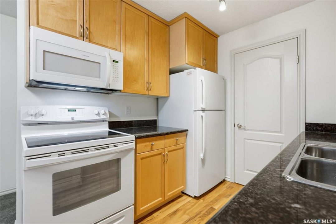 Why rent when you can own? This bright and functional two bedroom, one bathroom condo offers a fantastic opportunity to step into homeownership in a great east side location. You'll be centrally located close to schools, shopping, parks, and even a golf course, making it easy to enjoy everything the area has to offer. Inside, you'll find a well laid out kitchen with granite countertops, white appliances, and a comfortable living area with newly installed carpet. There's also in-suite laundry for added convenience. Step outside to the large east facing balcony where you can enjoy your morning coffee in the sunshine. The condo includes two storage spaces — one inside the unit and another right on the balcony. This is a solid building in a wonderful neighbourhood, perfect for a first time buyer, downsizer, or anyone looking for affordable living in a convenient location. Don't miss your chance to make it yours!