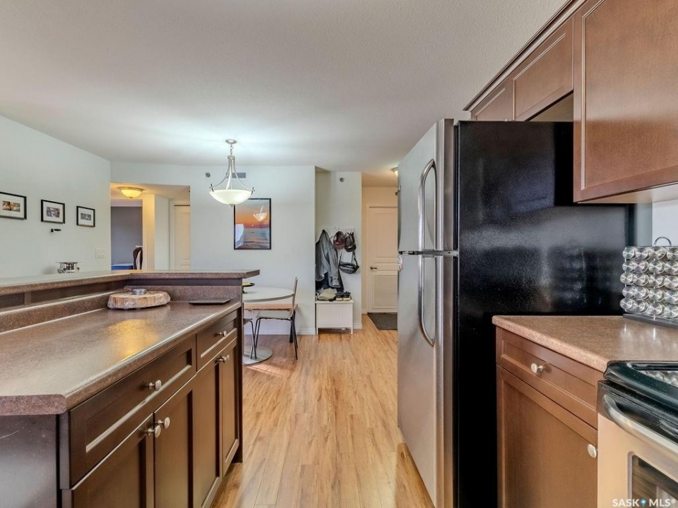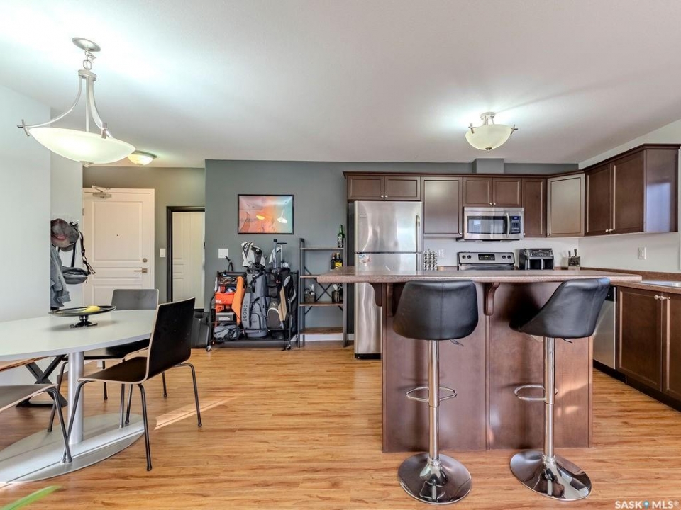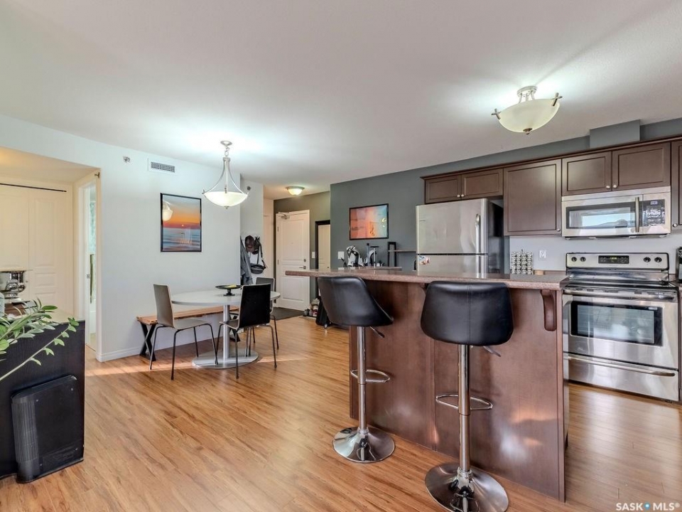 Welcome to this beautifully maintained 2-bedroom, 2-bathroom condo located in the highly desirable Stonebridge neighbourhood. This top floor corner unit offers an abundance of natural light and an open-concept layout perfect for modern living. The spacious kitchen features an island, ample countertop space, plenty of cabinetry, and stainless steel appliances - ideal for cooking and entertaining. Both bedrooms are generously sized, with the primary suite offering a private 3-piece ensuite. Additional highlights include in-floor heating, fresh paint, in-suite laundry with extra storage, and a separate storage unit located in the underground parkade. Enjoy the convenience of two parking stalls - one underground and one surface level - plus elevator access for easy living. Situated close to shopping, restaurants, parks and all Stonebridge amenities, this bright and inviting condo is move-in ready and perfect for anyone seeking comfort, convenience, and style. Contact your Realtor today, it won't last long!
