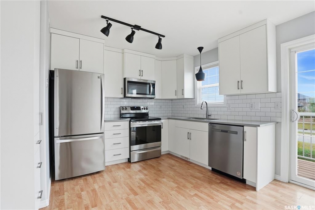 Welcome to 35-118 Pawlychenko Lane, a beautifully maintained and extensively upgraded townhome ready for immediate possession. This spacious unit offers an abundance of natural light, a smart, functional layout, and comfort-driven updates throughout. Step inside to find a bright and airy living space featuring large windows and fresh paint (2022 & 2025). The open-concept kitchen had a major renovation completed in 2017, complete with upgraded stainless steel appliances including a new dishwasher and microwave (2022) and additional pantry storage added. The adjacent dining area opens onto a private balcony, perfect for morning coffee or evening BBQs. A two-piece bathroom on the main floor adds convenience. Upstairs, you'll find two generously sized bedrooms—including a primary bedroom with a walk-in closet—plus a full 4-piece bathroom and upstairs laundry with a newer washing machine (2022). A finished flex room off the garage offers ideal space for a hobby room, office, or home gym. Additional storage space located off the flex room. The single attached garage with direct entry and an exclusive driveway provides parking for two vehicles. Significant mechanical upgrades include a new central air conditioner (2022), furnace (2021), water heater (2022), and garage door (2019)—offering peace of mind for years to come. Enjoy upgraded laminate flooring throughout the bedrooms, stairs, and bonus room (2017). Located just steps from parks, transit, grocery stores, restaurants, and amenities, this home combines low-maintenance living with unbeatable convenience.