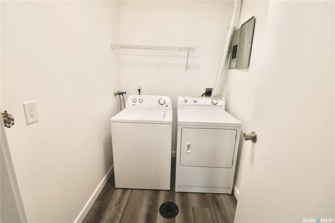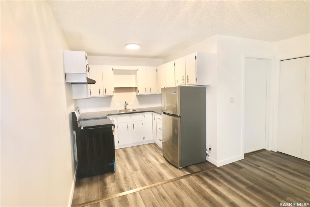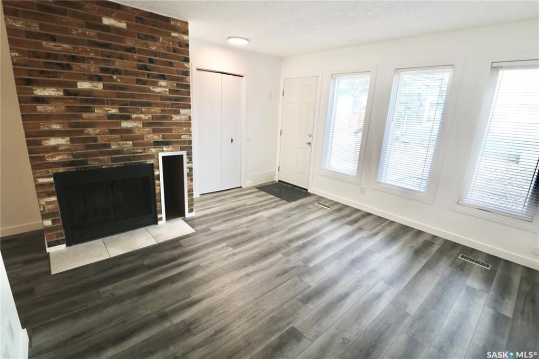 Welcome to this beautifully updated main floor (private entrance) condo located in Regina's desirable Sherwood Place neighbourhood. This bright and inviting home has been updated with new vinyl plank flooring and painting throughout. All windows, in excellent condition, were updated by the previous owner and new blinds have been installed. The wood fireplace is deemed functional at last inspection. The kitchen itself is both stylish and practical, showcasing newly painted white cabinetry, new seamless laminate countertop, new kitchen sink and Moen faucet. The range and refrigerator are also both brand new. Both bedrooms are generously sized with ample closet space. There is also a small closet in the hall and large pantry at the dining area. The in-suite laundry room comes equipped with a used washer and dryer that appear to be in good working condition, along with plenty of storage space. The furnace and floor vents have been professionally cleaned October 2025. There is additional storage in the adjoined shed and has a patio area for your enjoyment. Note that this is a pet approved property with some restrictions. Condo fees include water. A bus stop and shelter are conveniently located in front of the parking lot.