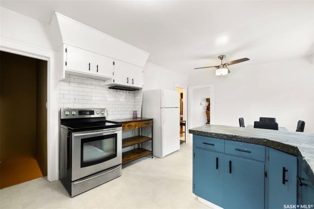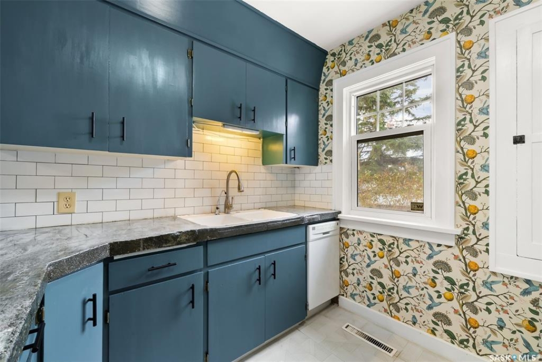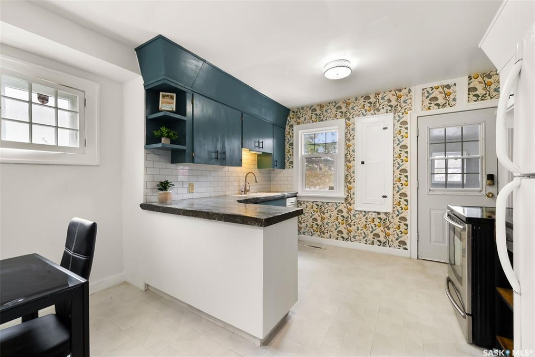 Welcome to 2314 Elphinstone Street, a home filled with character, personality, and potential. Nestled on a beautiful tree-lined street just steps from Kwanis Waterfall Park, Wascana Park, bike paths, shopping, and schools, this 3-bedroom, 2-bath bungalow is full of charm while still allowing space to make it your own. The front entry opens to a bright living room where original hardwood flooring and a wood-burning fireplace create a cozy, welcoming space. The dining area and kitchen continue the home's unique appeal with two-toned cabinets, open shelving, and all appliances included, along with a recent kitchen refresh that adds both style and function. Down the hall are two comfortable bedrooms with generous closets and an updated bathroom with crisp subway tiles, featuring a newer tub, vanity, and toilet. The lower level adds great versatility with a spacious family room, laundry area with washer and dryer, an updated three-piece bath, and an additional bedroom that could serve as a guest room, home office, or potential mortgage helper. Notable updates include some windows, high-efficiency furnace (2019), sewer line (2022), and kitchen refresh to note a few. The backyard offers a large deck, single detached garage, and the opportunity to create your own outdoor oasis. Full of charm and ready for a new chapter, this lovely home offers quick possession so you can be settled in time for the holidays! Contact your agent today for a private showing.