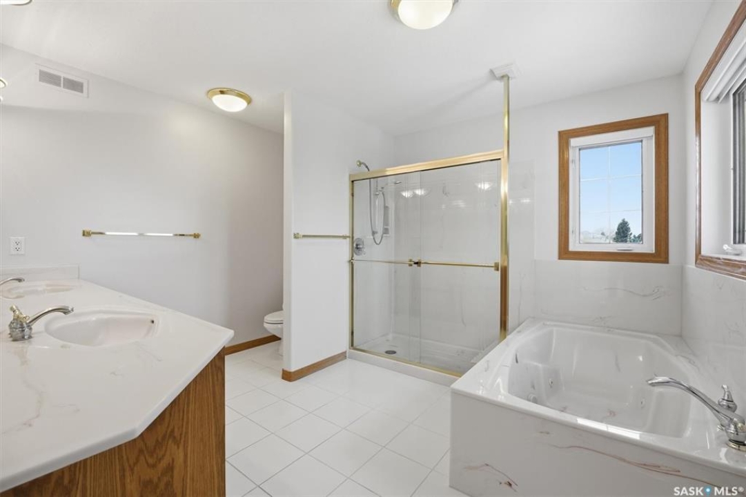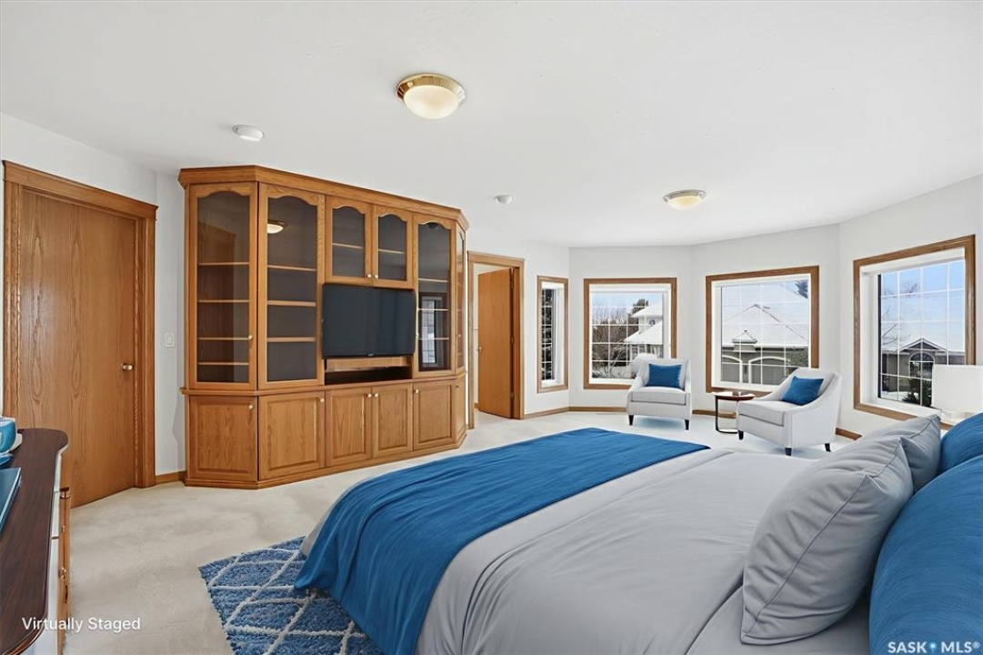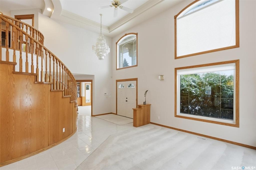 Welcome to 228 Braeshire Lane, Experience quality craftsmanship and timeless design in this stunning Valentino-built two-storey home, perfectly situated in Saskatoon's highly sought-after Briarwood neighborhood. Built in 1996 and meticulously maintained, this residence offers over 2,800 sq. ft. of elegant living space, featuring 4 bedrooms, 4 bathrooms, and multiple living areas designed for both comfort and functionality. As you enter, you're greeted by a spectacular 18-foot foyer with a grand spiral staircase and an open-concept living and dining area that exudes sophistication. From the dining room, a set of French doors leads to the bright kitchen and breakfast nook, thoughtfully designed with ceramic tile flooring, a gas range with direct exterior venting, two double sinks and dishwasher—ideal for large gatherings. The main floor also includes a spacious family room with a gas fireplace, a bright office overlooking the street, a powder room, and a mudroom with laundry hookups conveniently located by the garage entrance. Throughout the home, you'll find extensive built-in cabinetry providing exceptional storage and style. Upstairs, the primary suite offers a luxurious retreat with a 5-piece ensuite featuring a Jacuzzi tub, separate shower, and dual-sink vanity. Two additional large bedrooms and a 4-piece bathroom complete the upper level. The fully finished basement extends the living space with a large recreation and game room, an additional bedroom, a den, and a 4-piece bath—perfect for guests or family activities. Additional features include dual HE furnaces, HRV system, central A/C and central vacuum. The exterior showcases classic stucco finish, a French-style front entrance, and a durable clay tile roof. An oversized 33'x22' insulated triple garage with direct home access. This exceptional property combines quality, comfort, and practicality—a rare find ideal for a growing family. Contact your favorite REALTOR � today to schedule a private showing!