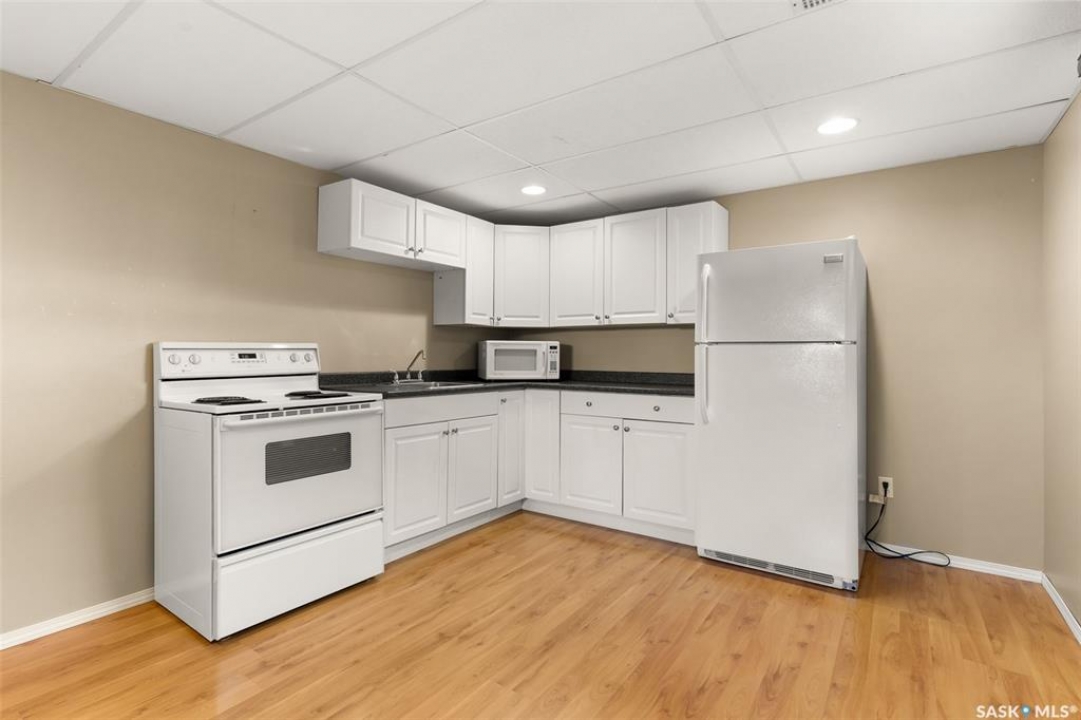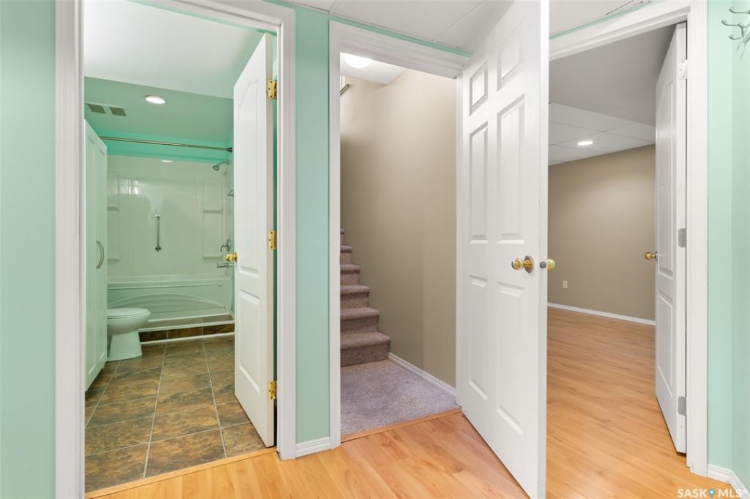 Welcome to 938 Brachman Bay, a beautifully maintained bungalow nestled in the highly desirable Parkridge neighbourhood. Situated on a quiet, family-friendly bay, this home offers the perfect blend of comfort, space, and convenience. Step inside to find a bright and inviting main floor featuring a spacious living room, functional kitchen with ample cabinetry, and a cozy dining area that overlooks the large backyard. The main level hosts three generous bedrooms and a complete full bathroom, making it ideal for families or anyone who appreciates single-level living. Downstairs, you'll find a non-regulation basement suite with two additional bedrooms and den/office space, a full kitchen, living area, and bathroom - perfect for extended family, guests, or potential rental income. The layout offers privacy while maintaining great flexibility for a variety of lifestyles. Outside, enjoy the expansive pie shaped, fully fenced yard, offering plenty of room for children or pets to play, gardening, or summer entertaining. The attached, heated double garage provides ample parking and storage. Parkridge is known for its quiet streets, excellent schools, and nearby parks, including Henry Braun School and Park and Parkridge Park. You'll also appreciate the proximity to shopping, restaurants, walking paths, and all east-end amenities, making this location both peaceful and convenient. Clean, move-in ready, and full of potential, 938 Brachman Bay is the perfect place to call home. Don't miss your opportunity to own a spacious bungalow in one of Regina's most sought-after communities!