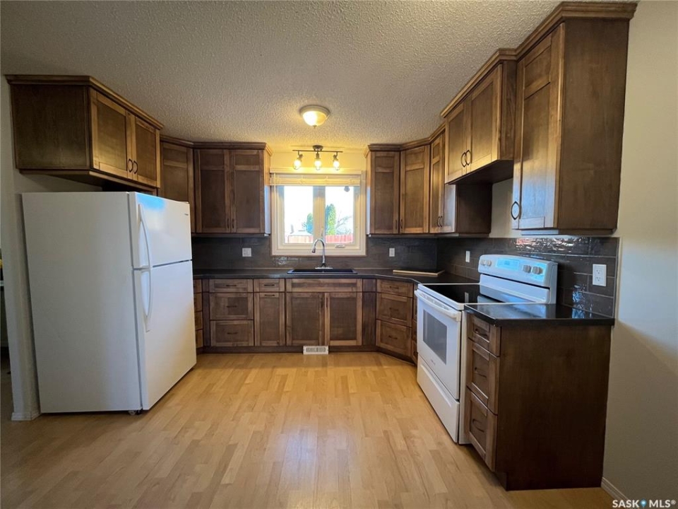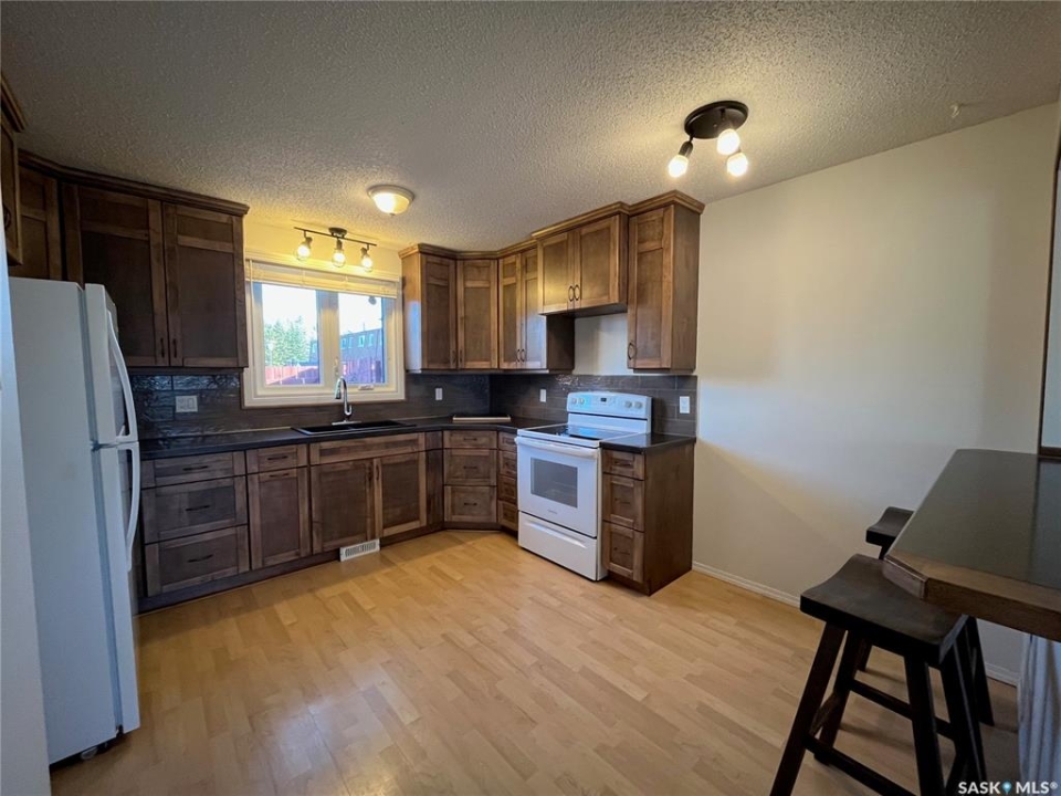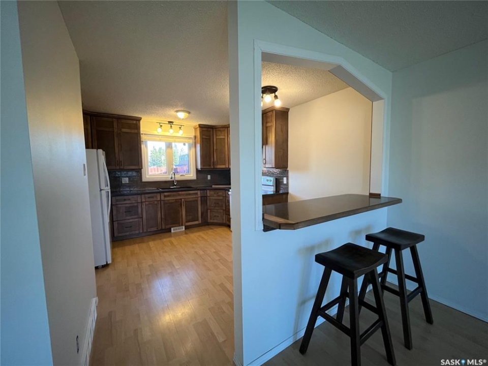 Welcome to Fairview Villas! This 3-bedroom, 2-bath 2-storey row townhouse at 185 5th Avenue S in Yorkton offers 1,209 sq ft of comfortable, move-in-ready living with several recent upgrades. The main floor features a bright, spacious living room and an open concept kitchen/dining area with custom cabinets, ideal for everyday living and entertaining. A convenient 2-pc bathroom is also located on the main level. The main floor and bedrooms received fresh paint in November 2025, giving the home a clean, modern feel. Upstairs you'll find three bedrooms and a full 4-pc bathroom. The full basement is partially finished and provides a large rec room plus a laundry/storage room, offering great extra space for family, hobbies, or a home gym. Major mechanical updates include a new high-efficiency furnace (November 2025), new toilets (November 2025), and a new washer (November 2025, never used). Fridge, stove, washer, and dryer are all included. Central air conditioning keeps the home comfortable in the summer. Outside, enjoy a fenced backyard with a private patio, perfect for kids, pets, or relaxing after work. This pet-friendly complex includes one surface parking stall, visitor parking, and additional street parking. Condo fees cover exterior maintenance, snow removal, lawn care, reserve fund contributions, insurance, and garbage. Located close to parks and schools, this well-maintained townhouse is an excellent option for first-time buyers, families, or investors looking for a low-maintenance home in a convenient Yorkton location.
