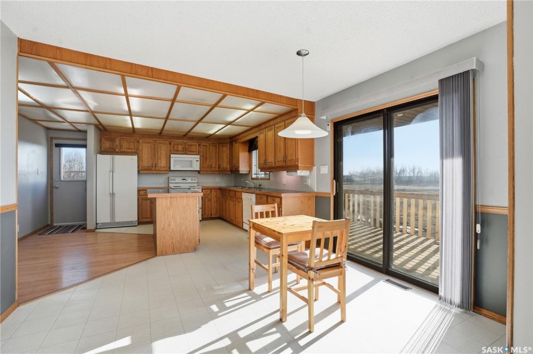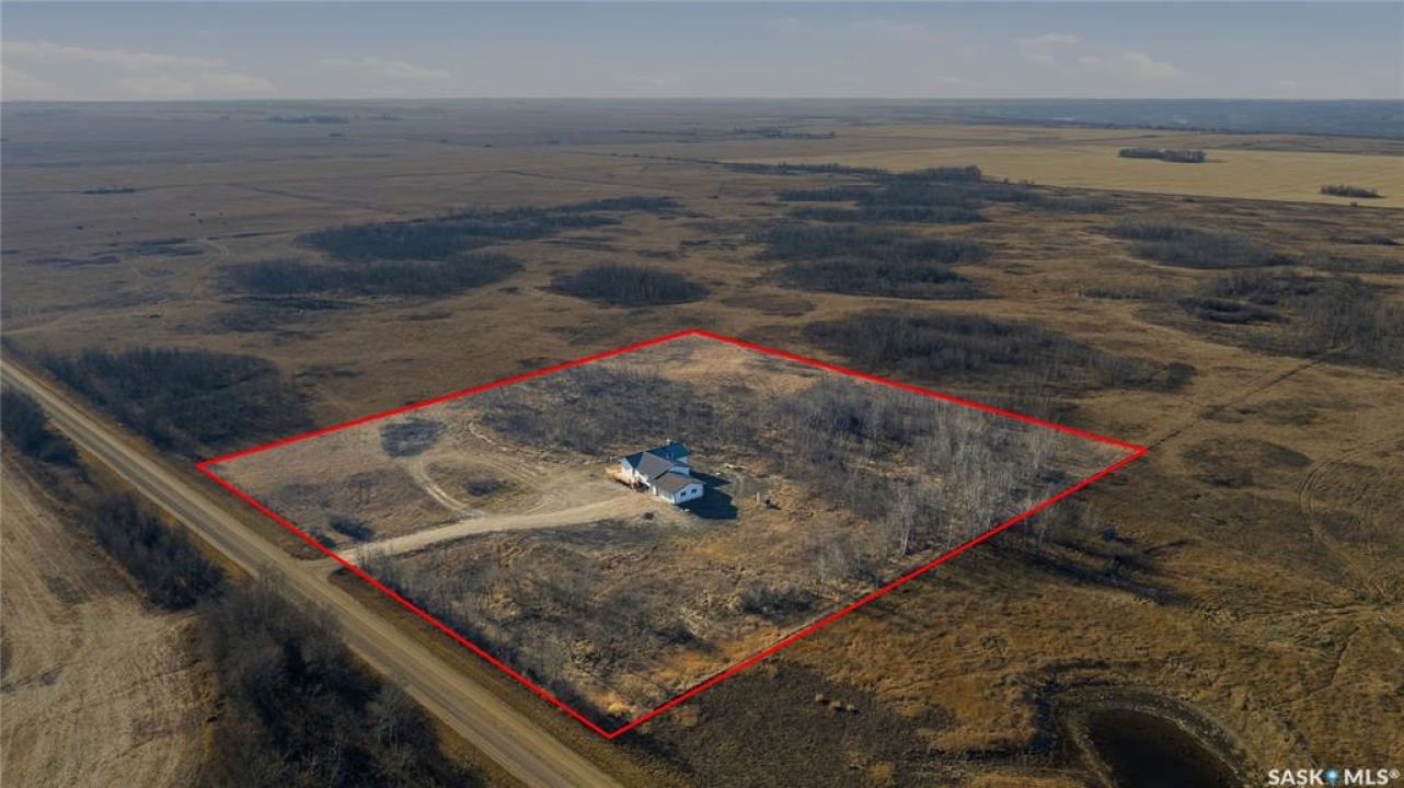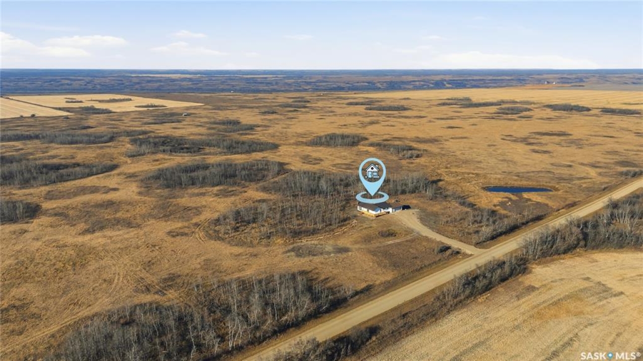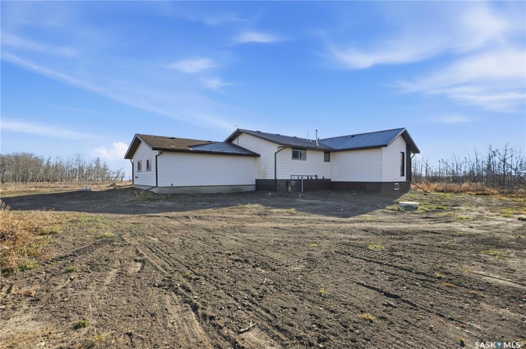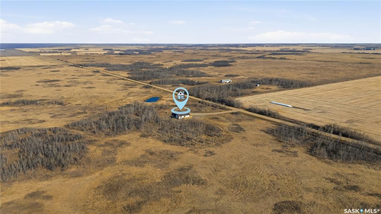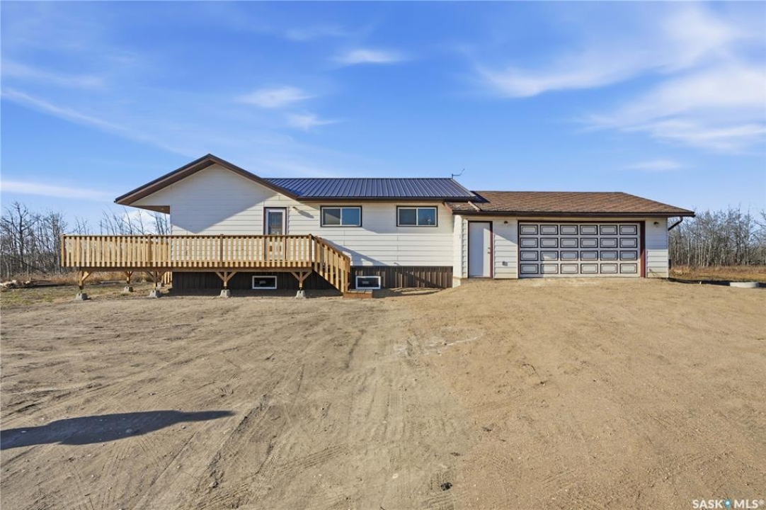 Country Living Close to the City! Discover the perfect blend of space, comfort, and rural charm with this 1,384 sq ft bungalow situated on 10 acres (with the potential to purchase up to an additional 150 acres). Located just 25 minutes from Saskatoon and only 6 km from Langham and local schools, this property offers peaceful country living with convenient access to town amenities. Inside, you'll find a spacious 3-bedroom, 1-bathroom layout featuring a massive living room with a cozy wood-burning fireplace — perfect for family gatherings. The large wrap-around deck provides the ideal spot to relax and enjoy prairie sunsets. The home also includes a double attached garage, an unfinished basement ready for development, and a new electrical panel for peace of mind. Located on a school bus route, this property offers an excellent opportunity to create your own acreage dream. Please Note: Pending subdivision. Sale will be completed upon subdivision approval and registration.