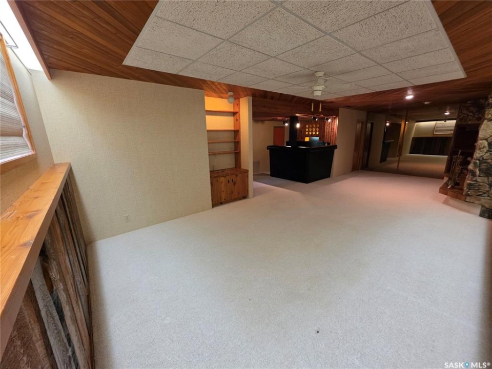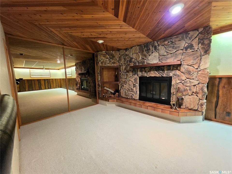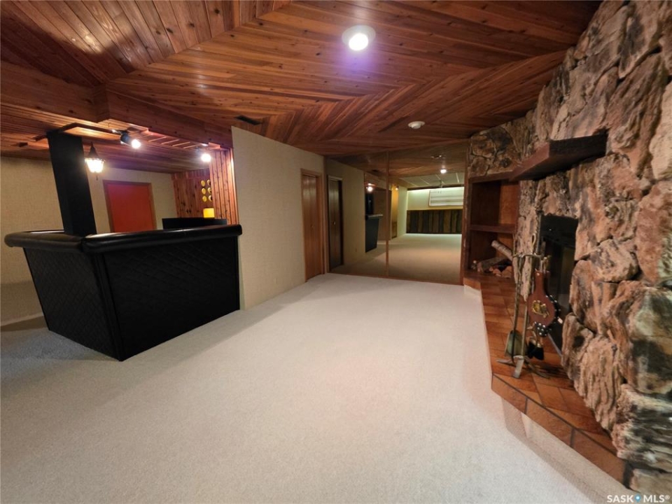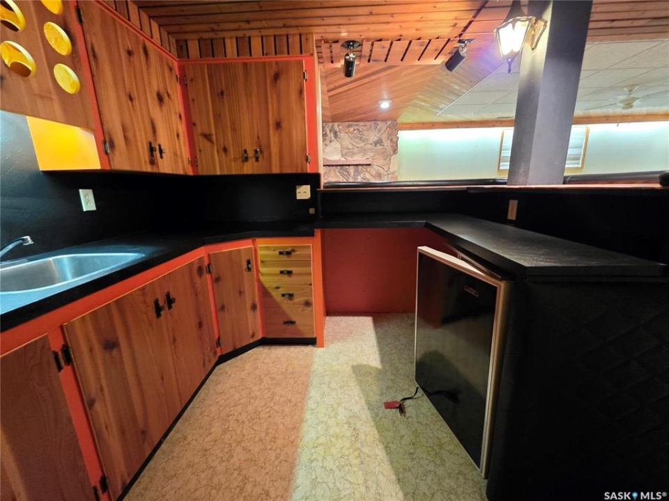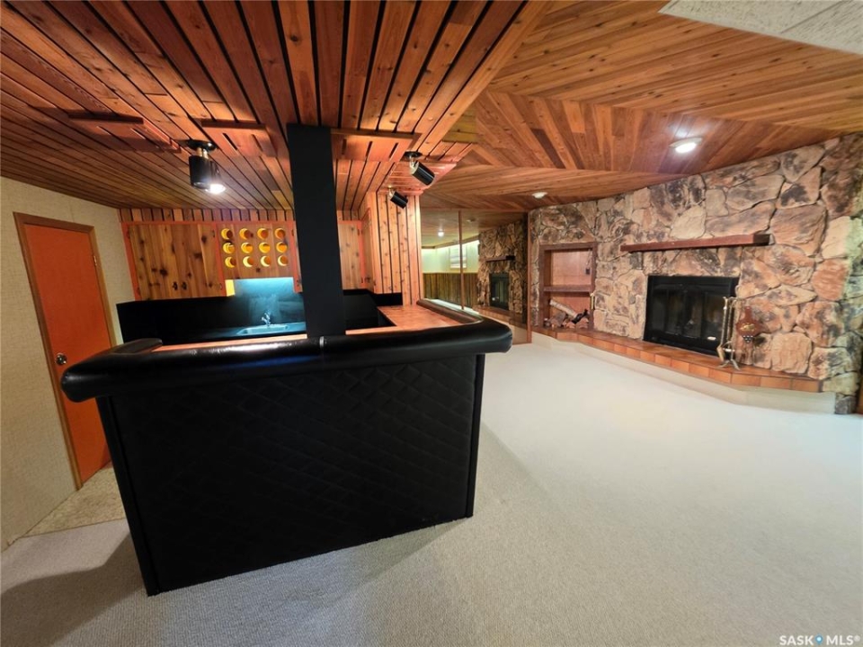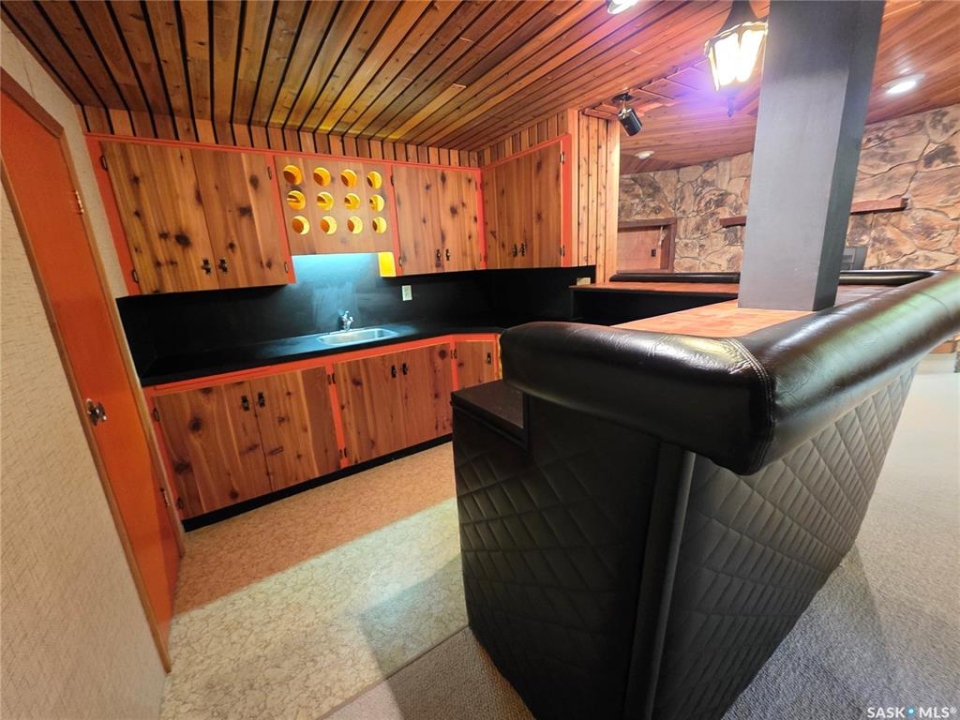This 1,305 sq. ft. bungalow has that warm, welcoming feel that makes you want to kick off your shoes and stay awhile. Tucked in a quiet pocket of town near a daycare and splash park, it's an ideal spot for young families or anyone who enjoys a peaceful setting with convenience close at hand. Inside, you'll find a layout designed for both everyday living and easy entertaining. The kitchen offers plenty of cabinetry and workspace, including a built-in dishwasher with a chopping block top. The casual eating area, perfect for morning coffee or quick family meals. Just off the kitchen is a more formal dining space that flows seamlessly into a spacious living room, where large, south-facing windows invite in loads of natural light and give the home a cheerful, open atmosphere. The main floor hosts 3 comfortable bedrooms, each with good-sized closets, and a tastefully updated 5-piece bathroom featuring a dual vanity and a Bathfitter tub and surround. Downstairs, the fully finished basement stretches out into a quintessential rec room that's big enough for games, movie nights, or large family gatherings. A cozy wood-burning fireplace anchors the room, while a classic padded wet bar adds a fun, retro touch that's sure to be a hit when entertaining. The basement also includes a fourth bedroom and an unexpected bonus—a stand-up tanning booth, perfect for keeping that summer glow all year long. Outside, the front yard is xeriscaped, while the back yard has underground sprinklers and a single garage with an older gas heater. There is a long driveway in the front and loads of parking in the back. This home balances space, comfort, and charm in all the right ways, offering a lifestyle that's as relaxed as it is inviting.