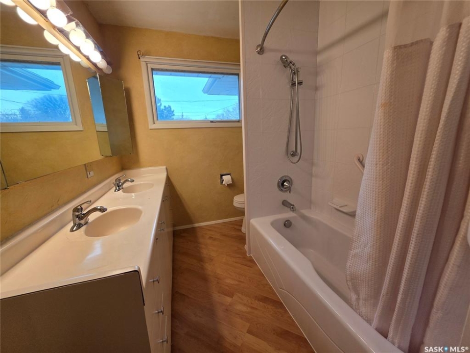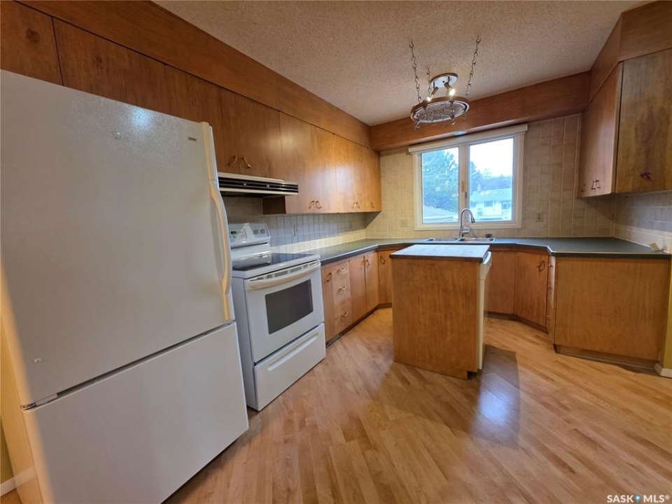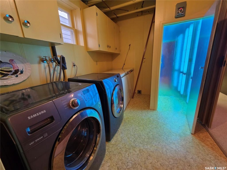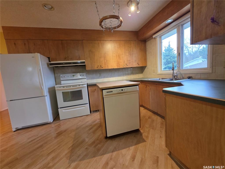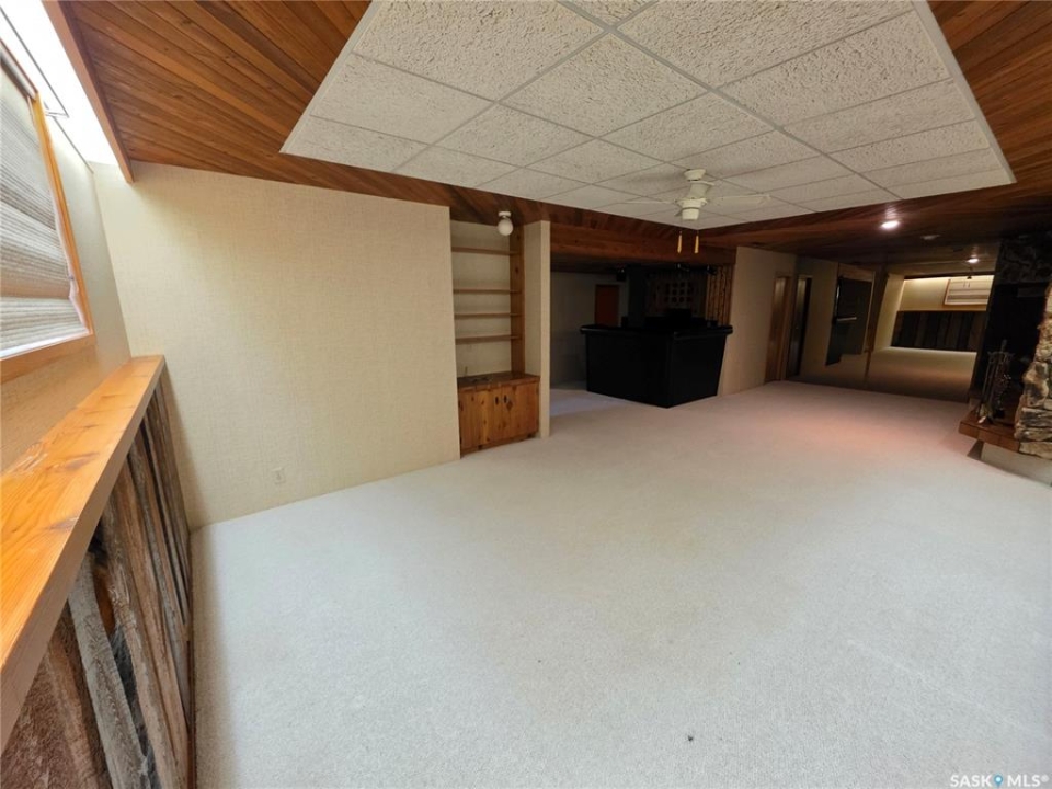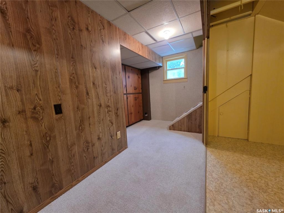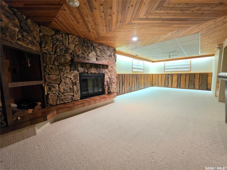 This 1,305 sq. ft. bungalow has that warm, welcoming feel that makes you want to kick off your shoes and stay awhile. Tucked in a quiet pocket of town near a daycare and splash park, it's an ideal spot for young families or anyone who enjoys a peaceful setting with convenience close at hand. Inside, you'll find a layout designed for both everyday living and easy entertaining. The kitchen offers plenty of cabinetry and workspace, including a built-in dishwasher with a chopping block top. The casual eating area, perfect for morning coffee or quick family meals. Just off the kitchen is a more formal dining space that flows seamlessly into a spacious living room, where large, south-facing windows invite in loads of natural light and give the home a cheerful, open atmosphere. The main floor hosts 3 comfortable bedrooms, each with good-sized closets, and a tastefully updated 5-piece bathroom featuring a dual vanity and a Bathfitter tub and surround. Downstairs, the fully finished basement stretches out into a quintessential rec room that's big enough for games, movie nights, or large family gatherings. A cozy wood-burning fireplace anchors the room, while a classic padded wet bar adds a fun, retro touch that's sure to be a hit when entertaining. The basement also includes a fourth bedroom and an unexpected bonus—a stand-up tanning booth, perfect for keeping that summer glow all year long. Outside, the front yard is xeriscaped, while the back yard has underground sprinklers and a single garage with an older gas heater. There is a long driveway in the front and loads of parking in the back. This home balances space, comfort, and charm in all the right ways, offering a lifestyle that's as relaxed as it is inviting.