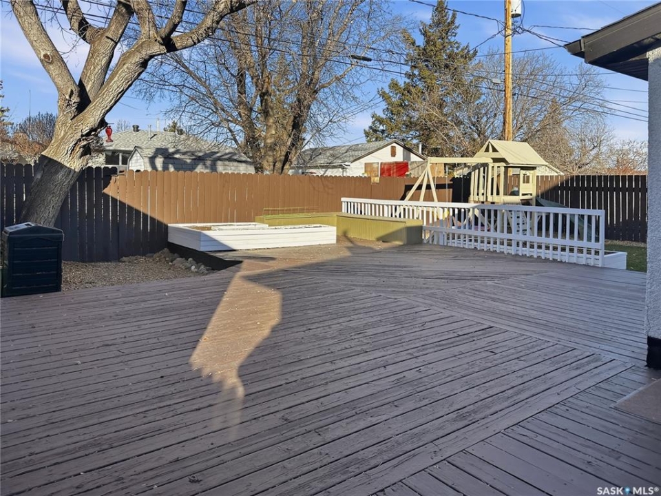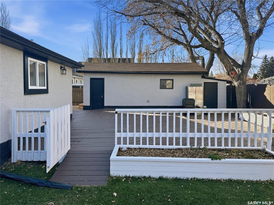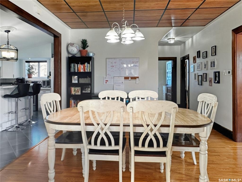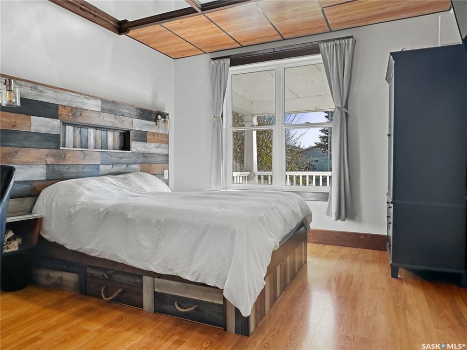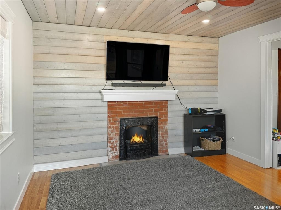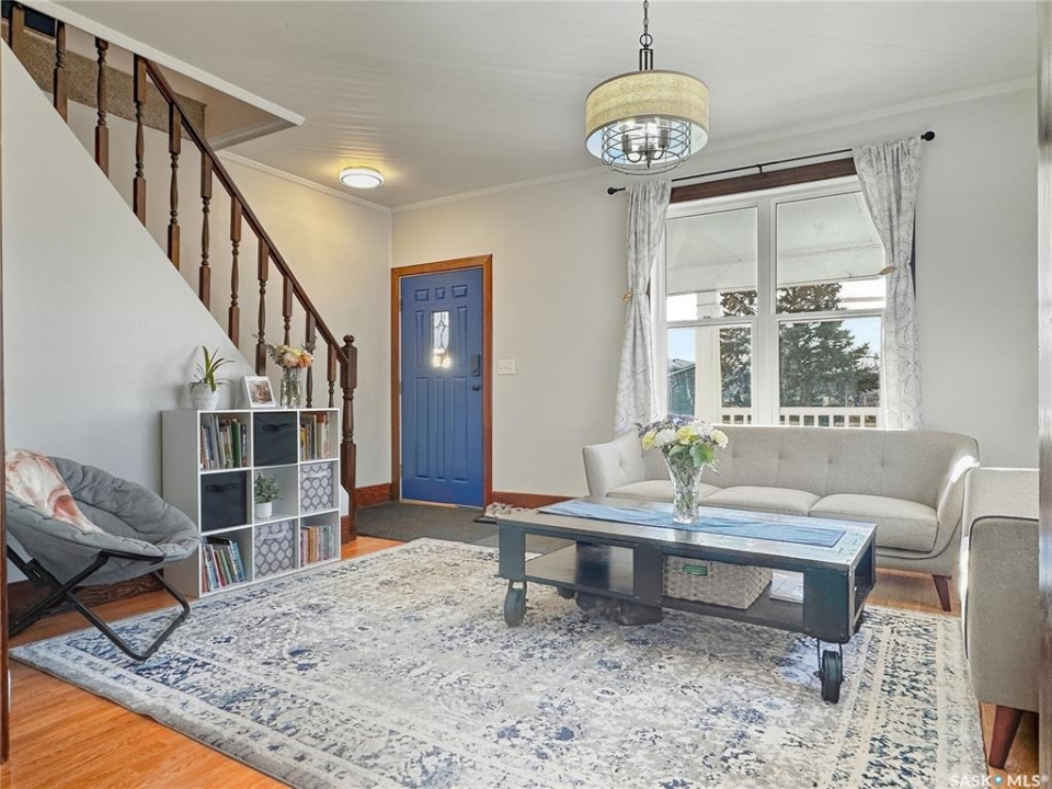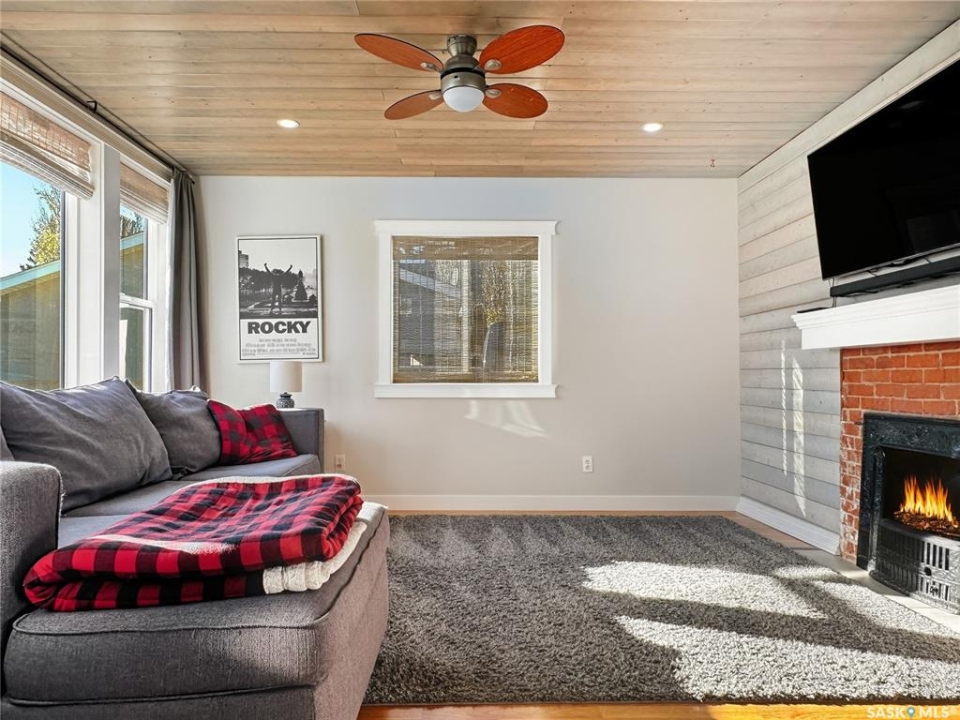 If these walls could talk… built in 1912, this solid and well-maintained home has countless stories to tell and all the character you've been searching for. Located in the beautiful Town of Battleford, this property blends timeless charm with thoughtful updates. Step inside and feel the warmth right away. The spacious layout features large entryways connecting each room, with natural light pouring through the updated windows. A stunning solid wood banister greets you at the front door—a classic hallmark of homes from this era. The living room is welcoming and flows seamlessly into the large dining area, perfect for hosting family and friends. Adjacent to the dining room is a cozy family room that was completely redone—taken down to the studs with new insulation, lighting, and a feature wall showcasing an electric fireplace set in the original brick surround. The kitchen offers excellent storage with an island, pantry, and plenty of cabinetry. Off the back door, you'll find a spacious mudroom ideal for winter gear and everyday use. The primary bedroom is conveniently located on the main floor, right next to the laundry area and a beautifully renovated 4-piece bathroom with quality finishes. Upstairs are two unique bedrooms, full of character and charm—each with cozy nooks perfect for reading or play. The partial basement is great for storage and houses the updated furnace, hot water heater, and electrical panel. Central air conditioning was just installed in 2025 for added comfort. Outside, enjoy a large deck for entertaining, a fenced yard with a play structure and garden shed, and a single detached garage with a brand-new overhead door. And after a long day's work, unwind on the quaint covered front porch—a perfect spot to relax and take in the peaceful surroundings. This one-of-a-kind Battleford home is filled with history, charm, and comfort—ready for its next story to begin. Call for your personal tour of this beautiful property today!