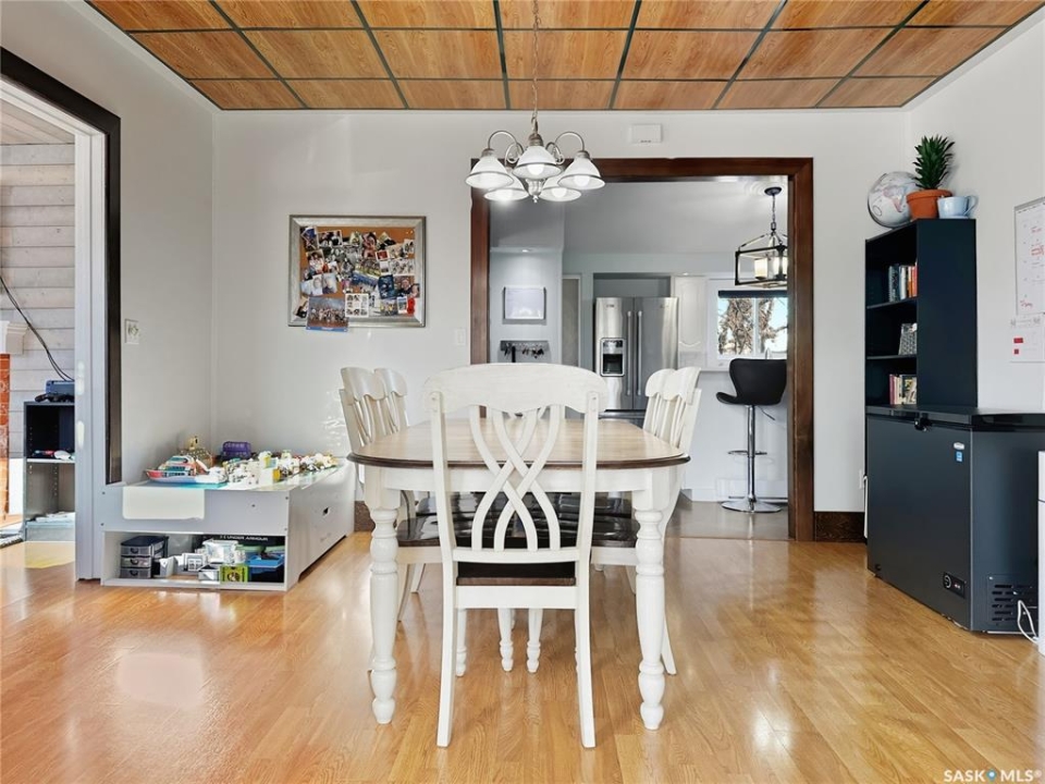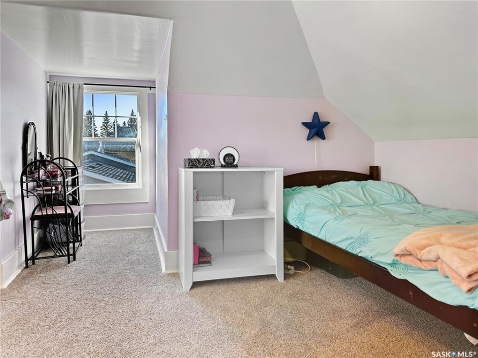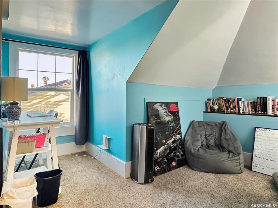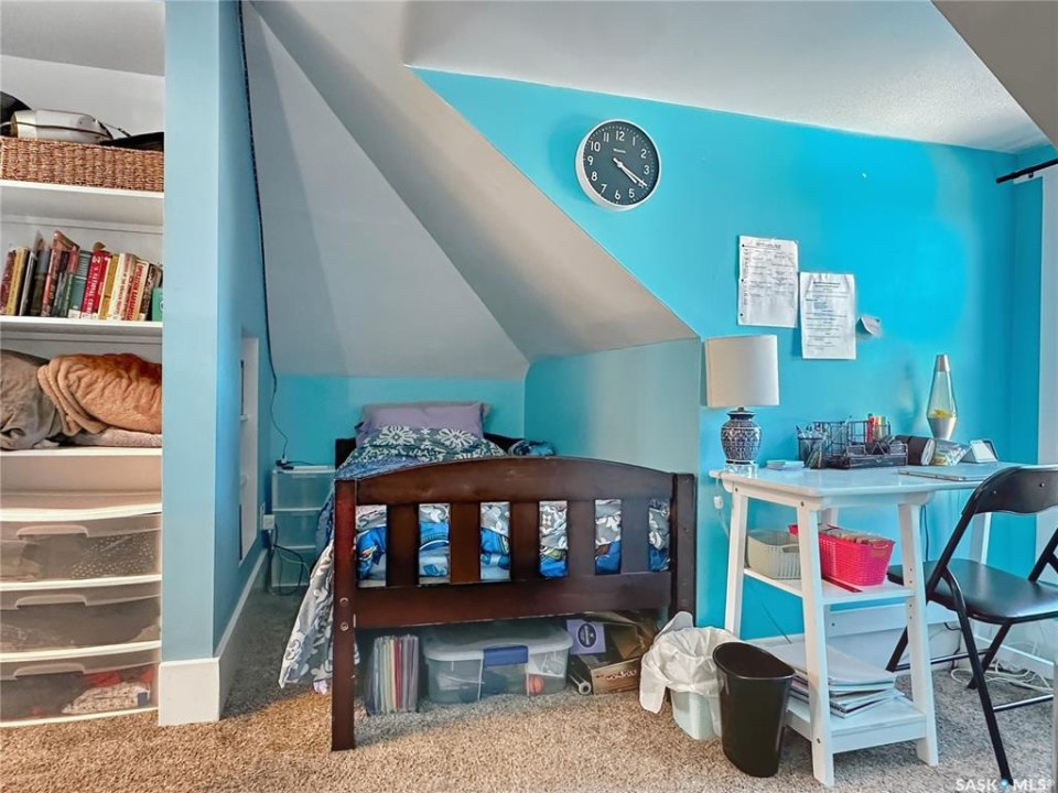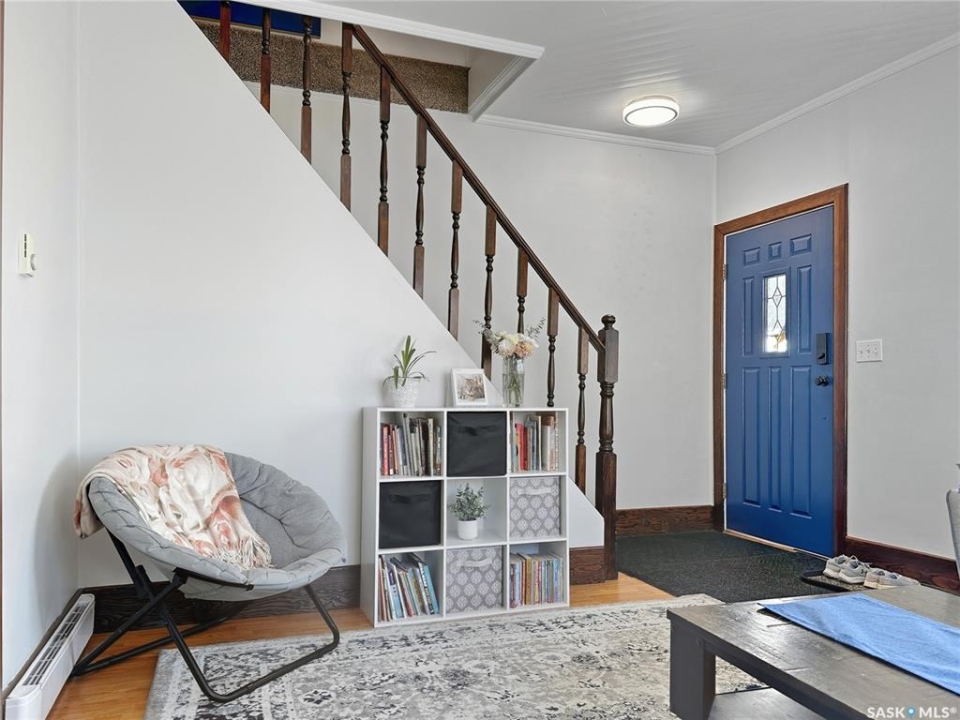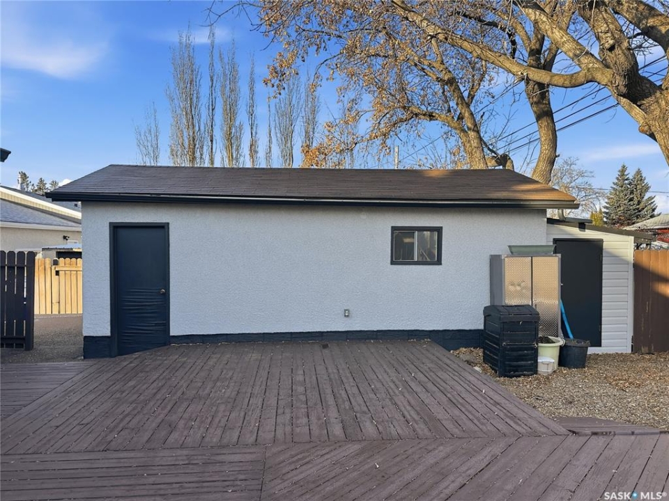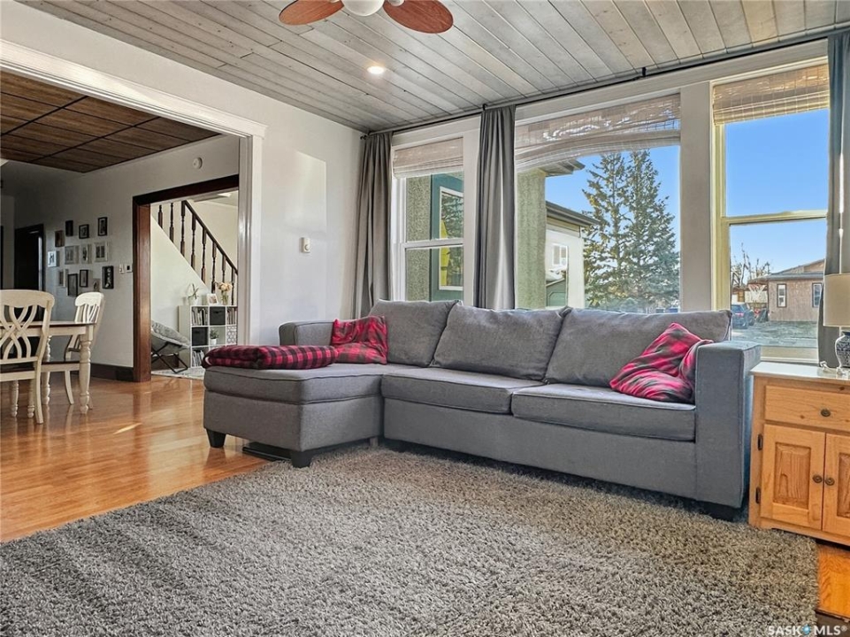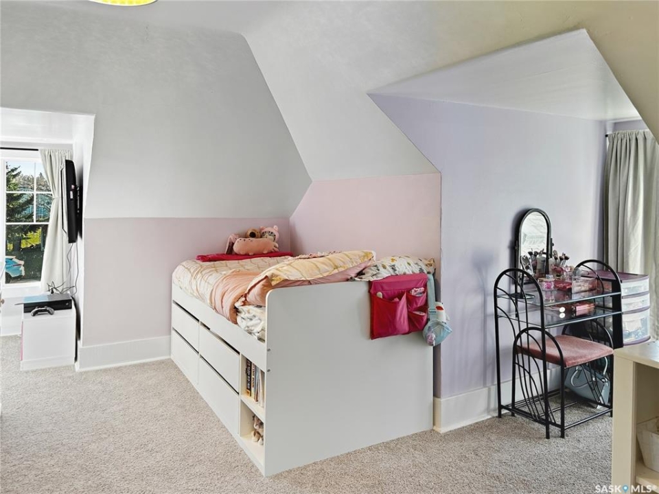 If these walls could talk… built in 1912, this solid and well-maintained home has countless stories to tell and all the character you've been searching for. Located in the beautiful Town of Battleford, this property blends timeless charm with thoughtful updates. Step inside and feel the warmth right away. The spacious layout features large entryways connecting each room, with natural light pouring through the updated windows. A stunning solid wood banister greets you at the front door—a classic hallmark of homes from this era. The living room is welcoming and flows seamlessly into the large dining area, perfect for hosting family and friends. Adjacent to the dining room is a cozy family room that was completely redone—taken down to the studs with new insulation, lighting, and a feature wall showcasing an electric fireplace set in the original brick surround. The kitchen offers excellent storage with an island, pantry, and plenty of cabinetry. Off the back door, you'll find a spacious mudroom ideal for winter gear and everyday use. The primary bedroom is conveniently located on the main floor, right next to the laundry area and a beautifully renovated 4-piece bathroom with quality finishes. Upstairs are two unique bedrooms, full of character and charm—each with cozy nooks perfect for reading or play. The partial basement is great for storage and houses the updated furnace, hot water heater, and electrical panel. Central air conditioning was just installed in 2025 for added comfort. Outside, enjoy a large deck for entertaining, a fenced yard with a play structure and garden shed, and a single detached garage with a brand-new overhead door. And after a long day's work, unwind on the quaint covered front porch—a perfect spot to relax and take in the peaceful surroundings. This one-of-a-kind Battleford home is filled with history, charm, and comfort—ready for its next story to begin. Call for your personal tour of this beautiful property today!