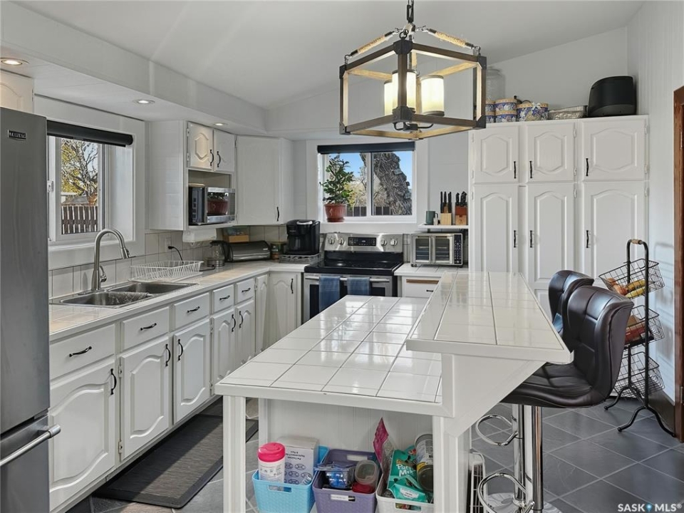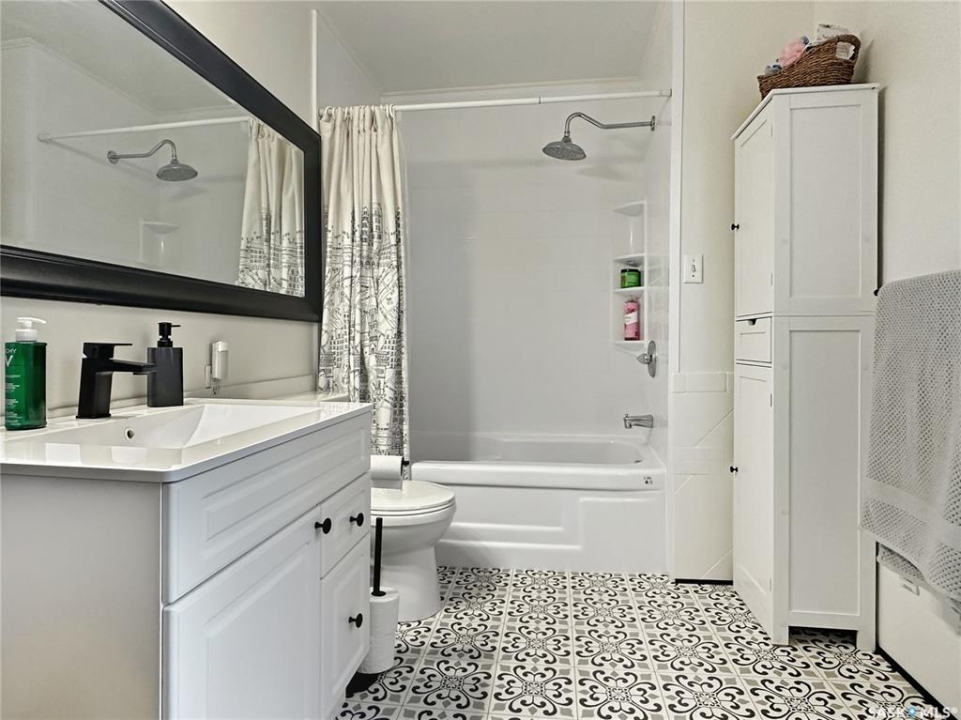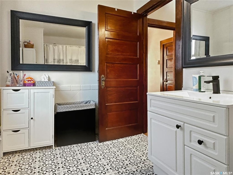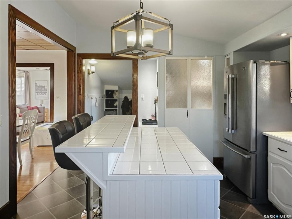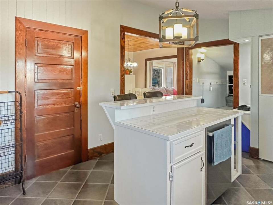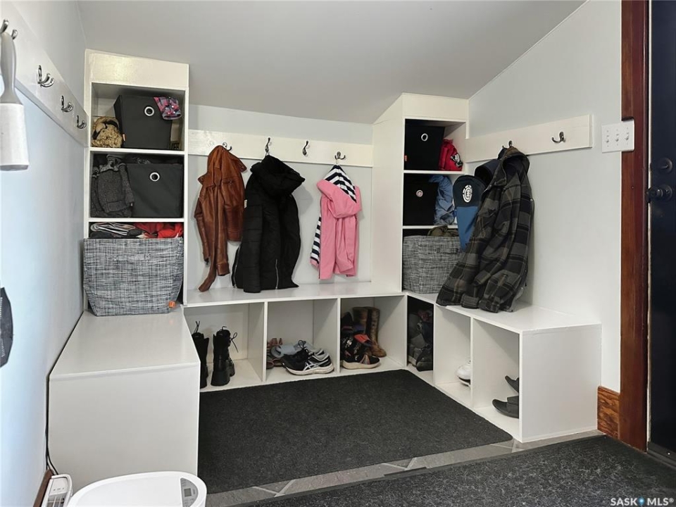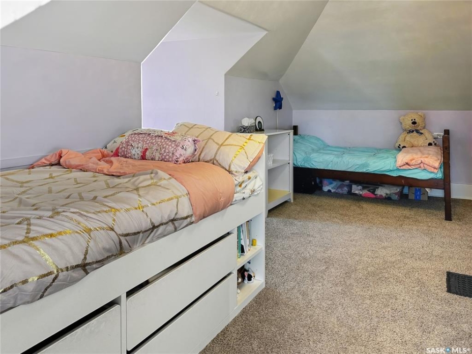 If these walls could talk… built in 1912, this solid and well-maintained home has countless stories to tell and all the character you've been searching for. Located in the beautiful Town of Battleford, this property blends timeless charm with thoughtful updates. Step inside and feel the warmth right away. The spacious layout features large entryways connecting each room, with natural light pouring through the updated windows. A stunning solid wood banister greets you at the front door—a classic hallmark of homes from this era. The living room is welcoming and flows seamlessly into the large dining area, perfect for hosting family and friends. Adjacent to the dining room is a cozy family room that was completely redone—taken down to the studs with new insulation, lighting, and a feature wall showcasing an electric fireplace set in the original brick surround. The kitchen offers excellent storage with an island, pantry, and plenty of cabinetry. Off the back door, you'll find a spacious mudroom ideal for winter gear and everyday use. The primary bedroom is conveniently located on the main floor, right next to the laundry area and a beautifully renovated 4-piece bathroom with quality finishes. Upstairs are two unique bedrooms, full of character and charm—each with cozy nooks perfect for reading or play. The partial basement is great for storage and houses the updated furnace, hot water heater, and electrical panel. Central air conditioning was just installed in 2025 for added comfort. Outside, enjoy a large deck for entertaining, a fenced yard with a play structure and garden shed, and a single detached garage with a brand-new overhead door. And after a long day's work, unwind on the quaint covered front porch—a perfect spot to relax and take in the peaceful surroundings. This one-of-a-kind Battleford home is filled with history, charm, and comfort—ready for its next story to begin. Call for your personal tour of this beautiful property today!