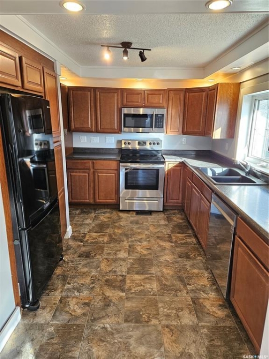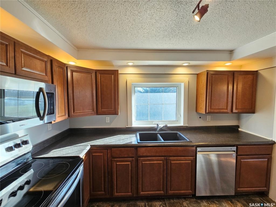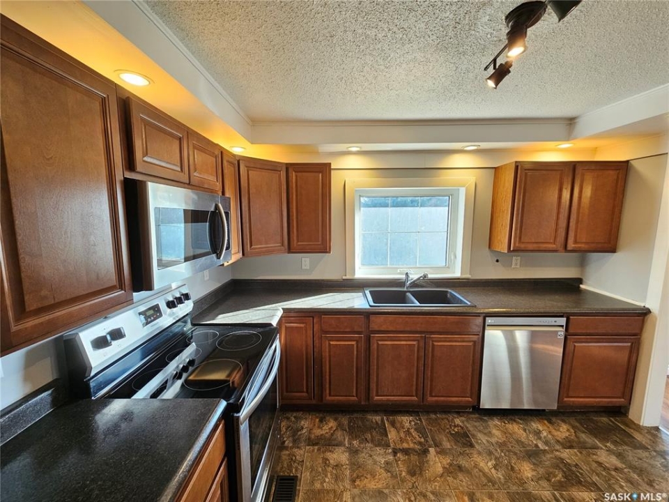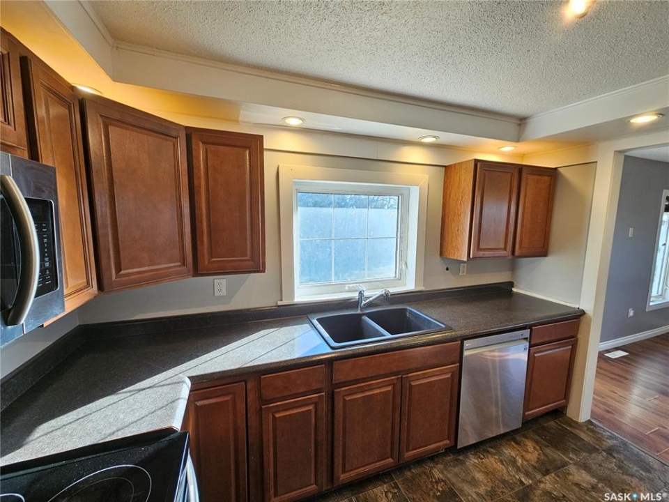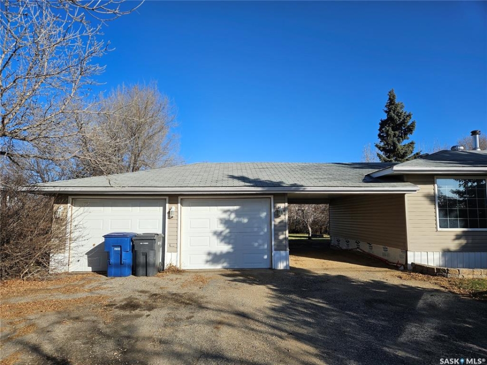 Affordable Updated Bungalow in Carlyle – Massive Treed Backyard & Heated Double Garage! 503 Souris Avenue E - CARLYLE – 785 SQ.FT. | 2 BED, 1 BATH | DOUBLE DETACHED HEATED GARAGE & CARPORT | LARGE LOT. Looking for affordable living in Carlyle? This charming updated bungalow sits on a large, private lot with a fully treed backyard, offering both comfort and privacy in a great location—just steps from the elementary school on a quiet street! The back entrance welcomes you into a bright L-shaped open-concept kitchen, dining, and living area. The kitchen has been tastefully updated with modern cabinets, black appliances, and plenty of counter space. The dining and living room feature large windows, laminate flooring, and a cozy wood-burning fireplace. Down the hall, you'll find two comfortable bedrooms and a refreshed 4-piece bathroom, both bedrooms with updated windows for added efficiency and light. The basement has been recently insulated and is ready for your finishing touches The utility room and laundry are also located in the basement. Enjoy your massive backyard with beautiful mature trees and plenty of room for kids, pets, or gardening. The property includes a double detached heated garage, plus a carport for extra covered parking. Located on the east side of Carlyle, less than a block from the elementary school and play grounds on a quiet, family-friendly street. Updates over the years: Electrical, plumbing, siding, shingles, windows, kitchen, bathroom, hot water heater, lighting, garage doors, and blown-in attic insulation. This property offers great value—affordable, updated, and move-in ready! Don't miss your chance to own a piece of Carlyle in a great location!