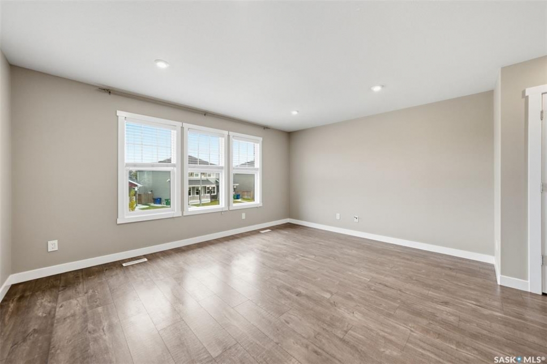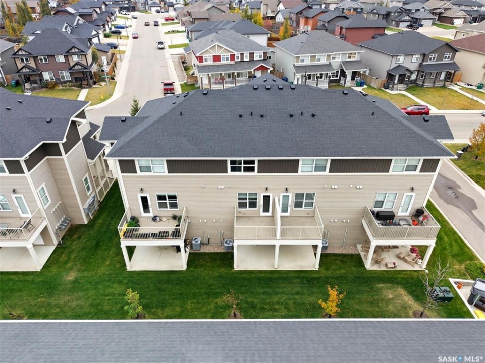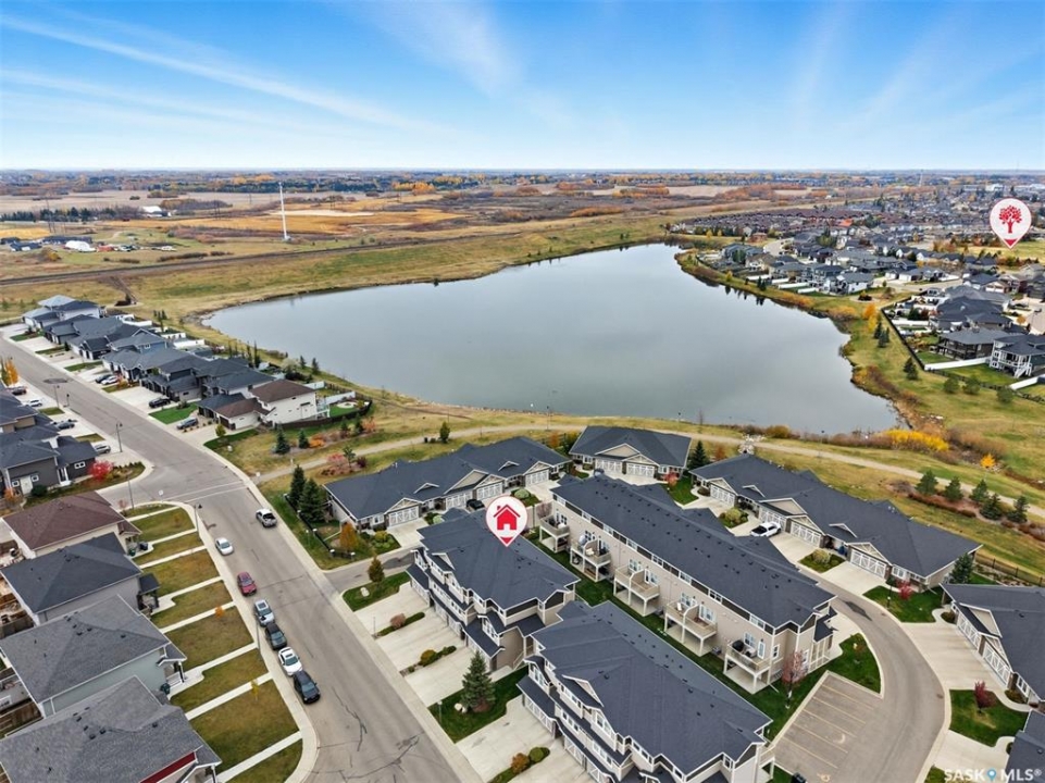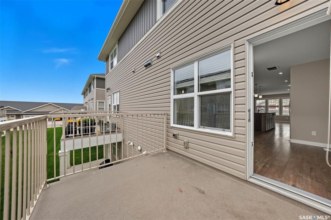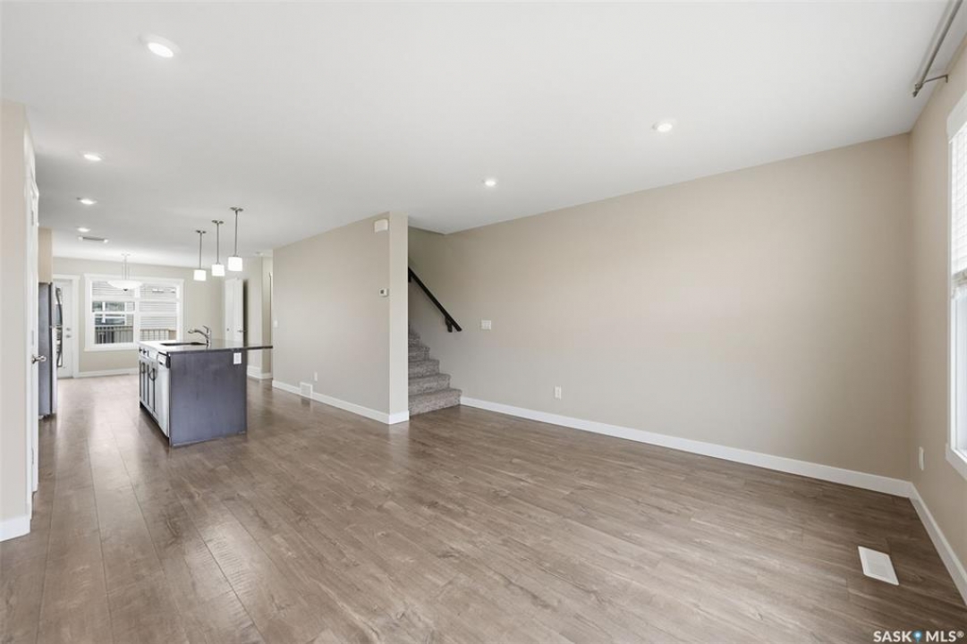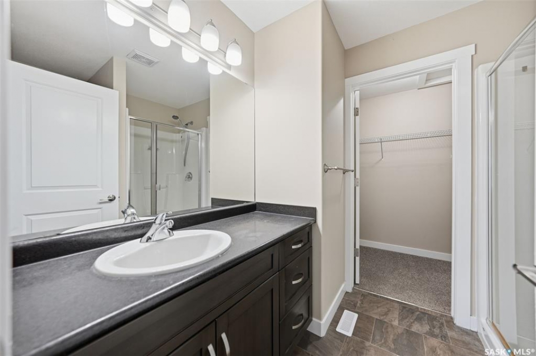 This townhouse in the Pinnacle complex offers a bright, open-concept main floor featuring laminate flooring and oversized windows providing lots of natural light. The central kitchen boasts stainless steel appliances, a large island with seating, and a walk-in pantry, all flowing seamlessly into the dining area with direct access to the back deck. A convenient powder room completes the main level. Upstairs, you'll find two generously sized bedrooms, each with its own ensuite bathroom and plenty of closet space. The upper floor also includes a dedicated laundry area with side-by-side washer and dryer for added convenience. The single tandem garage comfortably fits two vehicles and still provides room for storage or a workshop space. It also offers access to a covered back patio and the shared green space. Ideally located near parks, walking paths, schools, and all the amenities Stonebridge has to offer, this home is a must-see!