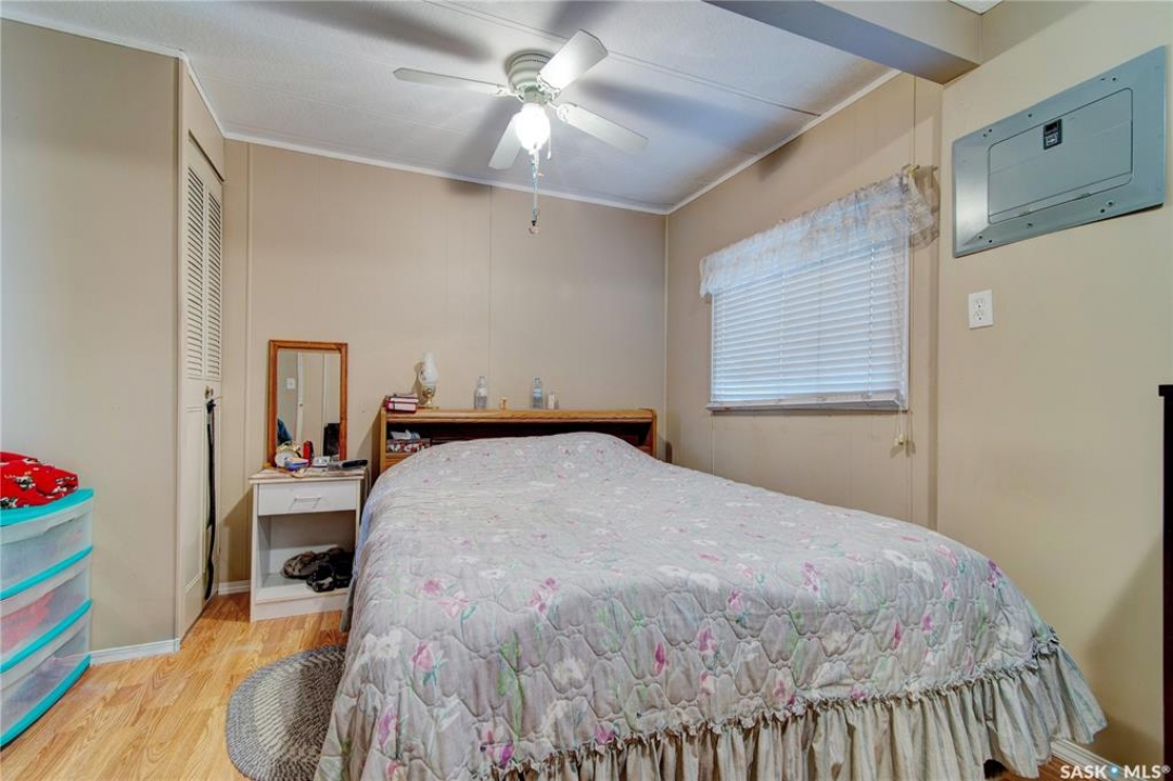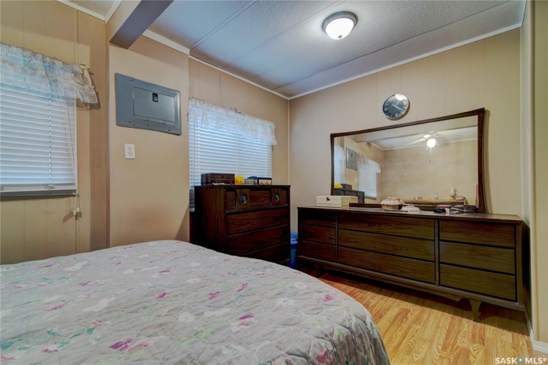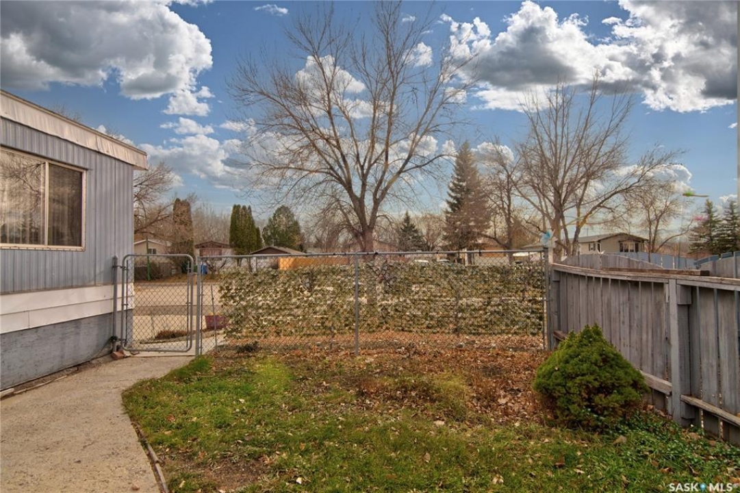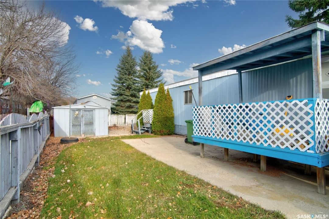 Checkout this affordable starter or retirement home in a quiet trailer park North of Regina. Location is close to all amenities. This property boasts a huge yard with a huge shed in the back, providing plenty of storage. Furnace is newer, but the central air is older - the seller says it works like a charm. Some renovations have taken place over the years and property appears solid and very clean. Move in condition! Seller is willing to leave some furniture behind. Quick possession is available. Master bedroom is quite large as the trailer was a 3 bedroom and could be converted back. This home could also be a revenue home. Property is priced to sell with a quick possession.