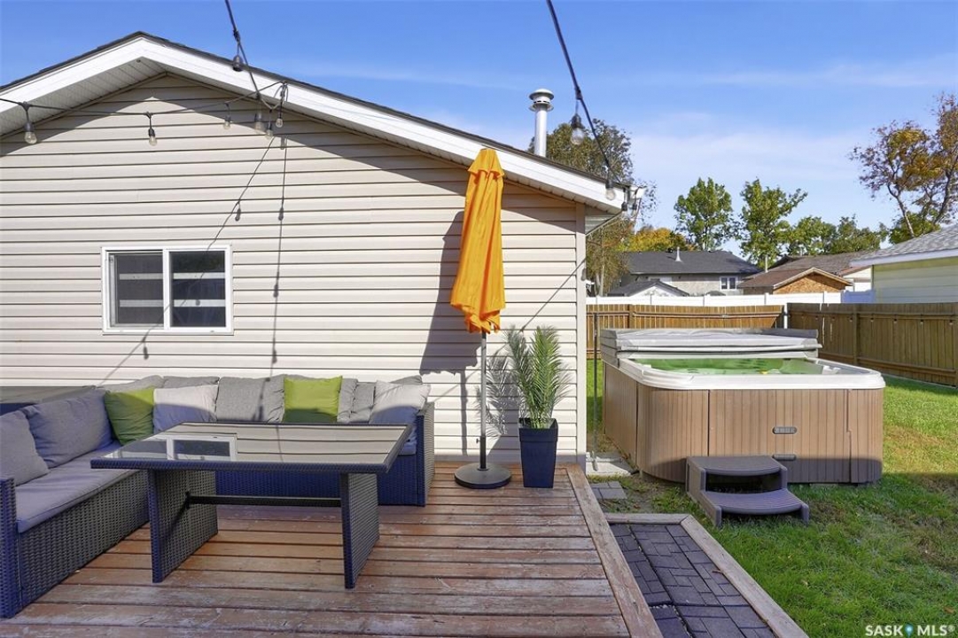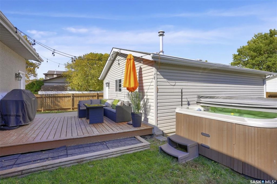Welcome to 50 Newstead Avenue! This exceptional family home is ready for its new owners. Ideally located in one of Regina's most sought-after neighbourhoods, Normanview West, this property is perfect for families and young professionals alike. Situated on a spacious corner lot, the home makes a beautiful first impression with its updated exterior, stamped concrete walkway, and ample parking. The fully fenced yard is perfect for kids and pets, featuring a large deck and adjacent hot tub, great for entertaining and plenty of lush green space to spread out. The rear fence opens to the alley for convenient access and storage. The double detached garage is a standout, heated and equipped with its own 60-amp panel, built-in shelving and a sturdy workbench, offering tons of room for projects and parking alike. Inside, the home is thoughtfully updated and decorated in modern, neutral tones. The bright family room is filled with natural light from a south-facing picture window. The kitchen offers generous cabinetry and counter space, a deep pantry, and a built-in eating bar ideal for casual dining or morning coffee. Down the hall, the main bathroom is fresh and functional with built-in storage. The primary bedroom features a trendy shiplap accent wall, built-in nightstands, and a large closet. Two additional bedrooms provide great square footage and ample closet space. The fully developed basement adds incredible living space. A striking fireplace feature wall sets the tone for cozy movie nights, while the adjoining rec area is perfect for a home gym, kids' play zone, or hobby space. The fourth bedroom is spacious with a large closet ideal for guests or teens, and is complemented by a stylish three-piece bathroom. A generous storage/laundry area completes this well-designed lower level. Value added items include: fridge, stove, washer, dryer, microwave, HE furnace, PVC windows, hot tub, heated garage, Central air, central vac, and more!