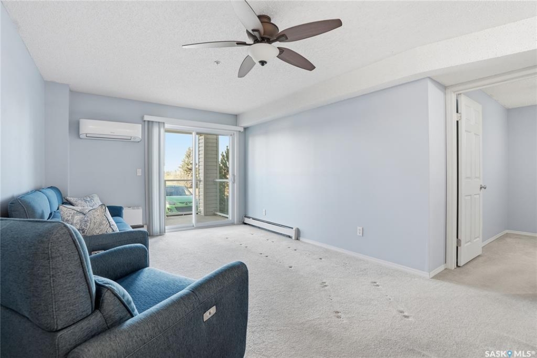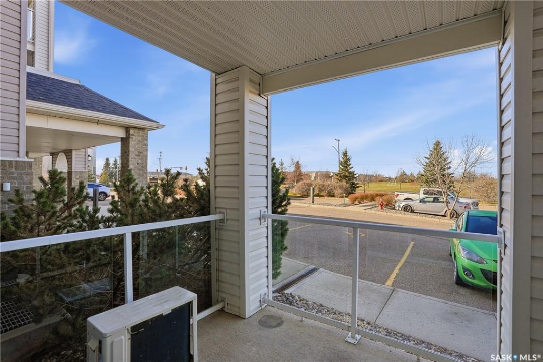 Welcome home to 303 Lowe Road unit 107. West facing views, underground parking, and a 1 + 1 configuration for a primary sized bedroom and large den - this condo shows 10/10! Step inside to find a bright main area with a kitchen that is clean and functional. Ample storage around with a custom built island that hosts drawers on either side! The living room features an updated Air Conditioner and is set for relaxing with plenty of natural light from the large patio doors. From here you have access to your own covered patio space. Inside you will find that the primary bedroom is a great size with room for a large bed and dresser. Opposite to this bedroom is a large den that could accommodate a bed and has an included closet system. The bathroom is a clean 4 piece design with laundry included. Located in University Heights you will find this to be one of the most walkable locations in Saskatoon! Steps to the bus stop and a short walk to grocery stores, restaurants, gyms, and walking paths through the Forestry Farm and the north swale. Amenities include an exercise room, elevator, and plenty of visitor parking. Well cared for and turn-key! Call today to see this exceptional home!