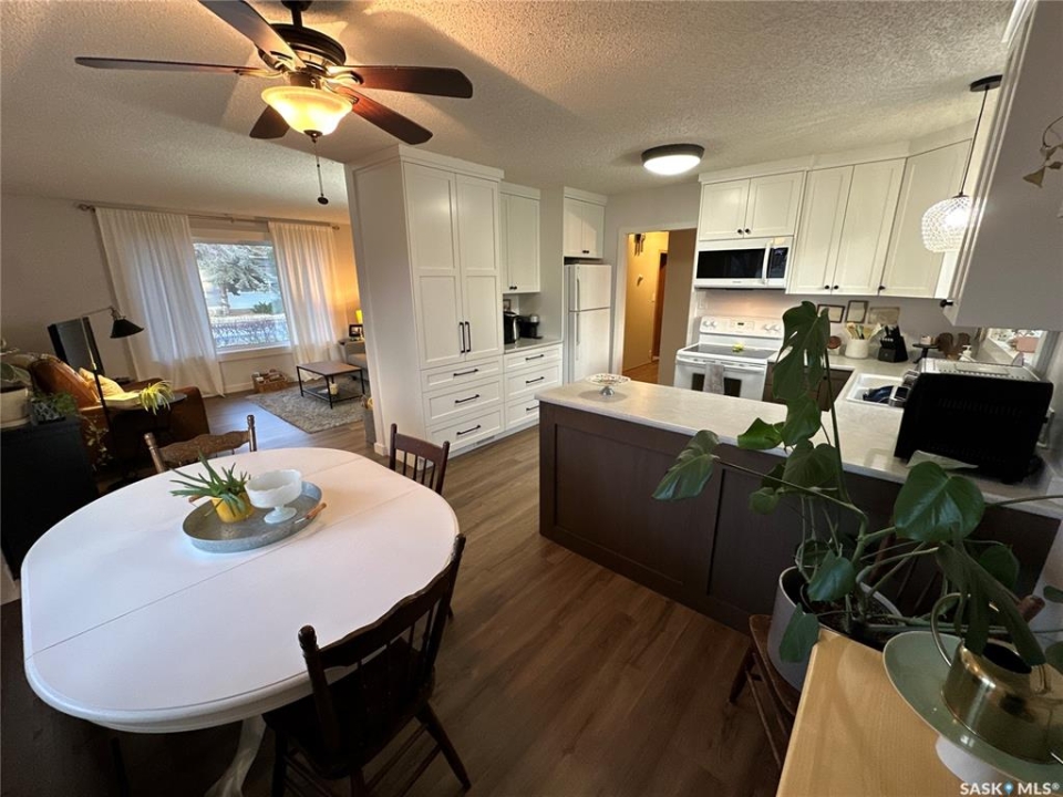 A baker's dream is how you describe this kitchen. Welcome to this 3 bedroom and 1 bath up and 1 bedroom & 1 bath down at 1019 8th Street in Rosthern. The basement also has a spacious family room, a storage room with room for your office, and a cold storage for your garden preserves. This cozy home sits on a 100' wide by 120' deep lot with lots of room to add a new garage. Treed and partially fenced yard with mature trees and shrubs with a two minute walk to downtown or the rink. In summer you are close to the park and the outdoor pool, the ice cream shop and groceries. New kitchen with dishwasher & microwave in 2021, new eavestrough in 2022, fresh exterior paint in 2023. New vinyl plank flooring in the main living area also in 2021! Lots of things to mention and even more to see! This spacious home would also make a great rental property.