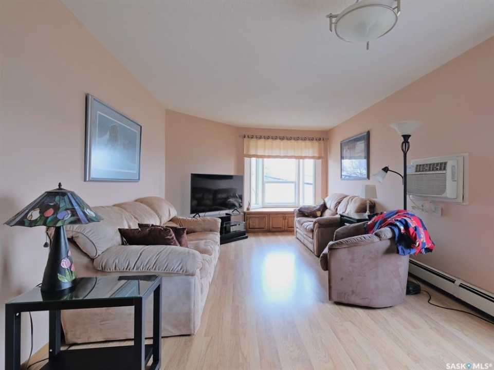 Welcome to this beautiful 1,355 sq. ft. condo that combines spacious living with urban convenience, ideally located just steps from downtown. This thoughtfully designed unit features two spacious bedrooms, each with ample closet space, and two full bathrooms, one being an en-suite in the primary bedroom that offers added comfort and privacy. The open-concept living and dining area flows seamlessly into a well-lit den, perfect for a home office, library, or creative space. The kitchen is both functional and inviting, offering plenty of counter space for cooking and entertaining. Just off the living area, a private balcony awaits, ideal for unwinding and enjoying the sights and sounds of Rosetown. Equipped with in-unit laundry and a wall-unit A/C, this condo is designed with convenience in mind. Secure underground parking adds peace of mind, while the location offers effortless access to shopping and dining, everything you need is right at your doorstep. Don't miss the opportunity to own this exceptional property in a prime downtown location. Schedule your viewing today and envision your life in this wonderful urban retreat.