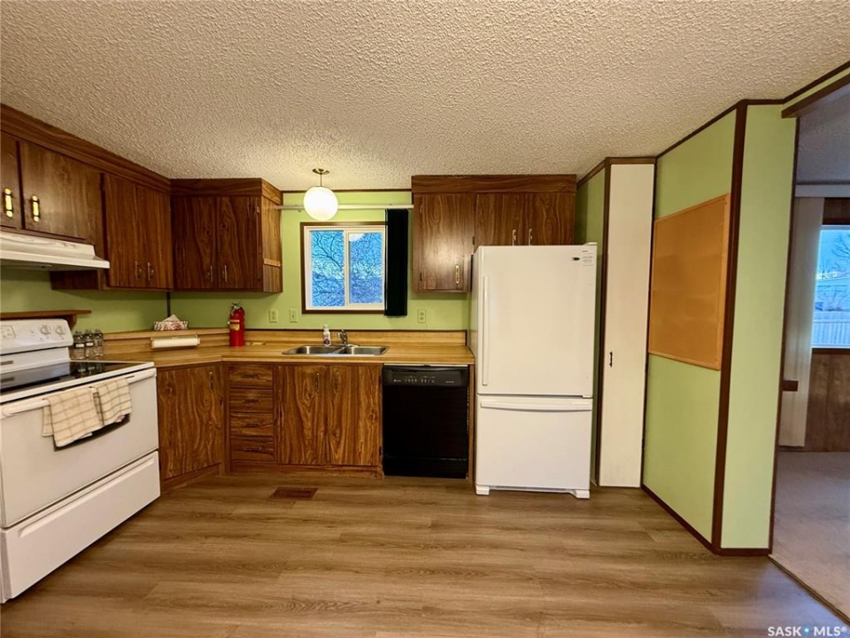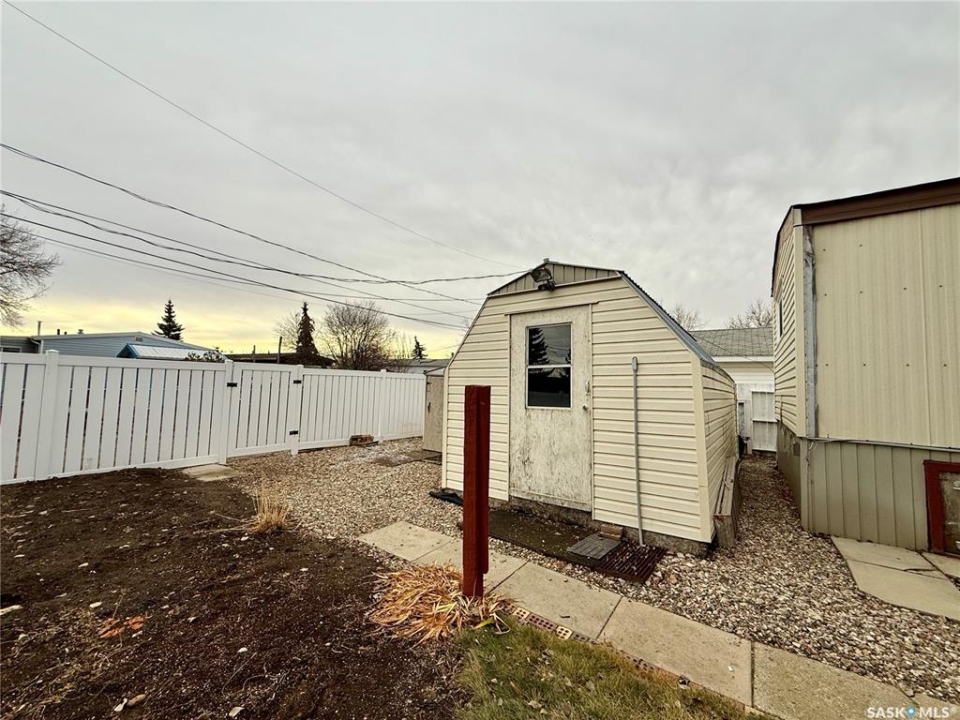 Welcome to #707 2nd Ave West! this 1008 sqft mobile home has been well maintained with 3 bedrooms and 2 bathrooms and dream garage with heated workshop area! Enter into the foyer of the home it is open to the living room. The living room is a great size with two large windows to let in natural light. The kitchen and dining area are off the living room. Down the hall are two bedrooms and a 4-piece bath. The primary bedroom and 3-piece ensuite are at the front of the home. Updates to the home include: siding wiith foam insulation underneath, windows, carpet in the living room was replaced 1 year ago, vinyl plank flooring throughout the rest of the home in November 2025, water heater approximately 3 years old. The home has a commercial furnace and air conditioner. The heated garage is 20' x 38' with separate workshop room and includes some tools. The yard is fully fenced with vinyl fence and includes two sheds. The home has been professionally cleaned and is move in ready! Call to book your showing today!