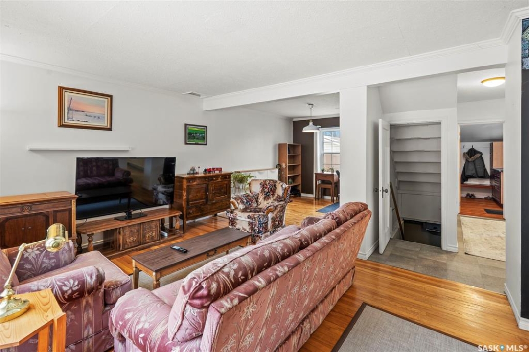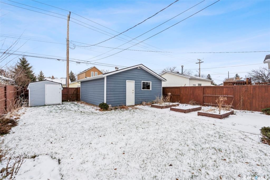 Nestled on a picturesque, tree-lined street in the heart of North Park, 1406 10th Ave North offers an idyllic urban lifestyle. Imagine being mere blocks from scenic river walks along the Meewasin Valley Trail and the Weir, with downtown convenience and the University of Saskatchewan just moments away. This location boasts unparalleled access to amenities, including a bus stop, and both public and Catholic/French immersion elementary schools within a two-block radius. This captivating 1.5 storey home has been lovingly updated, showcasing pride of ownership at every turn. Step inside to discover an open and inviting layout, bathed in natural light thanks to numerous large windows and complemented by fresh, airy paint tones. The home features beautifully maintained hardwood floors throughout, adding warmth and character. The charming kitchen is both functional and stylish, offering ample storage, open shelving, a breakfast island, and a natural gas range for the culinary enthusiast. Upstairs, you'll find two generously sized bedrooms, each with large windows that flood the rooms with light. The master bedroom includes a walk-in closet, providing plenty of storage space. The basement, with its high ceilings, presents a blank canvas for future development, offering the potential for an additional bedroom or recreational space. Outside, enjoy a newly fenced backyard with a large patio, custom raised garden boxes, and a storage shed. This one won't last long! Contact your favourite real estate agent to view today!