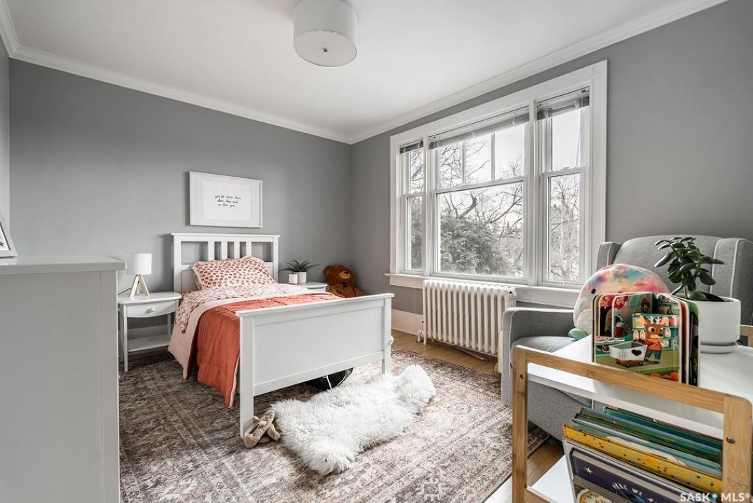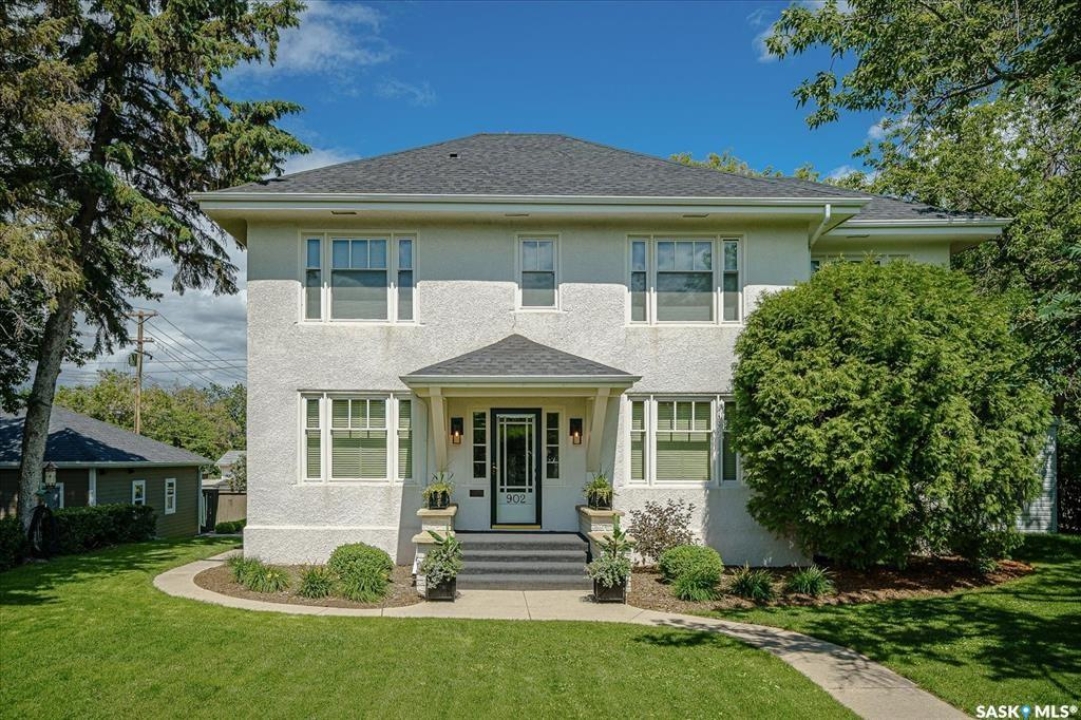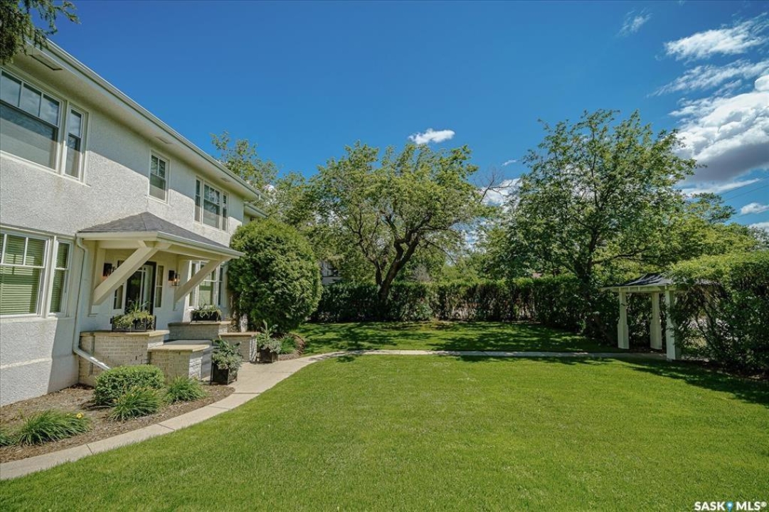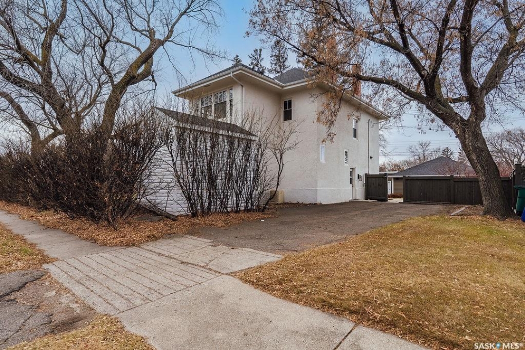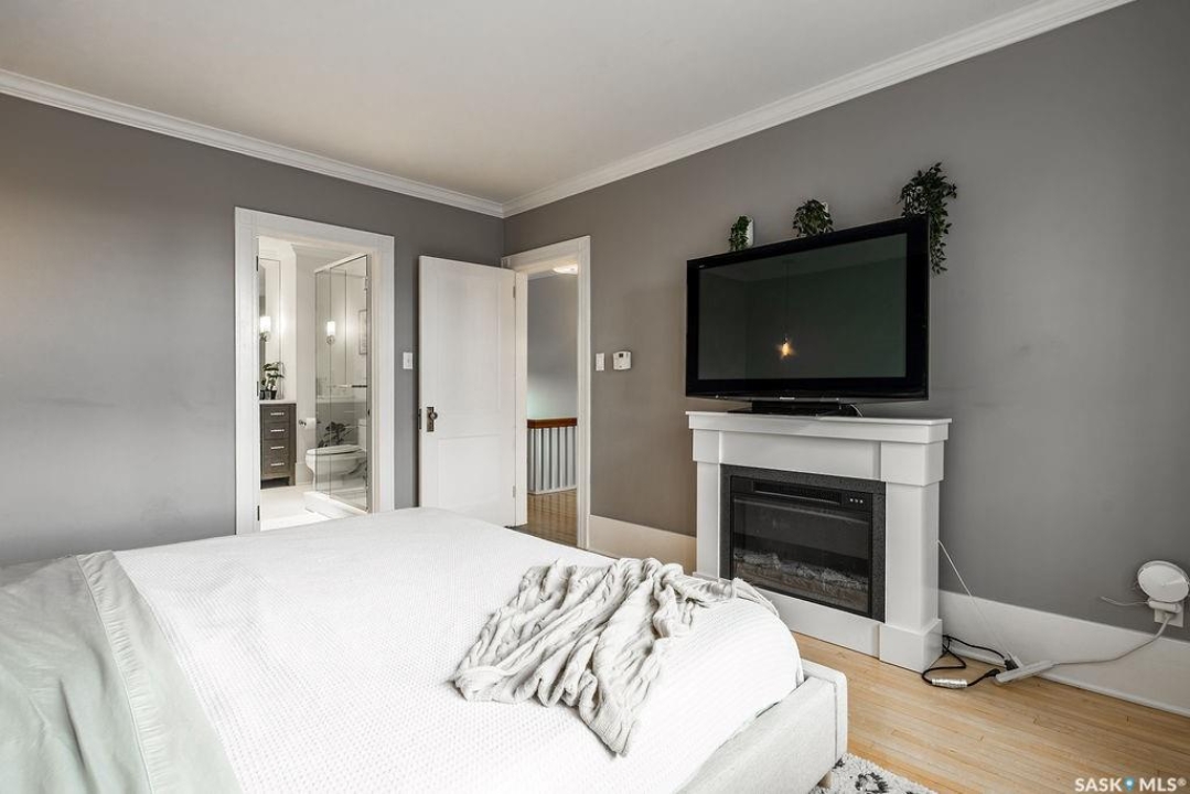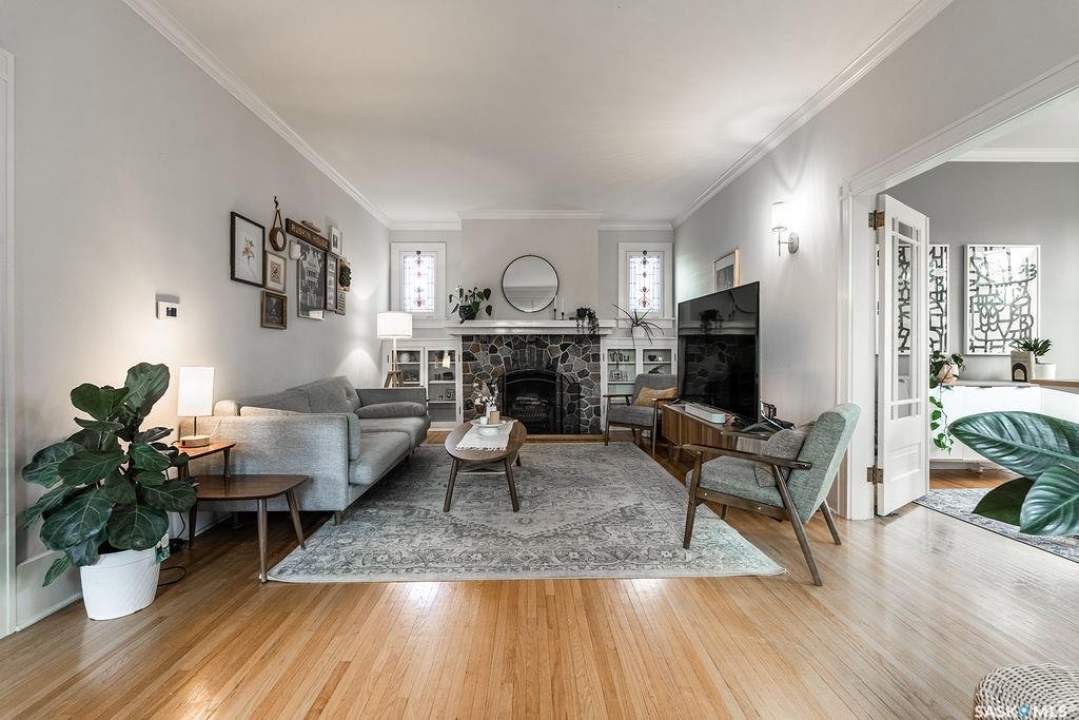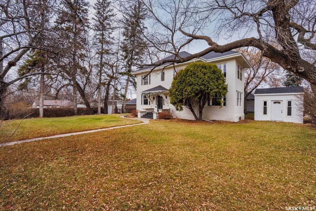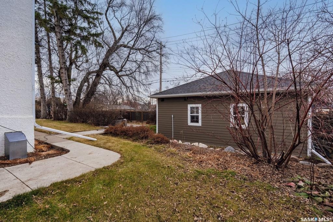 Like a private estate in the heart of the city, this beautifully updated 1,958 sqft two-storey captures your breathe from the moment you arrive. This huge lot has great street appeal with a 10ft hedge that surrounds the property. Step inside to a beautiful foyer that showcases the charming staircase. To the left of the foyer is a formal dining space and an updated modern kitchen with stainless steel appliances, gas range, built-in microwave and plenty of cabinetry. On the other side of the foyer there is a large living room with a wood burning fireplace, built-in cabinetry and two stained glass windows. A pair of french doors leads you into the bright sun-filled office. Upstairs, the primary bedroom features an electric fireplace and leads to a modern 3-pc ensuite with a walk-in tiled shower, and large walk-in closet. There are two more bedrooms and another 3-pc bathroom with a standalone soaker tub. Through one of the bedrooms is a bonus room with 2 walls of windows and tons of natural light, perfect for an office, another bedroom, sunroom or gym.. Downstairs, the fully finished basement has a spacious family room with an electric fireplace, another bedroom, a 3-pc bathroom, extra storage and a laundry room with a sink. The entire home has the perfect balance of original character details and modern updates. The yard leaves you wanting for nothing except more time outside with a firepit area, garden area, two large sheds, and tons of privacy. An oversized double detached garage with heated floors makes for easy convenience in the winters. There is also a long paved driveway perfect for RV parking. This private estate-style home is unique and impressive. Schedule your showing today!