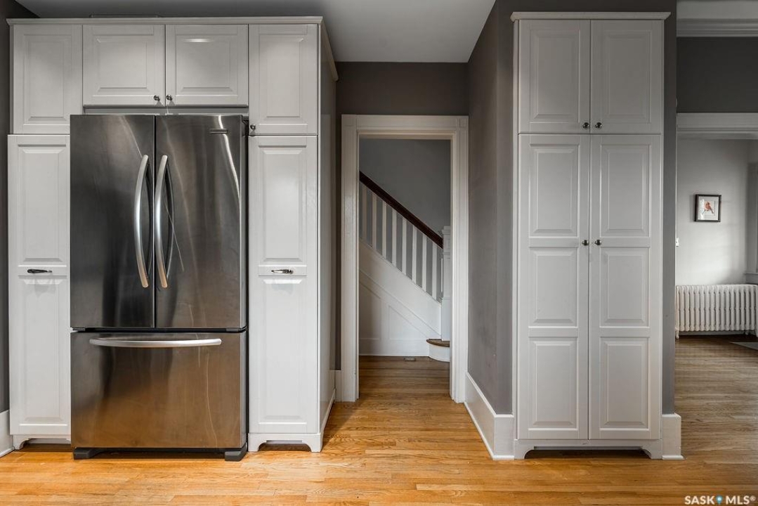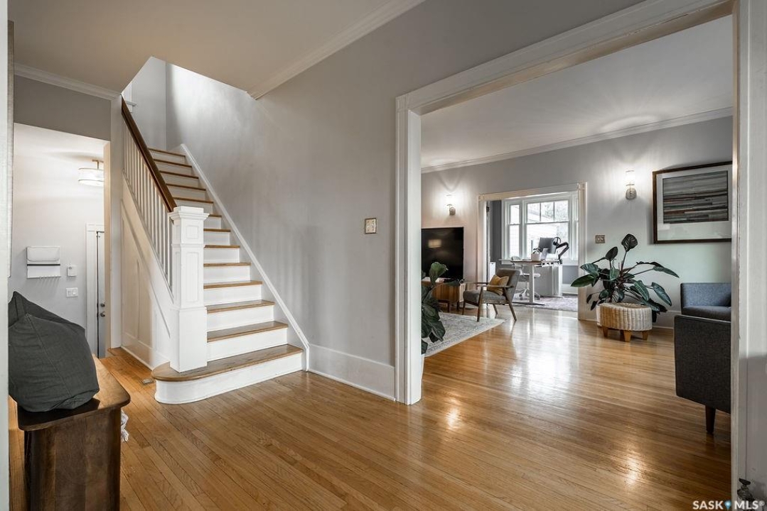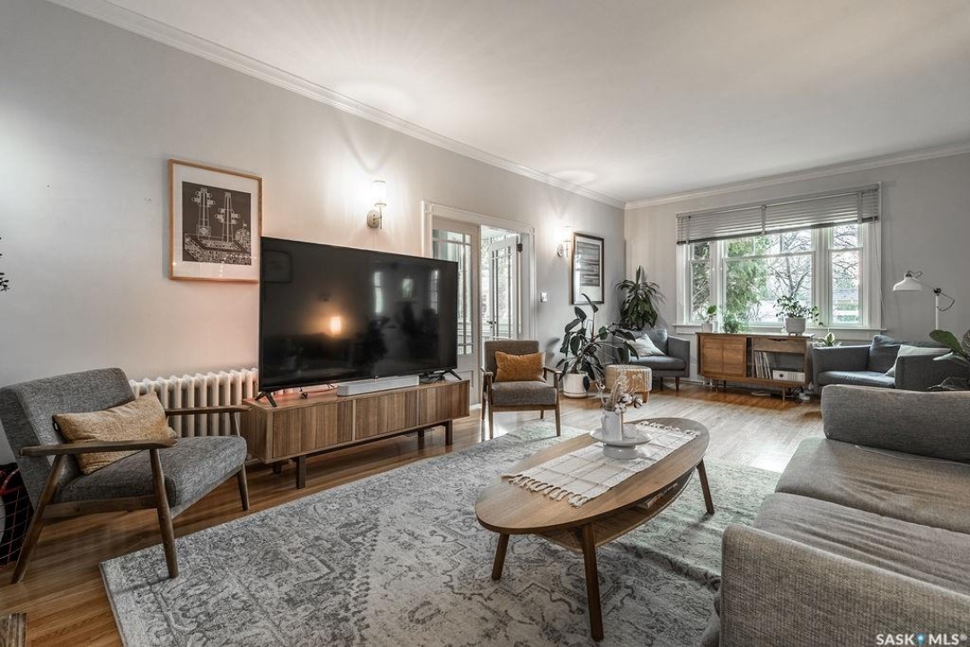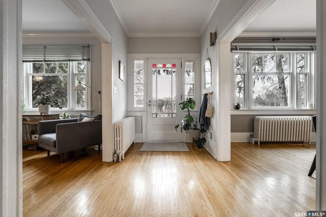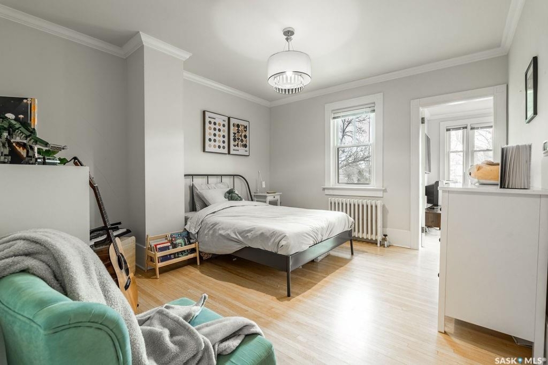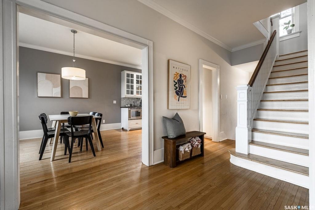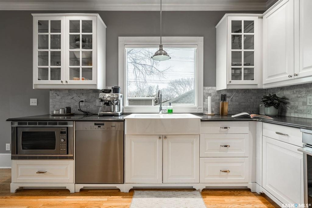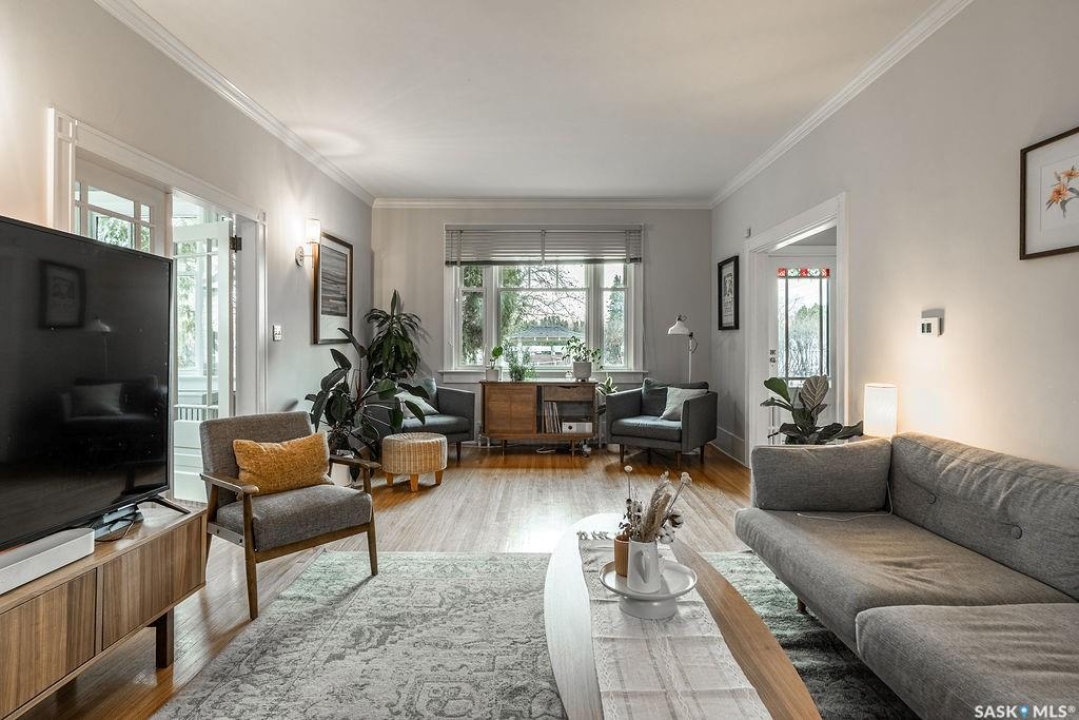 Like a private estate in the heart of the city, this beautifully updated 1,958 sqft two-storey captures your breathe from the moment you arrive. This huge lot has great street appeal with a 10ft hedge that surrounds the property. Step inside to a beautiful foyer that showcases the charming staircase. To the left of the foyer is a formal dining space and an updated modern kitchen with stainless steel appliances, gas range, built-in microwave and plenty of cabinetry. On the other side of the foyer there is a large living room with a wood burning fireplace, built-in cabinetry and two stained glass windows. A pair of french doors leads you into the bright sun-filled office. Upstairs, the primary bedroom features an electric fireplace and leads to a modern 3-pc ensuite with a walk-in tiled shower, and large walk-in closet. There are two more bedrooms and another 3-pc bathroom with a standalone soaker tub. Through one of the bedrooms is a bonus room with 2 walls of windows and tons of natural light, perfect for an office, another bedroom, sunroom or gym.. Downstairs, the fully finished basement has a spacious family room with an electric fireplace, another bedroom, a 3-pc bathroom, extra storage and a laundry room with a sink. The entire home has the perfect balance of original character details and modern updates. The yard leaves you wanting for nothing except more time outside with a firepit area, garden area, two large sheds, and tons of privacy. An oversized double detached garage with heated floors makes for easy convenience in the winters. There is also a long paved driveway perfect for RV parking. This private estate-style home is unique and impressive. Schedule your showing today!