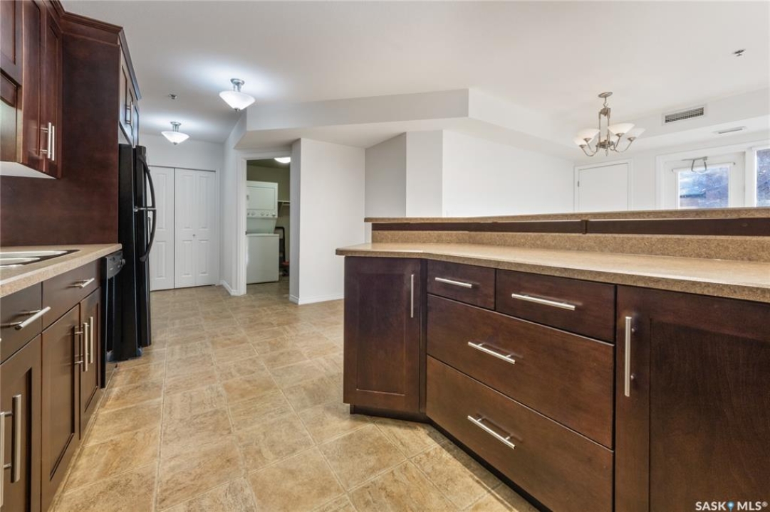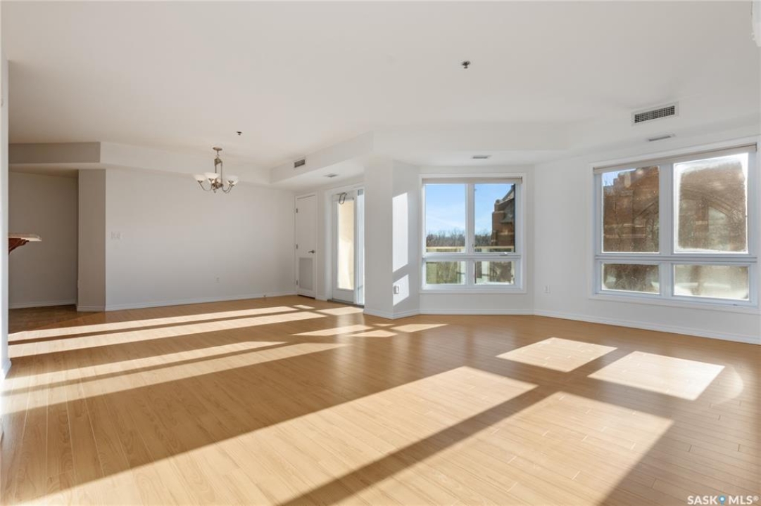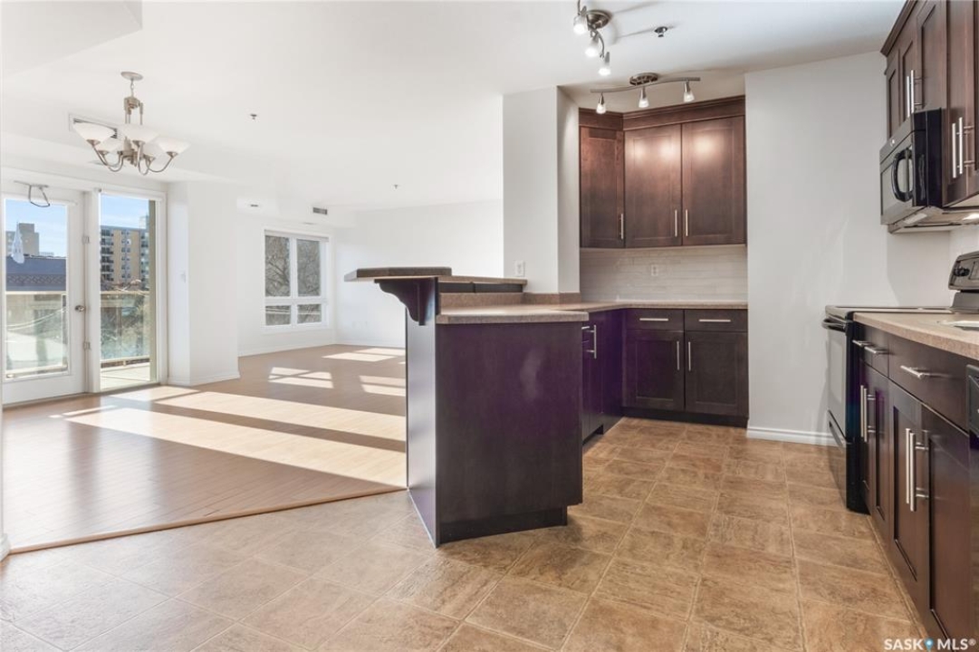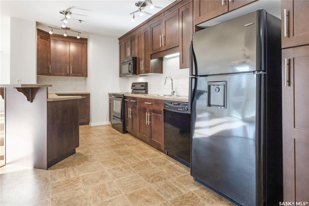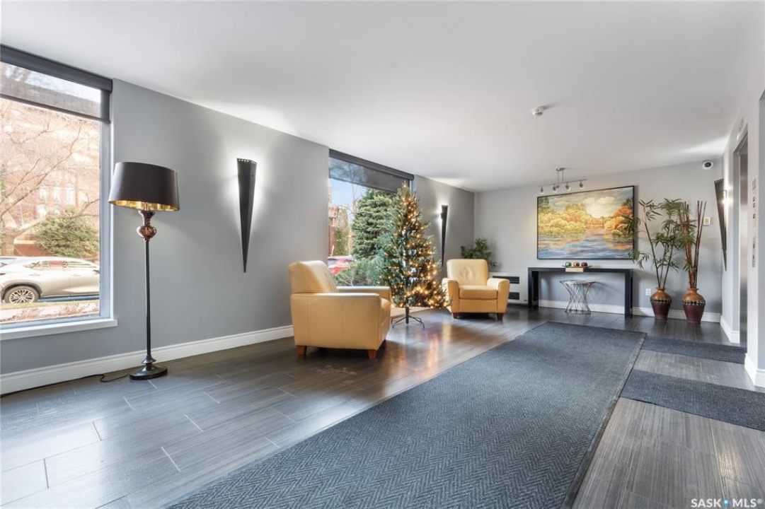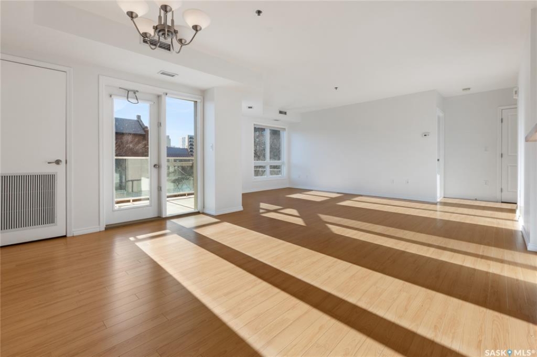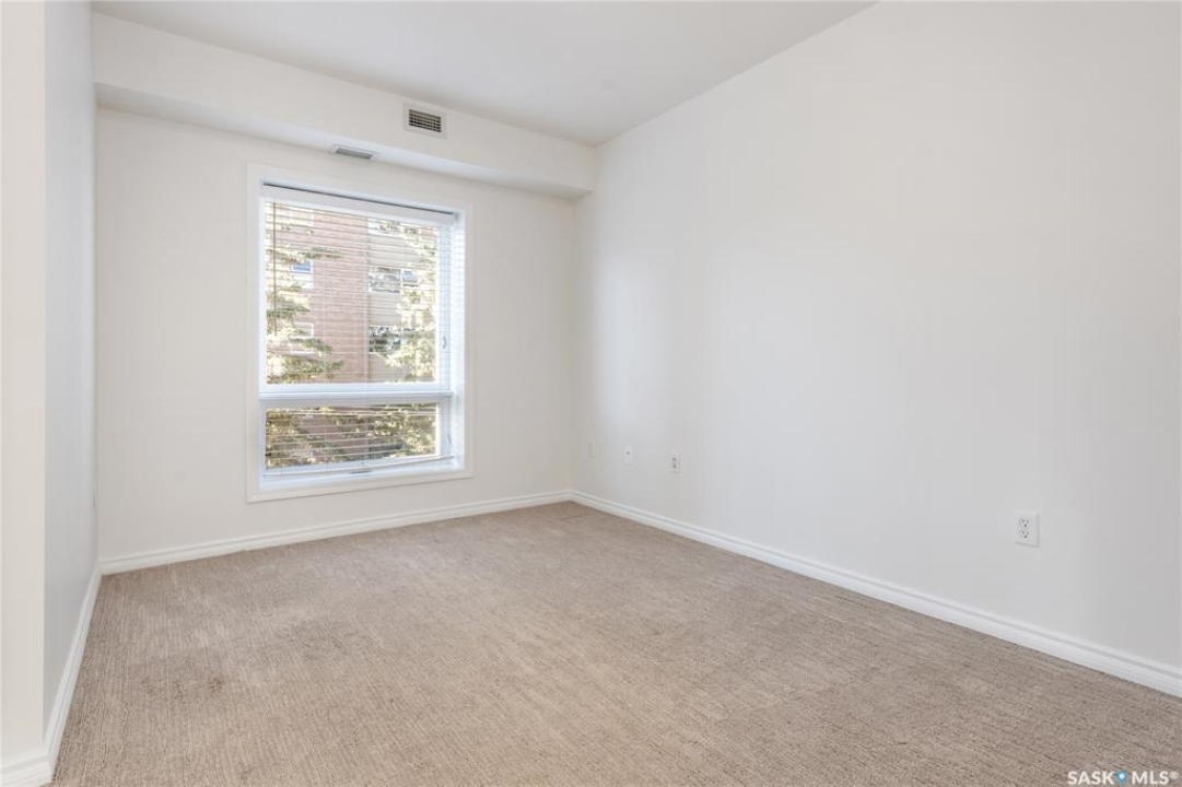 Welcome to Riverfront Living on Spadina Crescent! #402 is the perfect blend of comfort, style, and just enough personality to make you smile the moment you walk in. This south-facing, sun-loving condo is flooded with natural light—so much, in fact, you might find yourself retiring the lamps until winter. The bright, open layout features 2 spacious bedrooms and 2 full bathrooms, giving you plenty of room for guests, hobbies, or that treadmill you swear you'll start using. The large kitchen comes equipped with a functional peninsula (great for cooking, snacking, or contemplating life), and now features a brand-new backsplash that looks straight out of a design show. The unit has been freshly painted in a warm off-white tone—because your walls should be as fresh as your future start here—and the upgraded custom blinds let you control the sunshine like an absolute boss. Step outside onto your private deck and enjoy views of Knox United Church, Kiwanis Memorial Park, and even a bit of the South Saskatchewan River. It's the perfect spot to enjoy morning coffee, evening wine, or quietly judge joggers for being more active than you. Practical perks include Individually controlled central air and furnace (your thermostat, your rules) and Updated blinds. Option for a second heated underground parking stall—because you can never have too many parking spots in Saskatchewan winters. You're also on the same floor as two guest suites, a recreation/amenities room, and an exercise room with washrooms, making hosting visitors or starting fitness habits extremely convenient. Each floor also includes easy garbage access, so taking out the trash feels less like a chore and more like a quick stroll. The Riverfront complex is known for its excellent security—from the front entrance to the parkade—giving you peace of mind so you can focus on enjoying the river valley lifestyle. Bright, stylish, secure, and a little bit witty—Unit #402 might just be the best decision you make this year.