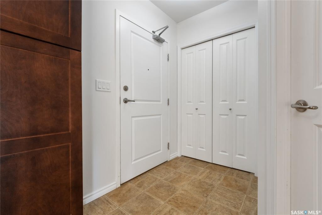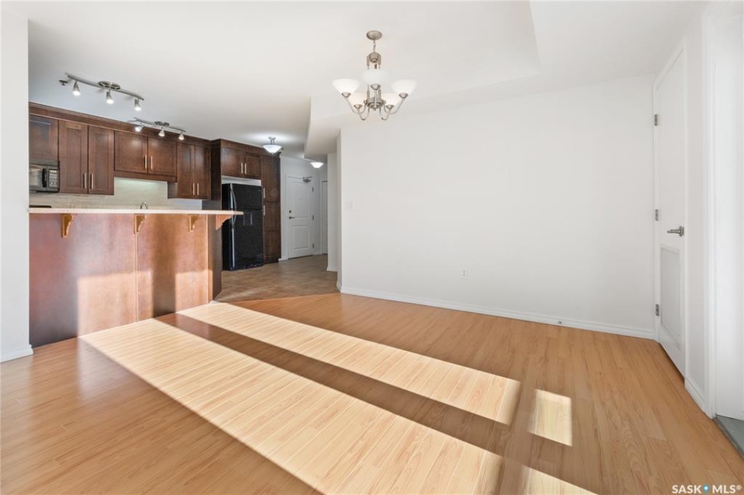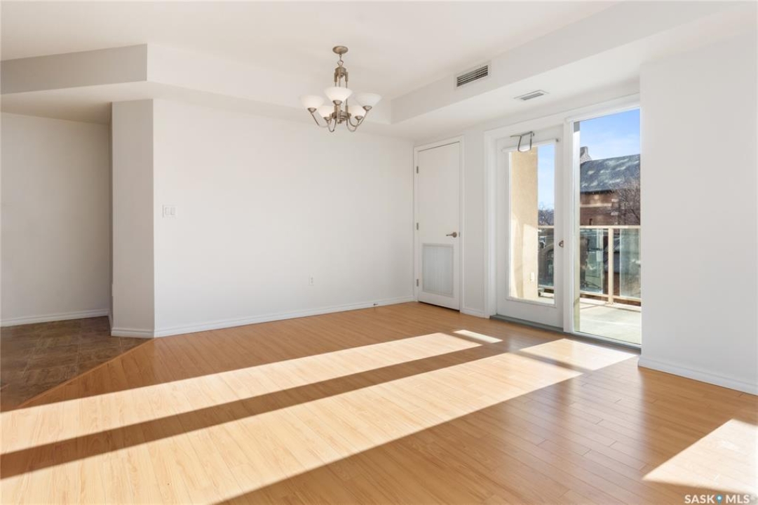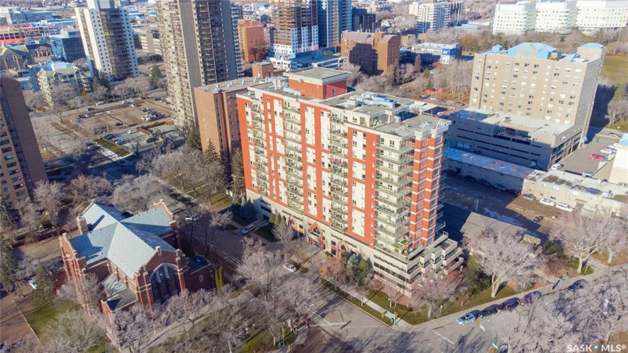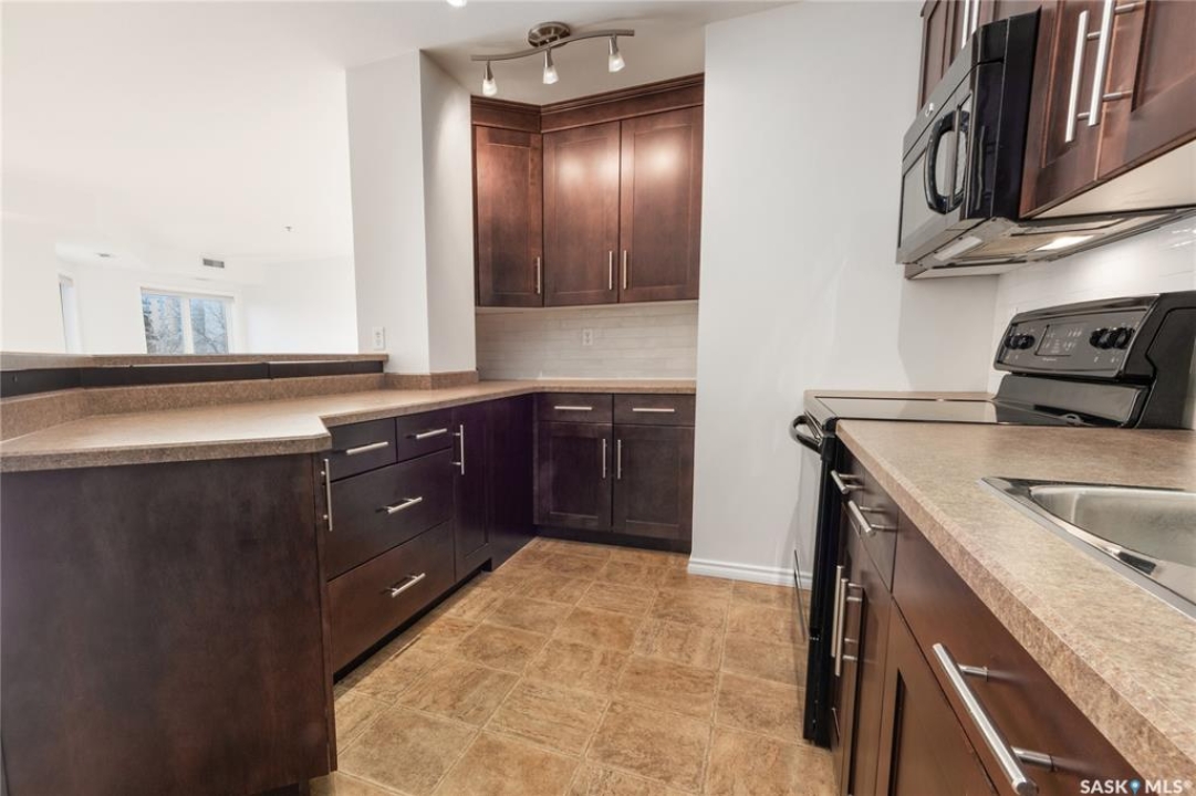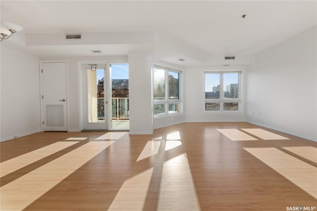 Welcome to Riverfront Living on Spadina Crescent! #402 is the perfect blend of comfort, style, and just enough personality to make you smile the moment you walk in. This south-facing, sun-loving condo is flooded with natural light—so much, in fact, you might find yourself retiring the lamps until winter. The bright, open layout features 2 spacious bedrooms and 2 full bathrooms, giving you plenty of room for guests, hobbies, or that treadmill you swear you'll start using. The large kitchen comes equipped with a functional peninsula (great for cooking, snacking, or contemplating life), and now features a brand-new backsplash that looks straight out of a design show. The unit has been freshly painted in a warm off-white tone—because your walls should be as fresh as your future start here—and the upgraded custom blinds let you control the sunshine like an absolute boss. Step outside onto your private deck and enjoy views of Knox United Church, Kiwanis Memorial Park, and even a bit of the South Saskatchewan River. It's the perfect spot to enjoy morning coffee, evening wine, or quietly judge joggers for being more active than you. Practical perks include Individually controlled central air and furnace (your thermostat, your rules) and Updated blinds. Option for a second heated underground parking stall—because you can never have too many parking spots in Saskatchewan winters. You're also on the same floor as two guest suites, a recreation/amenities room, and an exercise room with washrooms, making hosting visitors or starting fitness habits extremely convenient. Each floor also includes easy garbage access, so taking out the trash feels less like a chore and more like a quick stroll. The Riverfront complex is known for its excellent security—from the front entrance to the parkade—giving you peace of mind so you can focus on enjoying the river valley lifestyle. Bright, stylish, secure, and a little bit witty—Unit #402 might just be the best decision you make this year.