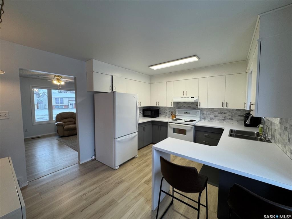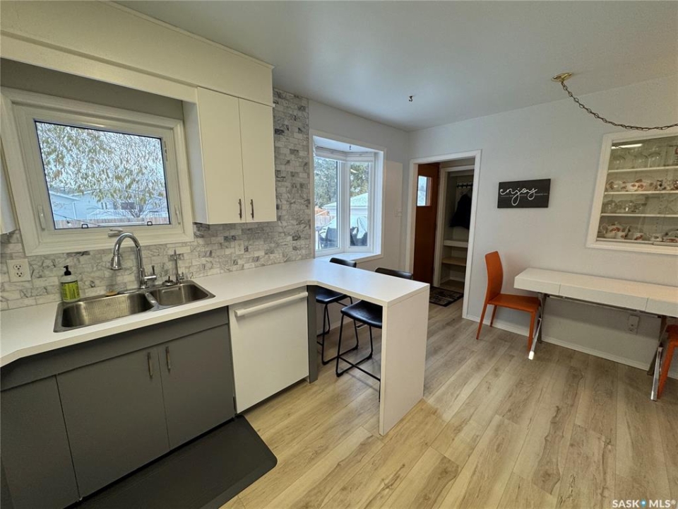 This well-cared-for 3-bedroom home offers comfort, thoughtful updates, and a yard that's ready for year-round enjoyment—all in a great neighbourhood. The main floor features updated flooring and paint in mellow, welcoming tones that give the home a warm, cohesive flow. You'll love the beautifully remodeled kitchen/dining area, complete with an eating peninsula, gorgeous tile backsplash, and a bay window overlooking the backyard. The bright living room, two bedrooms—including one with built-in closet organizers—and the renovated 3-piece bathroom with a deep soaker tub and all-new finishings complete the main level. The basement provides even more living space with a rec/family room, a third bedroom, an area that's perfect for a home office, and the utility/laundry/furnace room which also includes the 3-piece bathroom. The home is also equipped with central air for added comfort. Outside, the 60' x 115' yard is fully fenced. Enjoy mature trees, front and back lawns, a garden area with strawberries and asparagus, a fire pit area, a built-in swing, and a handy storage shed. The backyard includes a large gate for easy access, and the front walkway and driveway are finished with a durable rubberized coating. Underground sprinklers in the front yard add to the convenience. Call to view today!