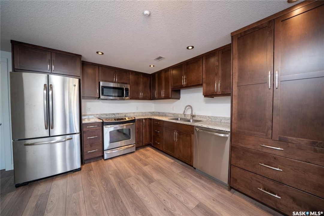 Discover the perfect blend of modern comfort and urban convenience in this stunning two-storey townhouse, ideally located in the heart of downtown, just steps from Wascana lake, General Hospital, restaurants, boutiques, groceries, and public transportation. This rare unit offers a private front deck and direct street access while also providing access to high-rise amenities, including a top-floor gym and a shared balcony with breathtaking city views. Inside, the main level features an open-concept living and dining area, a stylish kitchen with lots of cabinetry, and stone countertops. Upstairs, the master suite impresses with a wall of windows, a walk-through closet, and a private three-piece ensuite with standing shower, while the secondary bedroom offers stunning views. A second full bath and in-suite laundry add to the home's functionality. With direct entry from the heated parkade and convenient street parking, this townhouse combines luxury, style, and practicality for effortless downtown living. Don't miss out on this home! Book your viewing today!