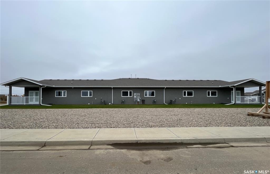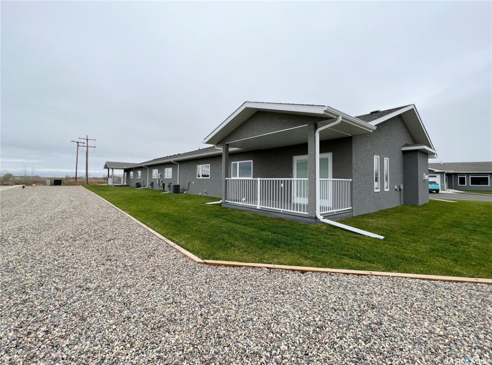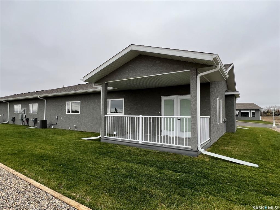 Enjoy the freedom of Northview Estates, built by Hirsch Construction! Upon entering this 2023 development you will notice the street appeal of the low maintenance stucco condos. Bungalow #10 is a stunning 1,846 sq foot condo that perfectly epitomizes modern living, all on one level. The interior offers high end designer finishes, lighting package, quartz counter tops, quality cabinets and flooring, all completed with care and craftsmanship. The 9 ft ceiling and large windows throughout the main floor give the desired bright open feeling one is looking for in a home. The kitchen, dining area, and living room areas are sunny, airy, yet comfortable and cozy with ample space for entertaining. Featured in the kitchen is a counter top gas cooktop with built in fan. A beautiful gas fireplace, framed with faux rock is situated in the living room. The primary bedroom retreat is large enough for a king bed & includes a walk in closet & the ensuite has a quartz top vanity and walk in shower. The 2nd bedroom could easily be used as an office. An added feature is a bonus room which could be used as a walk in pantry, office, or general storage. The 4 piece bathroom & main floor laundry complete this floor. This home has a low maintenance deck, with no hassle natural gas bbq hookup, perfect for enjoying the view with family and friends. Come home and park your vehicles in an insulated, heated, and drywalled, 36' x 26' TRIPLE car garage, safe from all the elements. Enjoy all that Northview Estates has to offer in one Estevan's newest neighbourhoods. Once condo fees are assessed, they will include all City of Estevan utilities, common area maint., snow removal, lawn care, and reserve fund. Items to note: HRV system, central vac plus attachments, Dual Low E Argon windows, central air conditioning, water softener, garburator, soundproof furnace room and interior doors, heated crawl space, underground sprinklers, visitor parking. New owner can build fence for a private backyard.