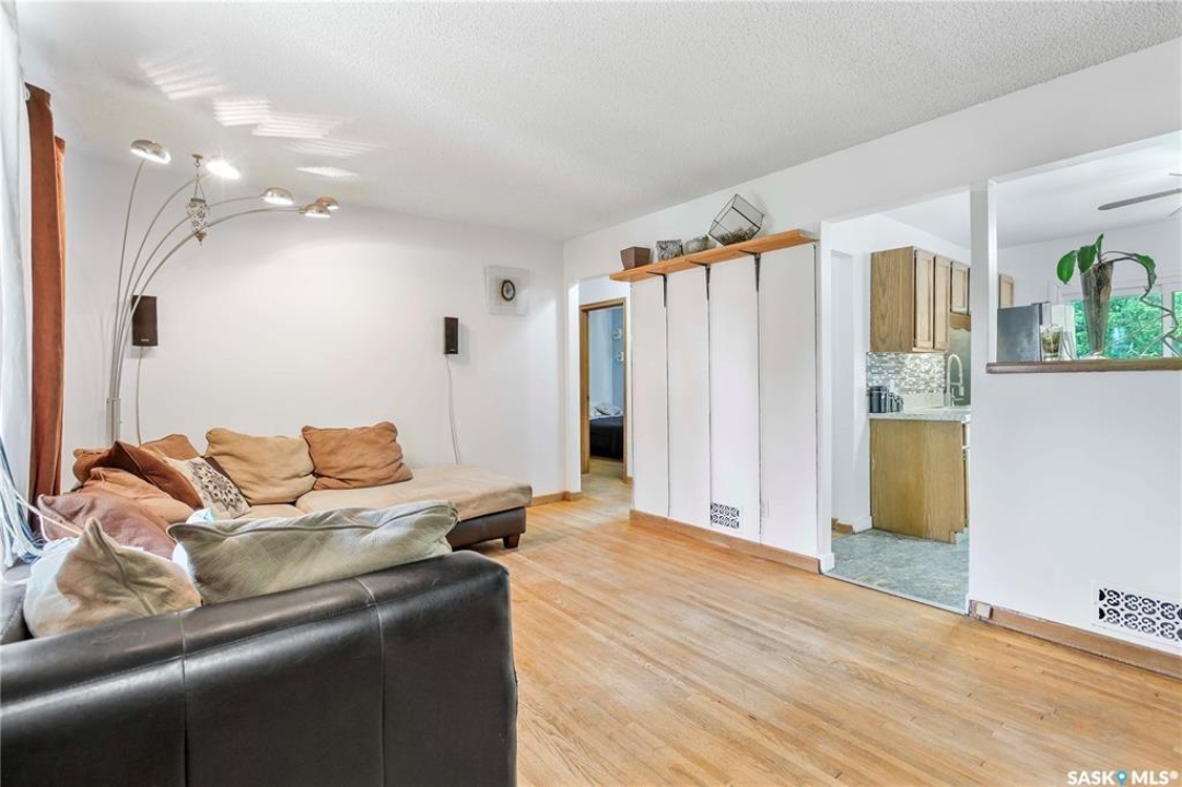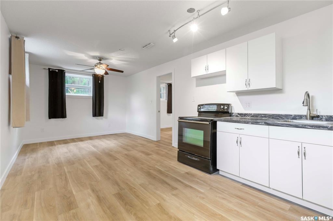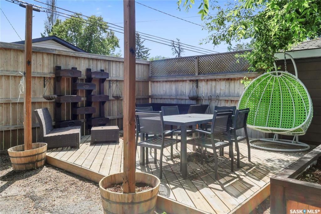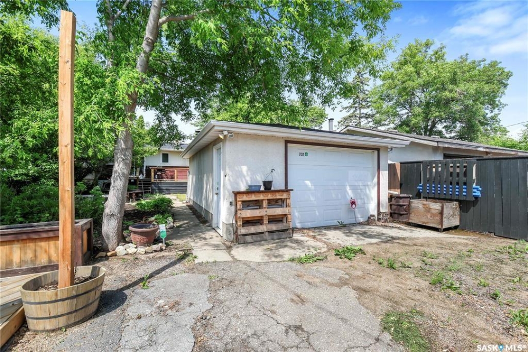 Welcome to 731 Retallack Street in Washington Park, close to restaurants, schools, parks, and shopping. This 1958 bungalow offers 3 bedrooms, 2 bathrooms, 768 sq ft, and a separate basement suite. The front porch leads into a bright west-facing living room with hardwood floors. The dine-in kitchen features plenty of cupboards, room for a table, stainless steel appliances (fridge, stove, microwave), and patio doors to the deck. Down the hall is a 4-piece bathroom with vinyl tile and updated fixtures, plus two good-sized bedrooms with hardwood and ample closets. The fully renovated basement is set up as an optional secondary suite with side entrance. It includes an open kitchen/dining and living area, the home's third bedroom (window egress may not meet current code), vinyl plank flooring, and a 4-piece bathroom. A shared laundry area (washer and dryer included) leads to the utility room with a high-efficiency furnace and 100-amp panel. The home sits on a large rectangular lot with a 16' x 24' insulated oversized single garage with gated lane access. The fenced, well-treed yard offers a large deck and patio, firepit area, lawn, garden space, and a rear sun deck great for entertaining. Additional features include central A/C, high-efficiency furnace, on-demand water heater, and all appliances up and down. Both the house and garage have been recently re-shingled. Some of the furniture may be negotiable. An ideal option for first-time buyers, investors, or anyone seeking a revenue property.