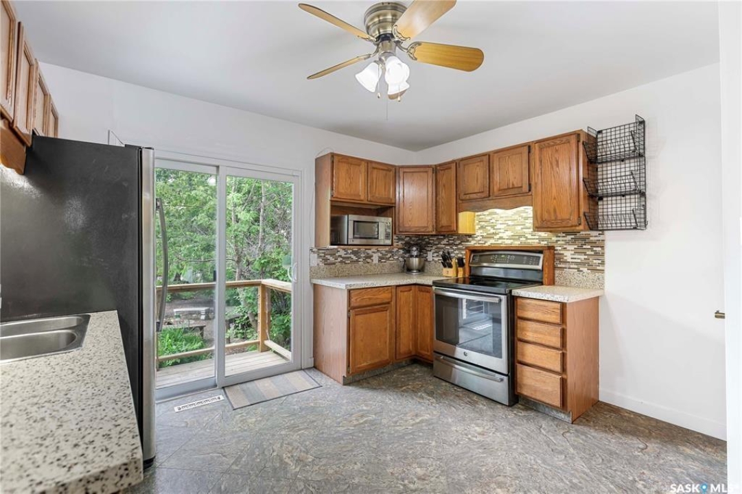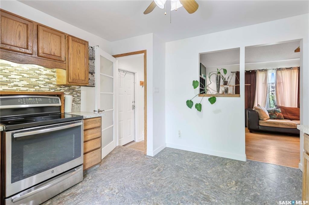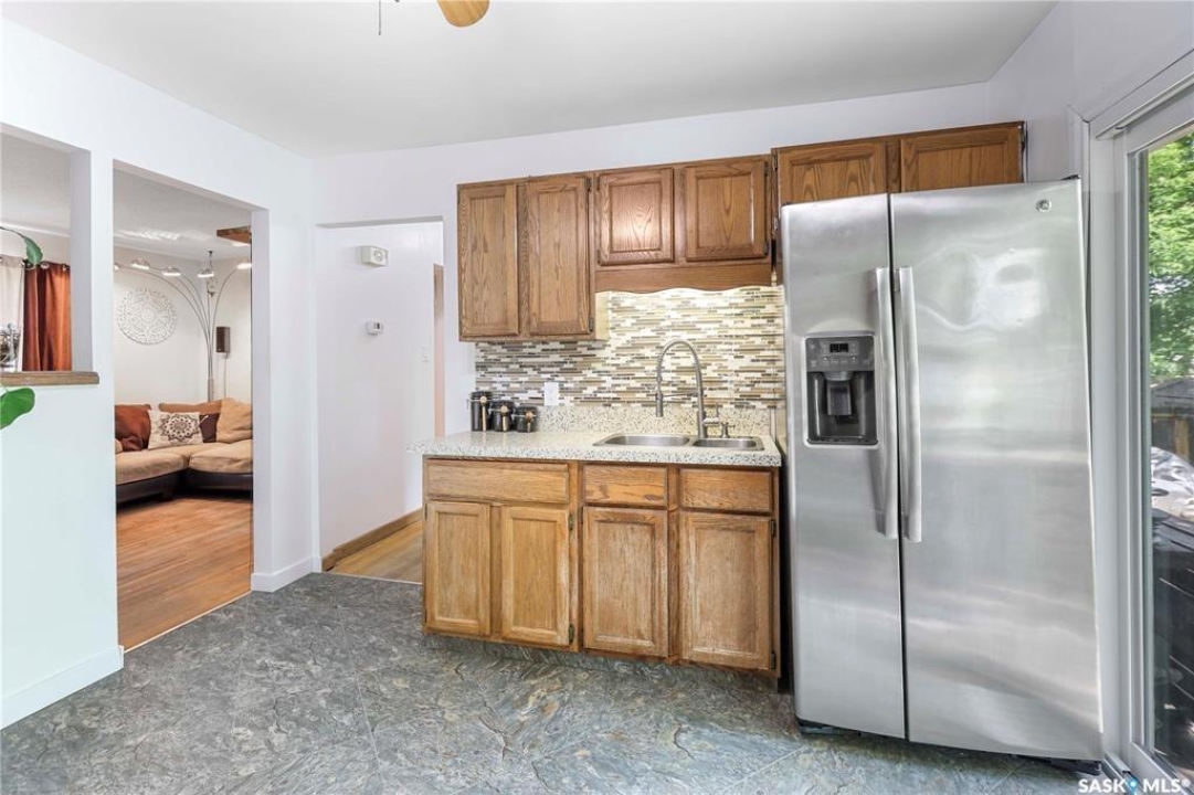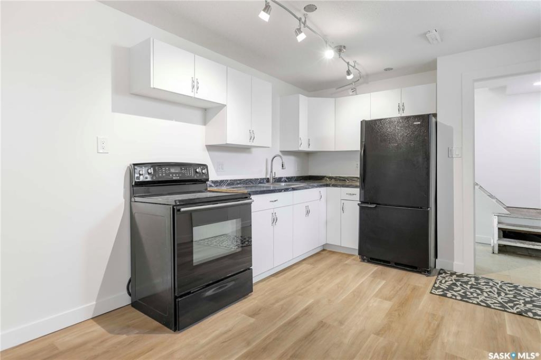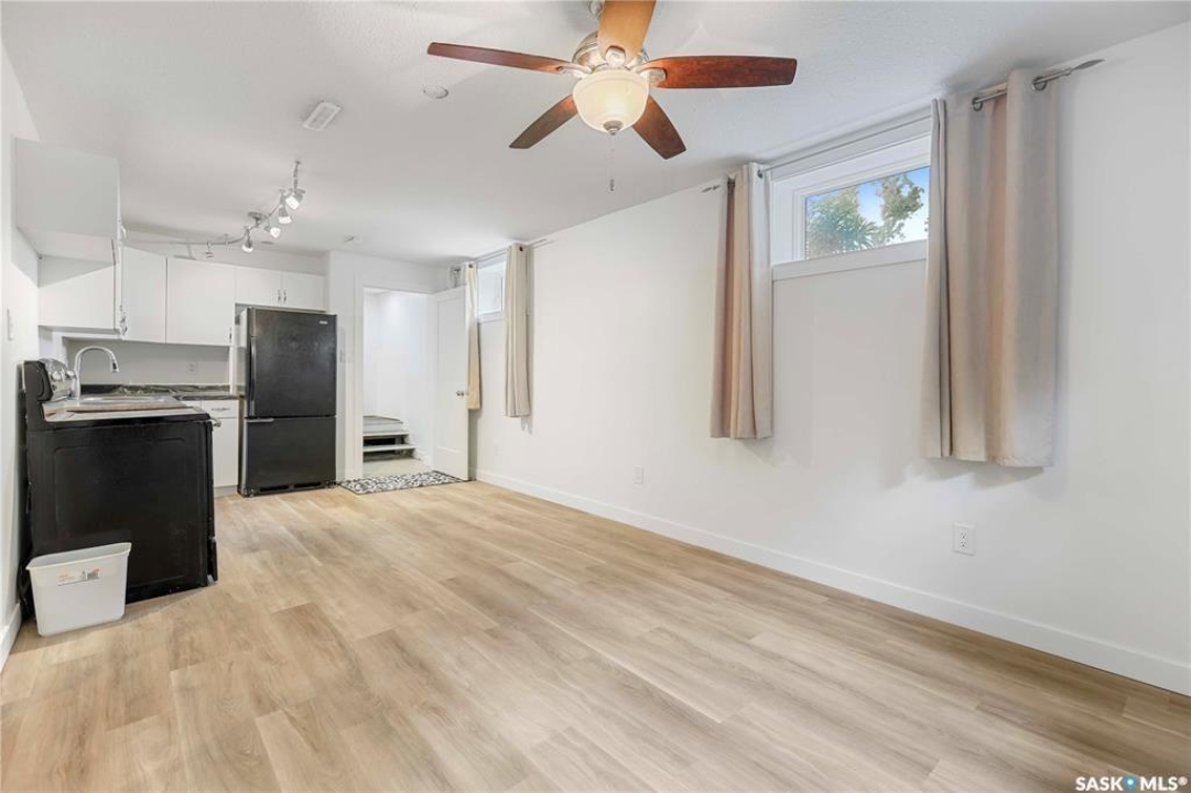 Welcome to 731 Retallack Street in Washington Park, close to restaurants, schools, parks, and shopping. This 1958 bungalow offers 3 bedrooms, 2 bathrooms, 768 sq ft, and a separate basement suite. The front porch leads into a bright west-facing living room with hardwood floors. The dine-in kitchen features plenty of cupboards, room for a table, stainless steel appliances (fridge, stove, microwave), and patio doors to the deck. Down the hall is a 4-piece bathroom with vinyl tile and updated fixtures, plus two good-sized bedrooms with hardwood and ample closets. The fully renovated basement is set up as an optional secondary suite with side entrance. It includes an open kitchen/dining and living area, the home's third bedroom (window egress may not meet current code), vinyl plank flooring, and a 4-piece bathroom. A shared laundry area (washer and dryer included) leads to the utility room with a high-efficiency furnace and 100-amp panel. The home sits on a large rectangular lot with a 16' x 24' insulated oversized single garage with gated lane access. The fenced, well-treed yard offers a large deck and patio, firepit area, lawn, garden space, and a rear sun deck great for entertaining. Additional features include central A/C, high-efficiency furnace, on-demand water heater, and all appliances up and down. Both the house and garage have been recently re-shingled. Some of the furniture may be negotiable. An ideal option for first-time buyers, investors, or anyone seeking a revenue property.