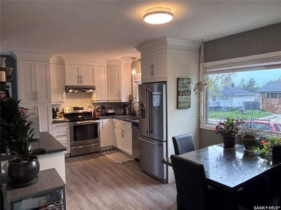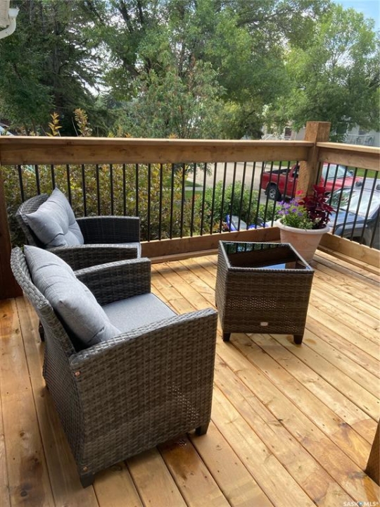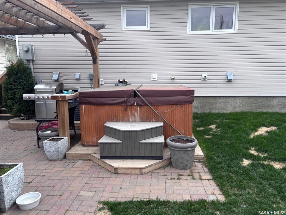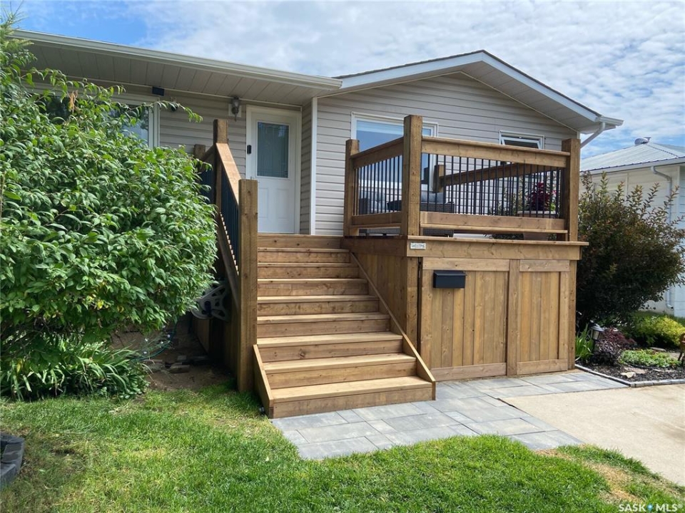 Walk up these 2025 stairs to a brand new deck with storage under it for many of your treasures. This 1980 house was moved onto a 2010 basement with 9' walls and completely upgraded at that time. Newer kitchen cabinets, flooring and stainless steel appliances flow into the dining area and west facing living room. 2 bedrooms, a 4 piece bath and main floor laundry complete the top level. The lower level has large windows letting in lots of natural light into 2 more bedrooms and a large family/rec area. The 3 piece bath, storage and utility room are efficient and centrally located. With both the furnace and the hot water heater being high efficient helps to minimize your energy bills. an air exchanger and Reverse Osmosis water system complete the upgrade. The backyard is a Get Away in the city with large patio, pergola, hot tub area,(hot tub is negotiable) grassy area for the kids or dogs and 2 storage sheds. Don't Forget to check out the 24' x 24' heated garage to keep the automobiles warm and tools hot and ready for action. Book a showing with your favorite agent and get a good look at this gem of a house/Home.
