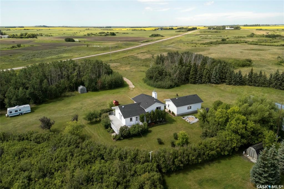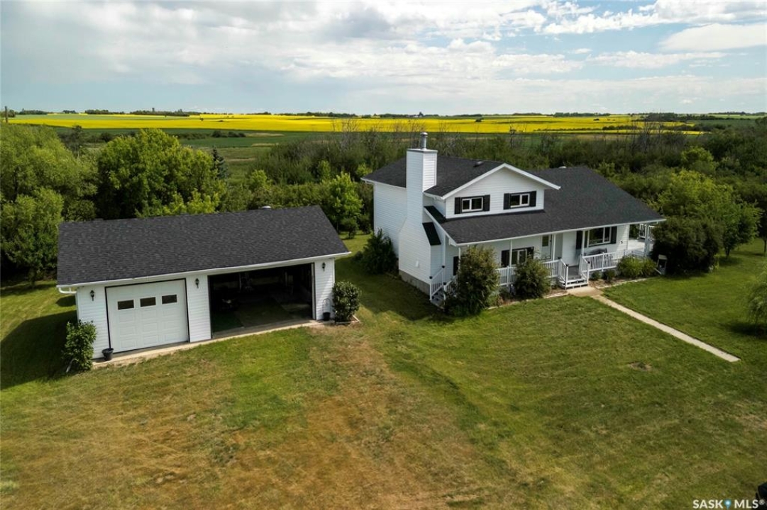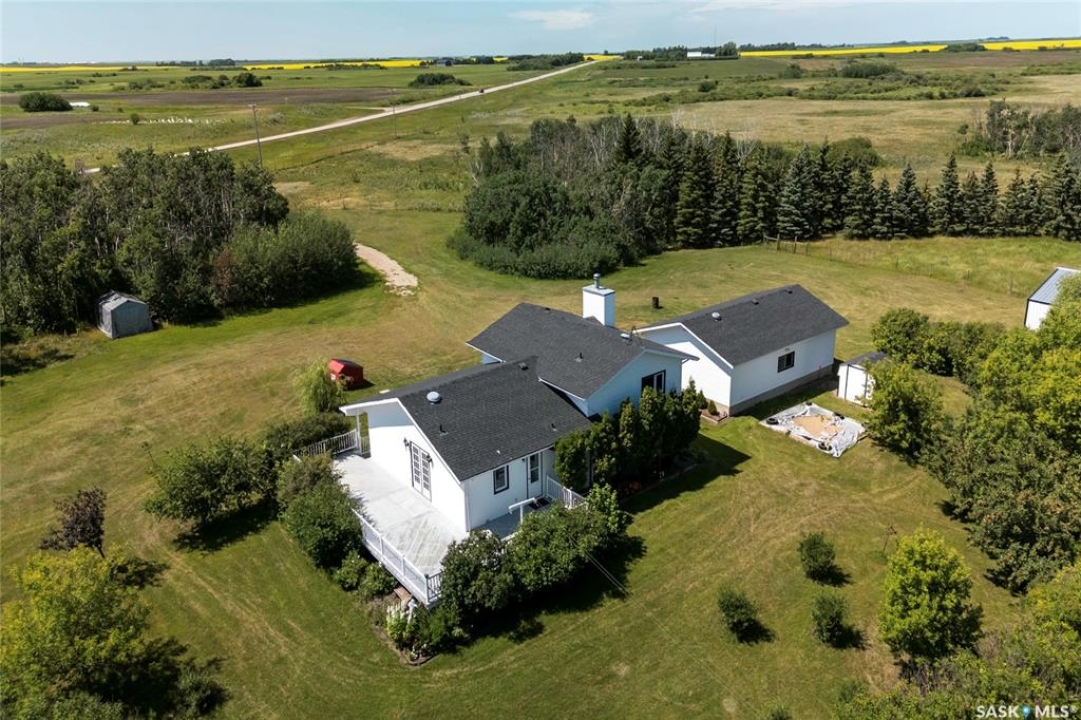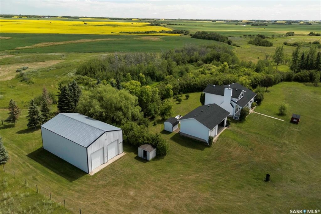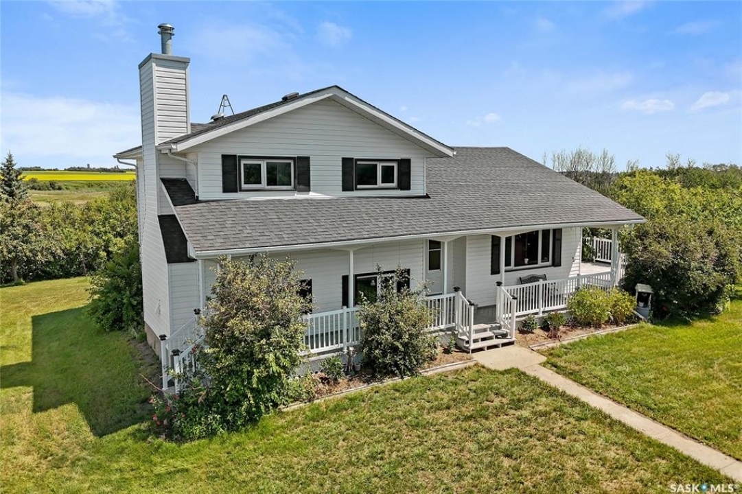 Seller says sell! Try an offer! Quick possession! Freedom from commotion and the bustle of the city with nothing but open skies and peaceful living. Located approximately 40 kms from Regina sits 80 acres (40 cultivated acres) of green gently rolling hills and tranquil surroundings. Winding around the row of trees the house comes into view and you will immediately feel like you're in a different world. Pride of ownership shines through in every corner of the house and land. Imagine Saskatchewan sunsets or getting lost in a book from your wraparound deck. Behind the house are fruit trees and even some almond trees with a fire pit off to the side. The yard site has a 36' x 24' garage, 29' x 49' shop (10' doors) and a little further in behind is a 25' x 48' barn with 2 stalls. Fenced corals and pastures are ready for new animals. 40 acres of cultivated land. 2 sloughs. The house is so loved and very well maintained. Built with 2x6 construction. Living room at the front of the house with the eat-in kitchen, dining room and main floor laundry at the back. Located at the back door is a powder room which is perfect for coming in from the garden and cleaning up without bringing the mess through the house. Upper level has 3 good sized bedrooms, 4-piece bathroom with the primary bedroom having a 3-piece en-suite. 3rd level has a huge family room with a wood burning fireplace, 4th bedroom and a 2-piece bathroom. Lower level is open for development which could be a children's play area or family games room. Meticulously maintained and cared for over the years. Easy access from the highway but surrounded by trees makes you feel like you're all alone. Well on property with water treatment system included. Lagoon. School bus to Vibank approx 13kms. K-12. Directions: Highway 48 about 20 minutes south of White City. Just East of Davin on opposite side of highway. Farm is across the road from large cross on hill.