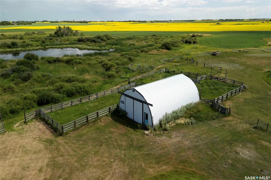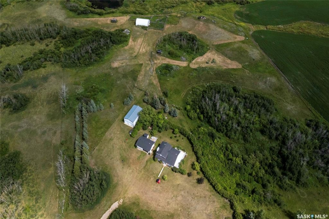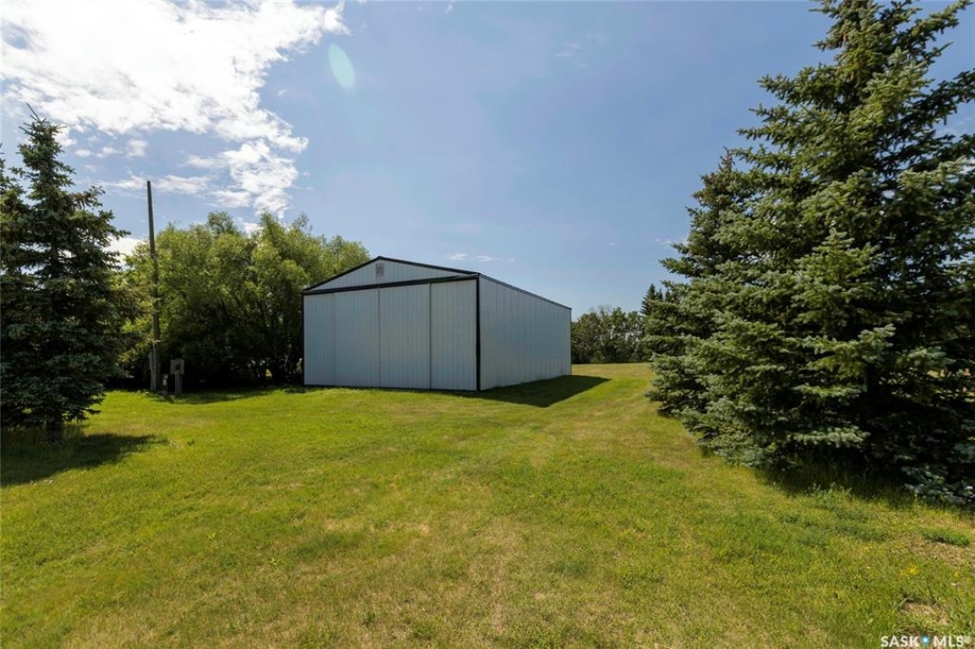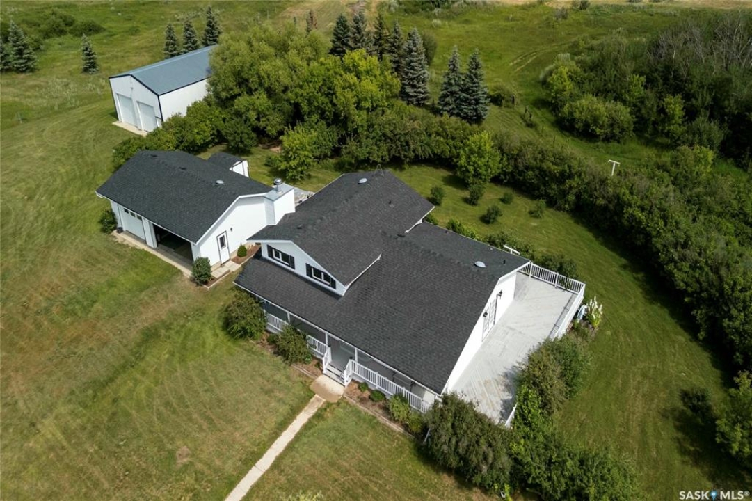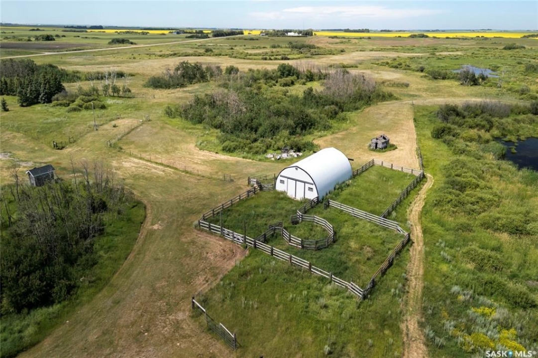Seller says sell! Try an offer! Quick possession! Freedom from commotion and the bustle of the city with nothing but open skies and peaceful living. Located approximately 40 kms from Regina sits 80 acres (40 cultivated acres) of green gently rolling hills and tranquil surroundings. Winding around the row of trees the house comes into view and you will immediately feel like you're in a different world. Pride of ownership shines through in every corner of the house and land. Imagine Saskatchewan sunsets or getting lost in a book from your wraparound deck. Behind the house are fruit trees and even some almond trees with a fire pit off to the side. The yard site has a 36' x 24' garage, 29' x 49' shop (10' doors) and a little further in behind is a 25' x 48' barn with 2 stalls. Fenced corals and pastures are ready for new animals. 40 acres of cultivated land. 2 sloughs. The house is so loved and very well maintained. Built with 2x6 construction. Living room at the front of the house with the eat-in kitchen, dining room and main floor laundry at the back. Located at the back door is a powder room which is perfect for coming in from the garden and cleaning up without bringing the mess through the house. Upper level has 3 good sized bedrooms, 4-piece bathroom with the primary bedroom having a 3-piece en-suite. 3rd level has a huge family room with a wood burning fireplace, 4th bedroom and a 2-piece bathroom. Lower level is open for development which could be a children's play area or family games room. Meticulously maintained and cared for over the years. Easy access from the highway but surrounded by trees makes you feel like you're all alone. Well on property with water treatment system included. Lagoon. School bus to Vibank approx 13kms. K-12. Directions: Highway 48 about 20 minutes south of White City. Just East of Davin on opposite side of highway. Farm is across the road from large cross on hill.